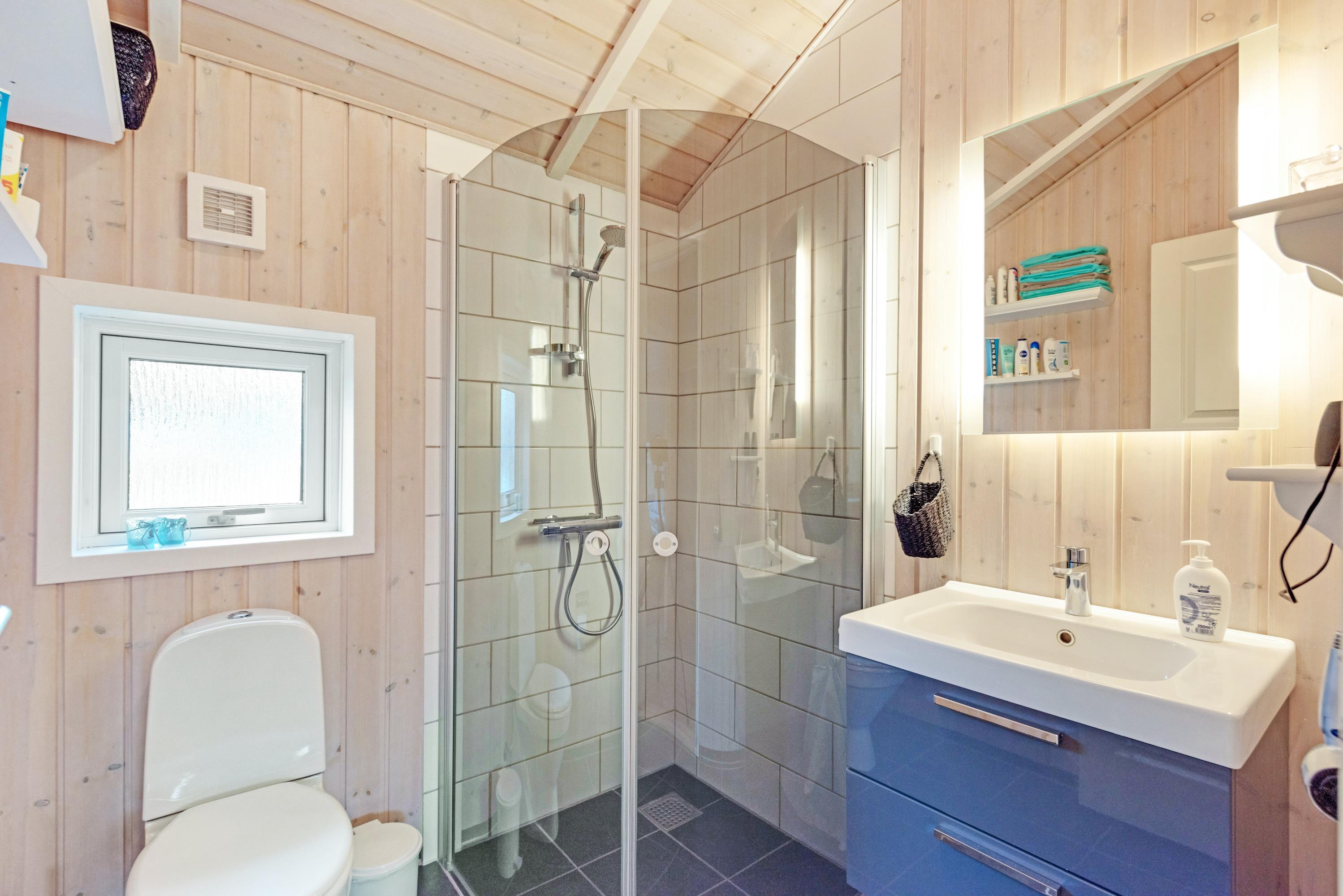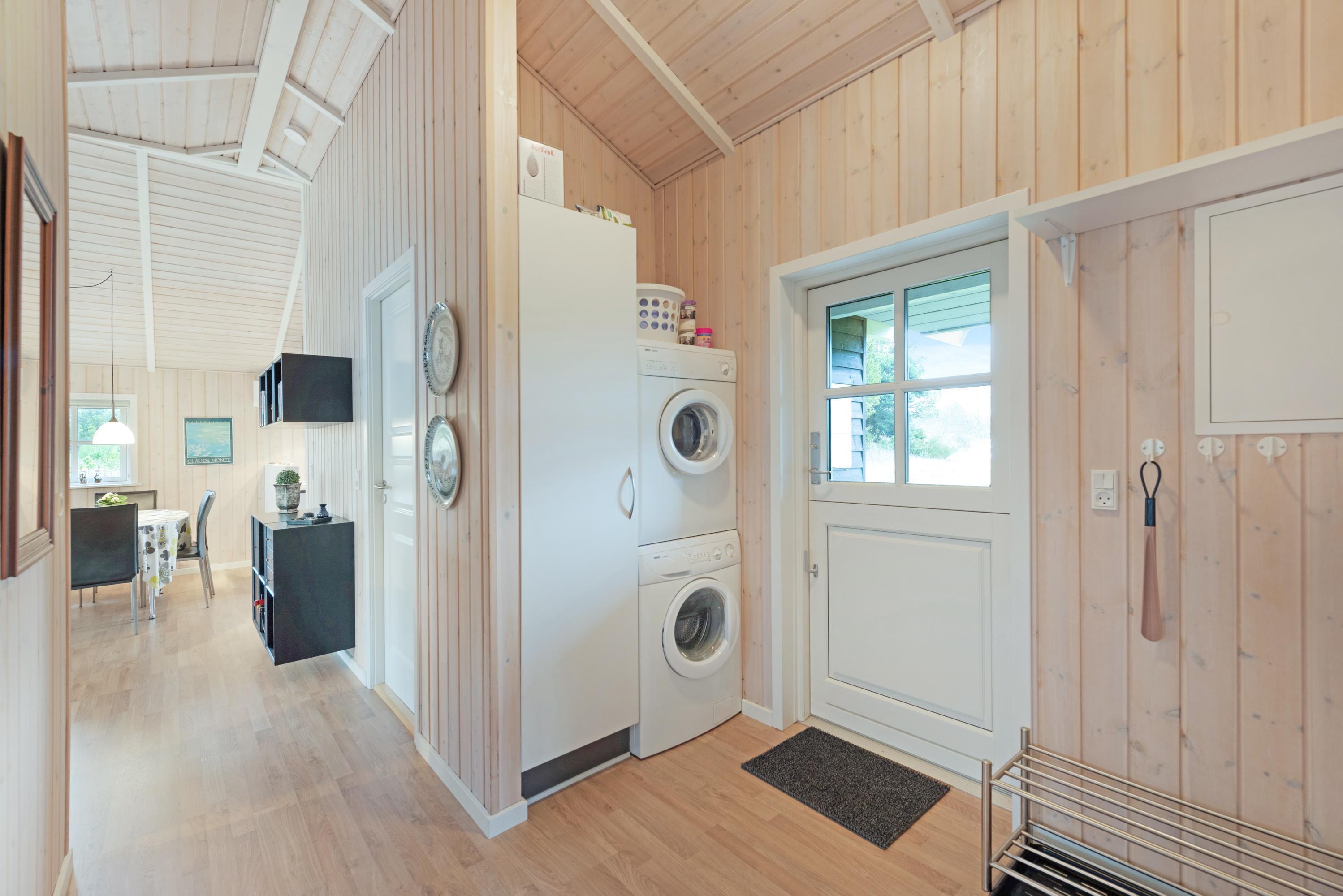 Sommerhuset er udstyret med et badeværelse med gulvvarme, og i køkkenet er der opvaskemaskine, så I slipper for den værste oprydning efter maden. I entréen finder I også den praktiske vaskesøjle.