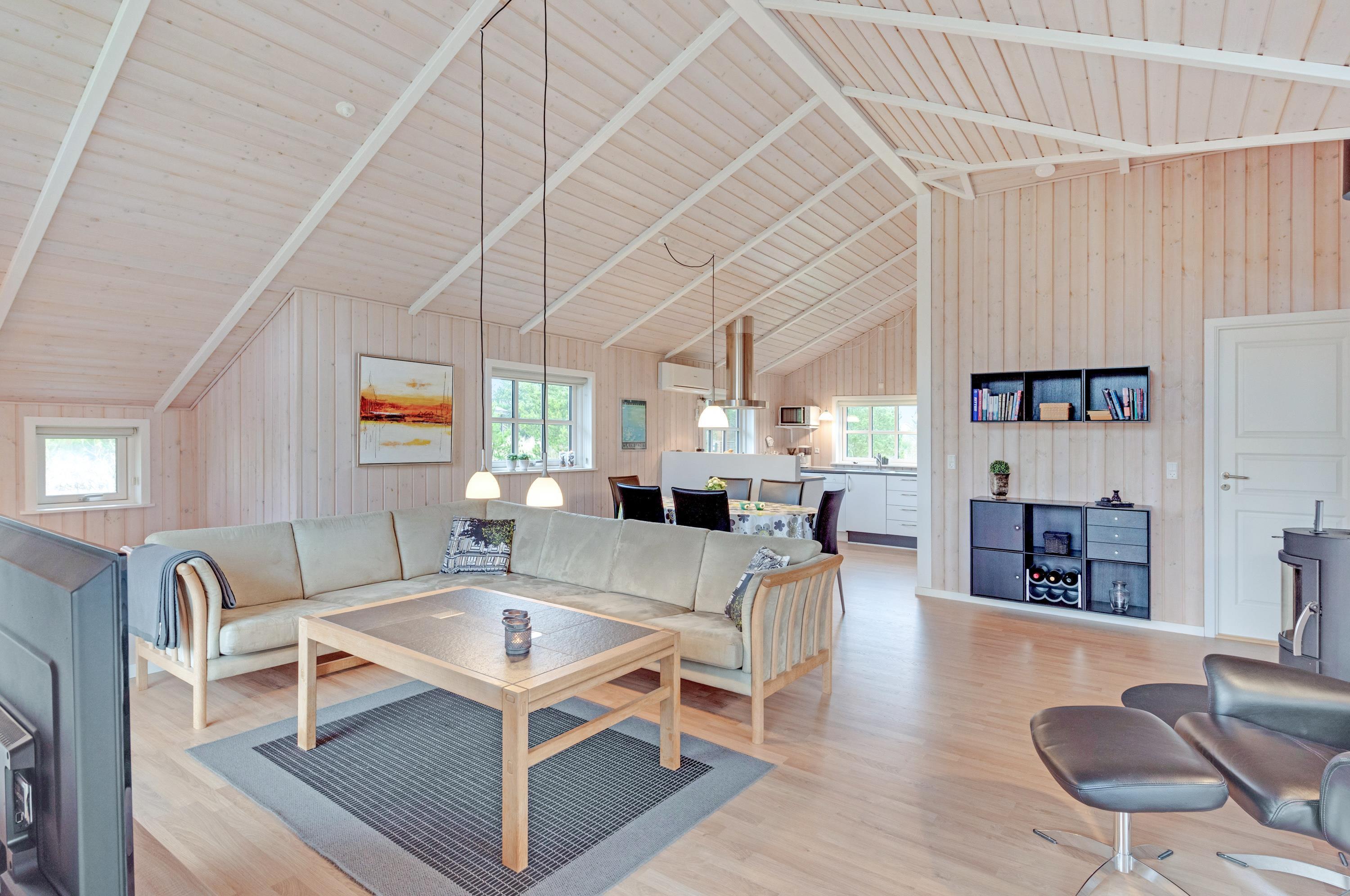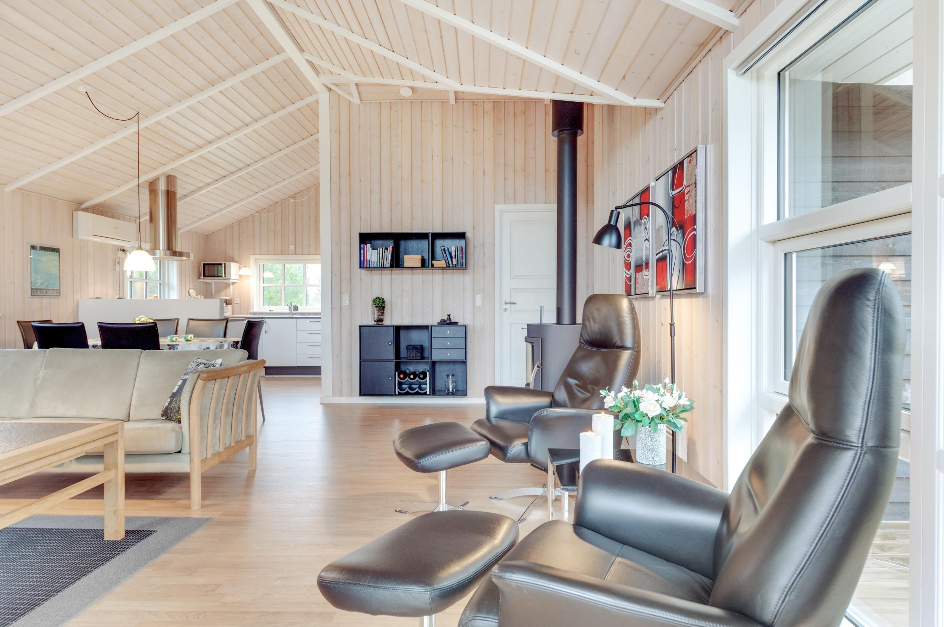 Opholdsrummet fungerer som sommerhusets hjerte og bliver med garanti samlingspunktet på ferien. Her kan I samles om alt fra madlavning til sofahygge med brændeovnens knitrende flammer som en nærmest meditativ baggrundsmusik. 2 super-bekvemme lænestole indbyder til at lægge fødderne op og slappe af og den lille alkove er velegnet til middagslure eller en stille stund med en god bog.