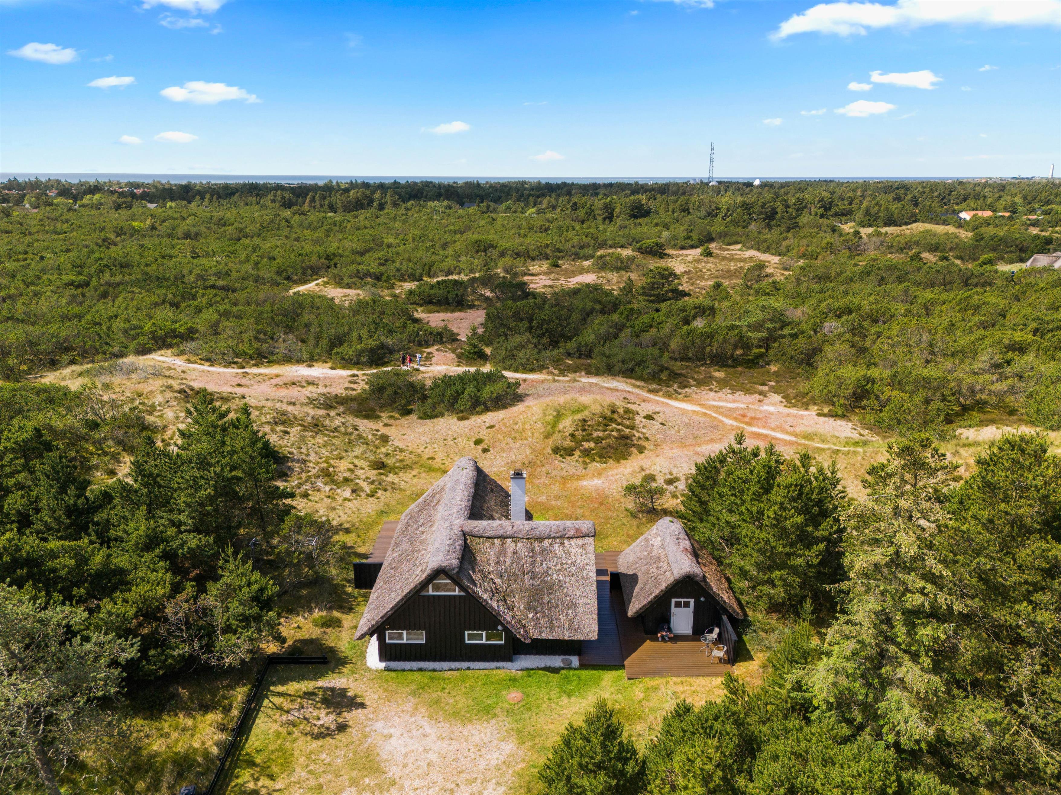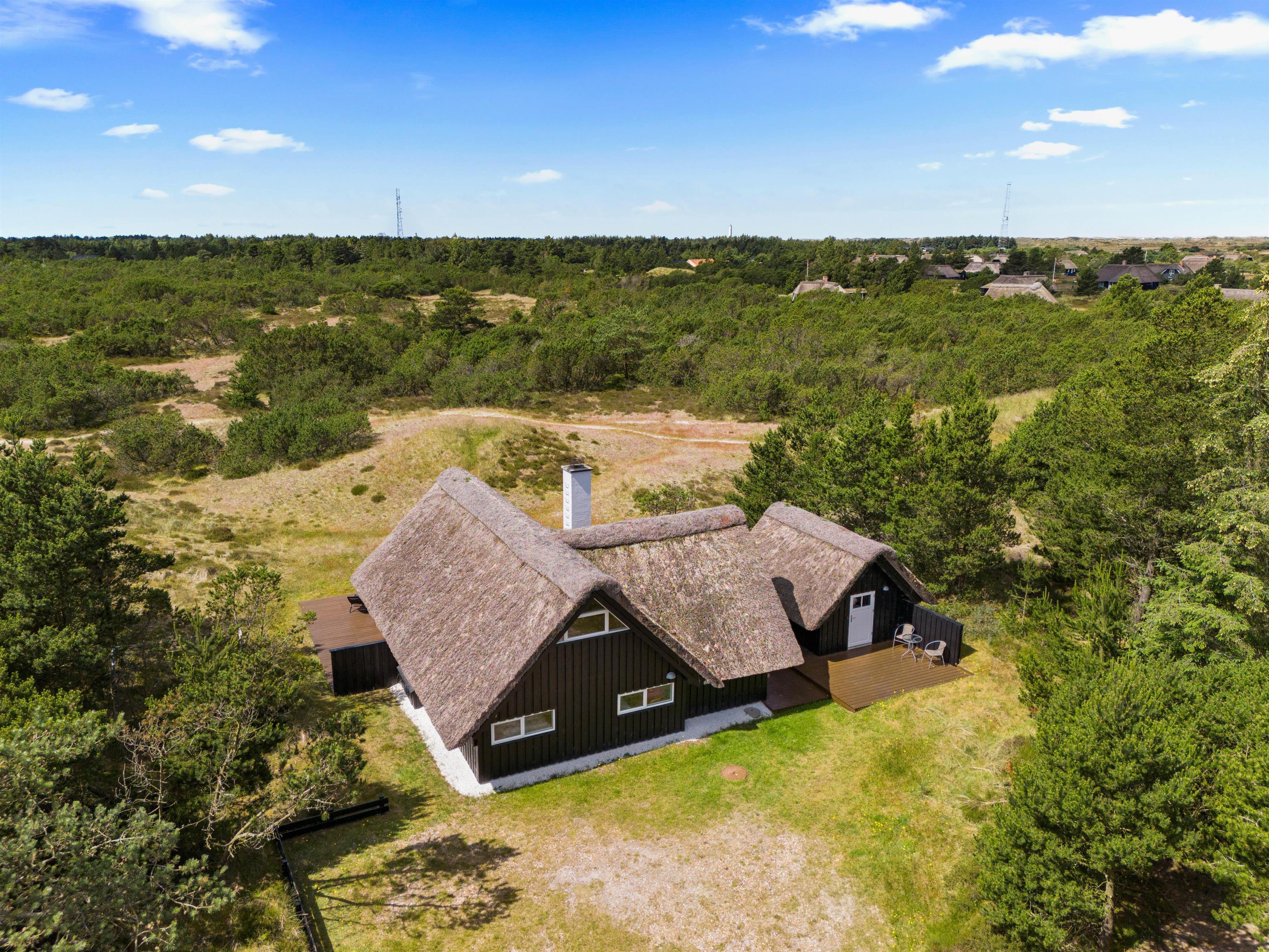 På en flot naturgrund i smukke omgivelser, kun 500 meter fra Blåvand centrum, venter jer på Bjergbovej 27 et hyggeligt stråtækt feriehus. Feriehuset er lyst og rummeligt indrettet med åbent køkkenalrum og plads til 5 personer – også jeres hund er velkommen her!