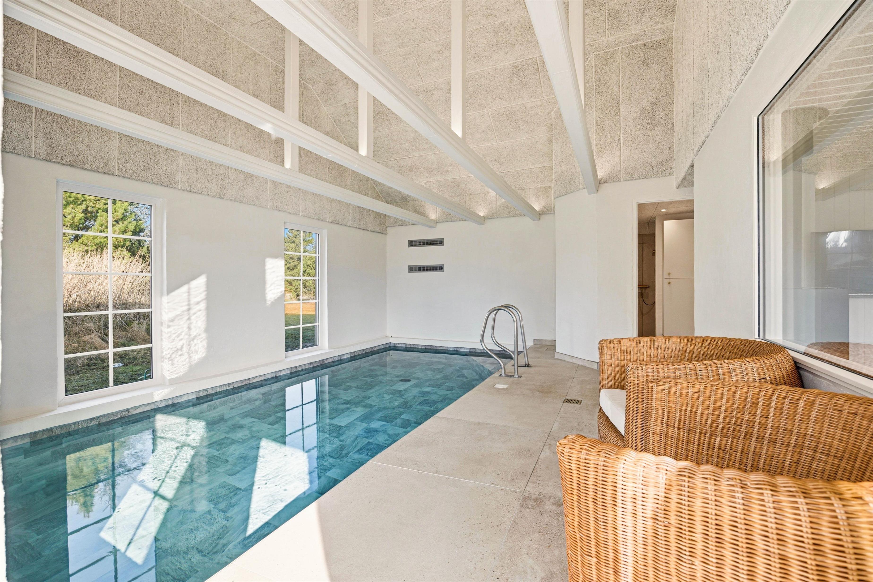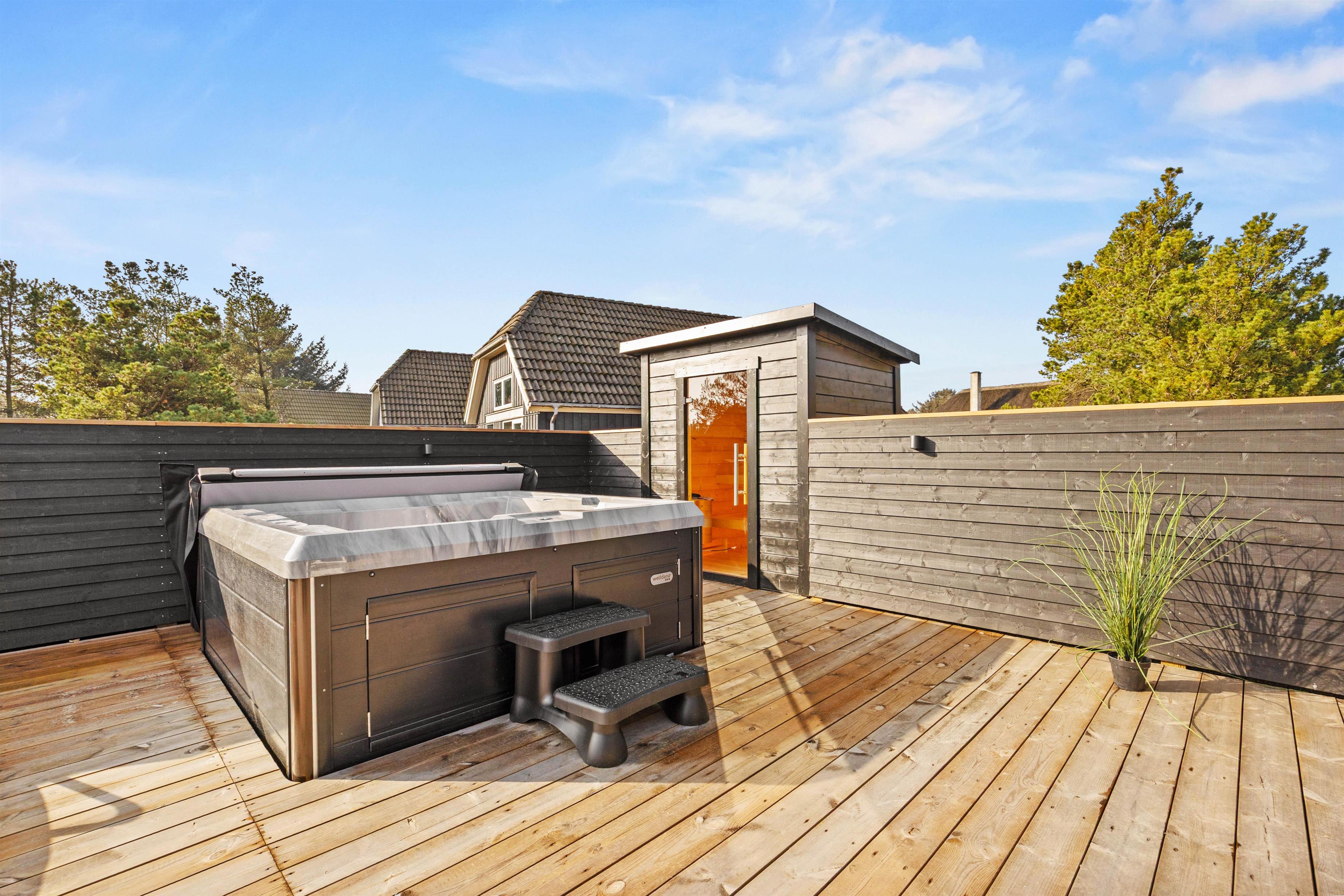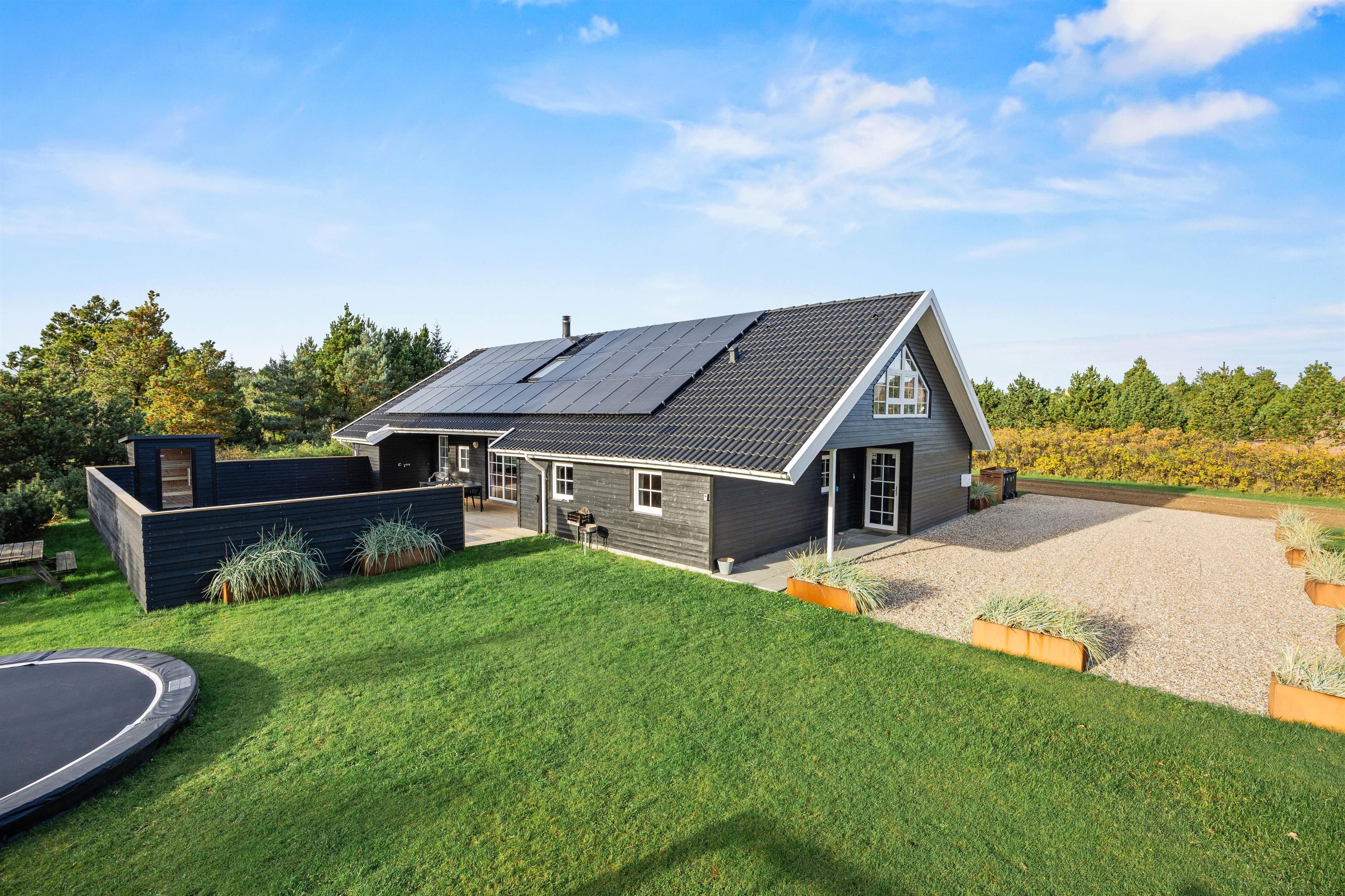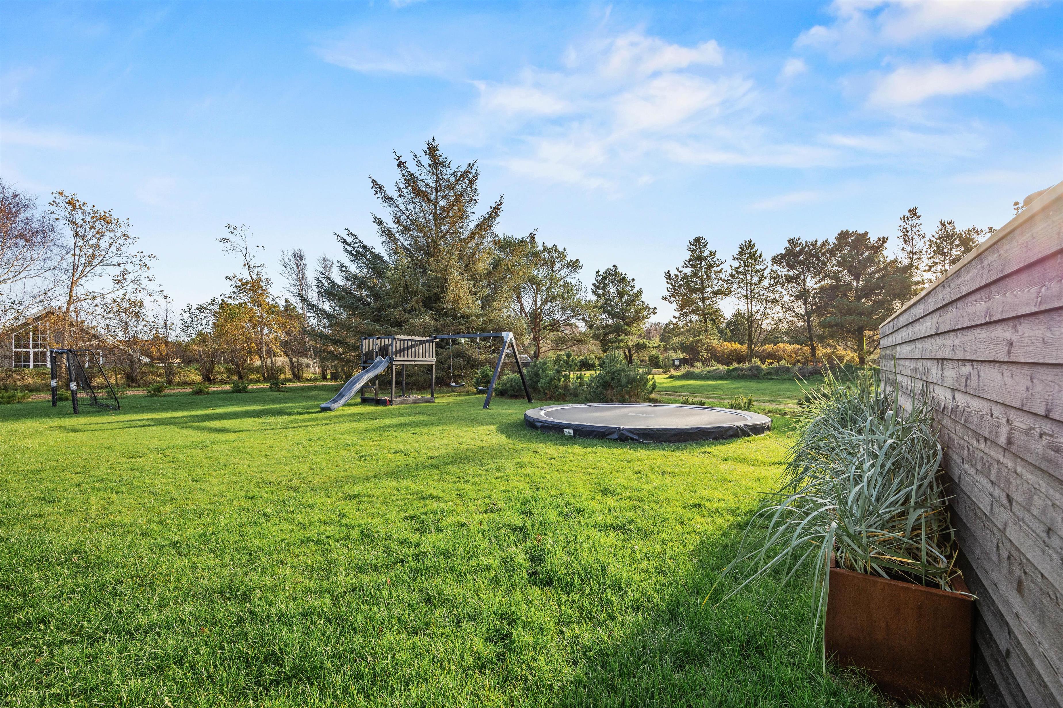 Husets highlight er den 19 kvadratmeter store swimmingpool, der lover både sjov og afslapning. Dertil er der også en udendørs jacuzzi og en sauna, som giver mulighed for ren velvære, og børnene vil elske trampolinen, gyngen og sandkassen i haven og finde timevis af underholdning her. De forskellige terrasser – herunder en overdækket og en lukket – giver jer mulighed for at nyde hyggelige grillmiddage med de tilgængelige havemøbler.