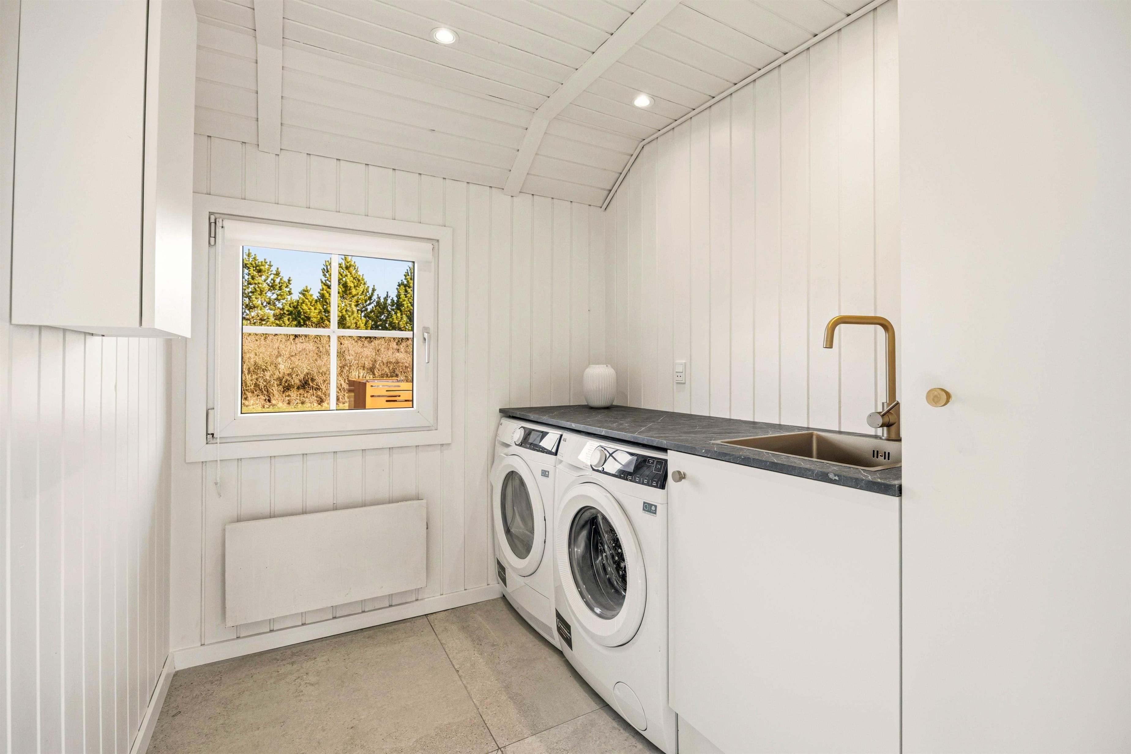 I vil ikke mangle noget under jeres ophold her. Huset rummer et veludstyret køkken med opvaskemaskine og alle nødvendige redskaber. En varmepumpe sørger for energieffektiv opvarmning, mens vaskemaskine og tørretumbler tilbyder ekstra bekvemmelighed. Selv jeres firbenede venner er velkomne, da op til 2 hunde kan deltage i jeres ferie.