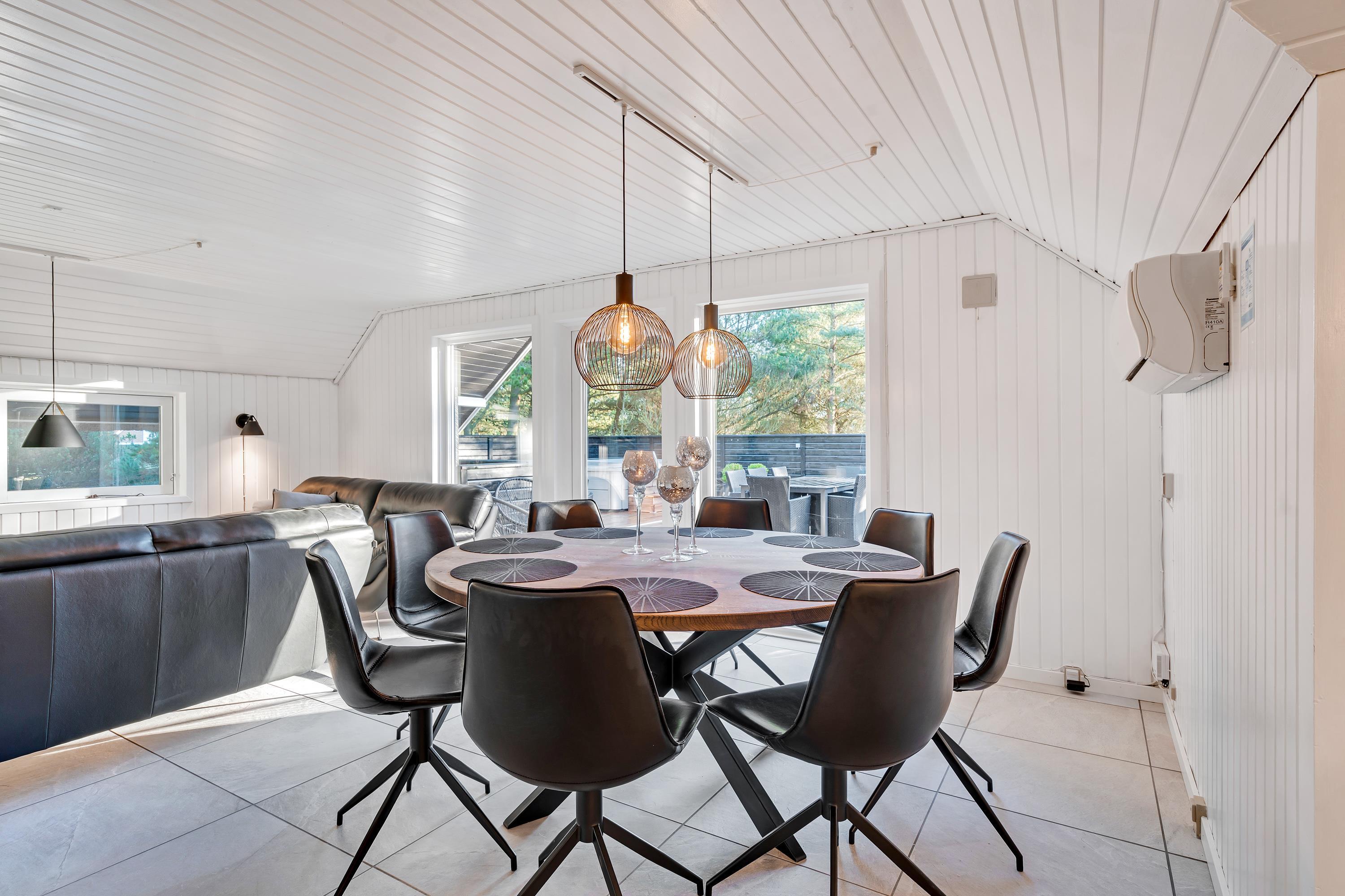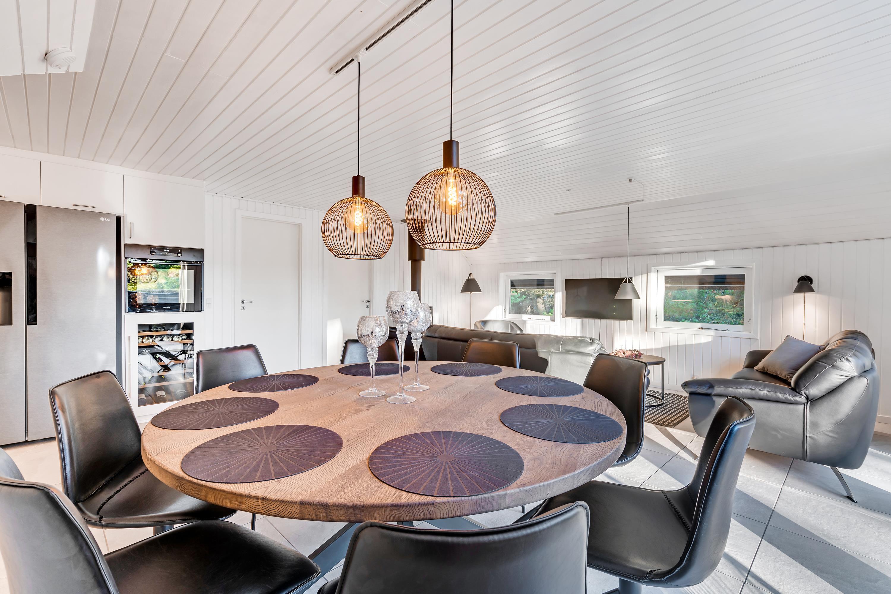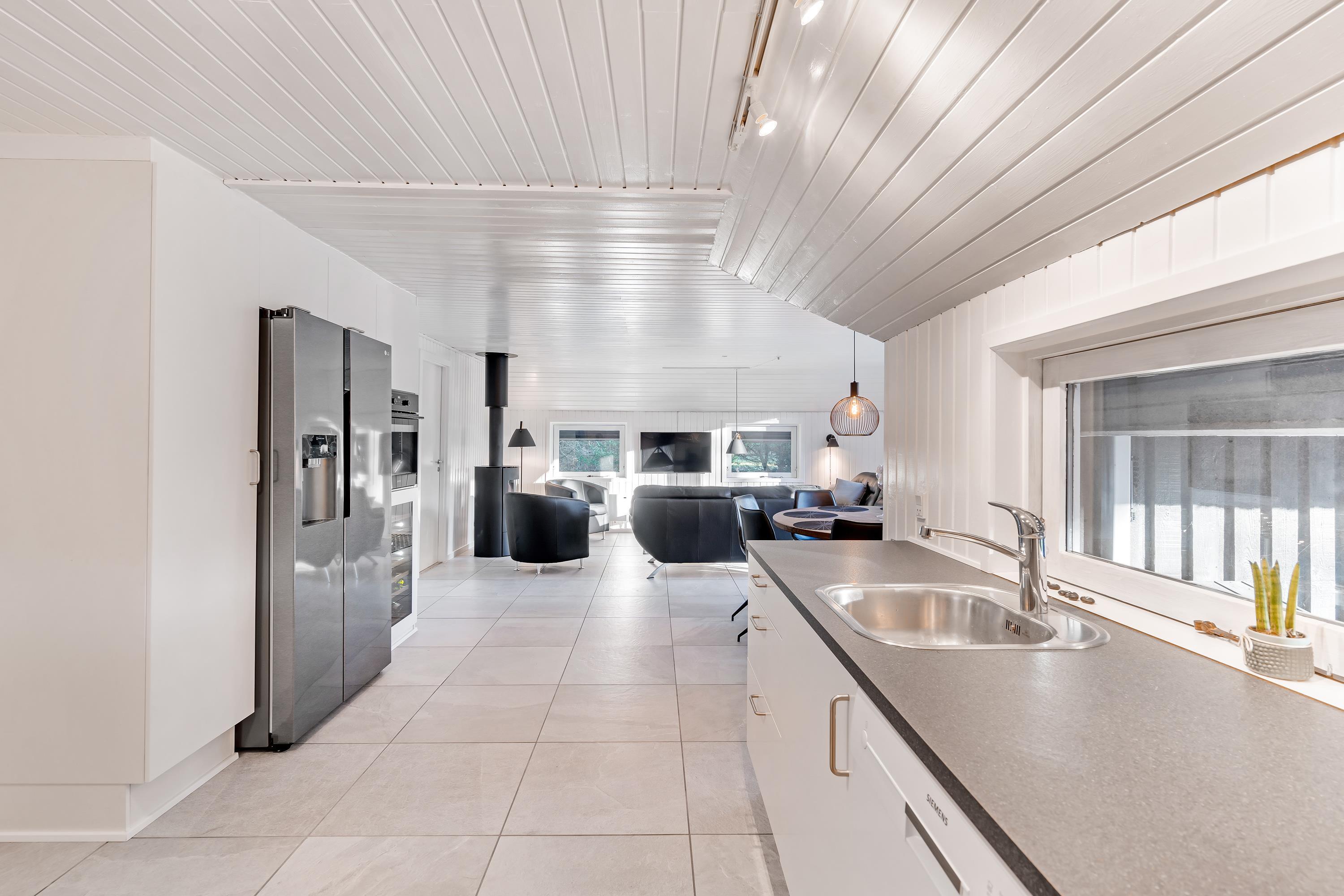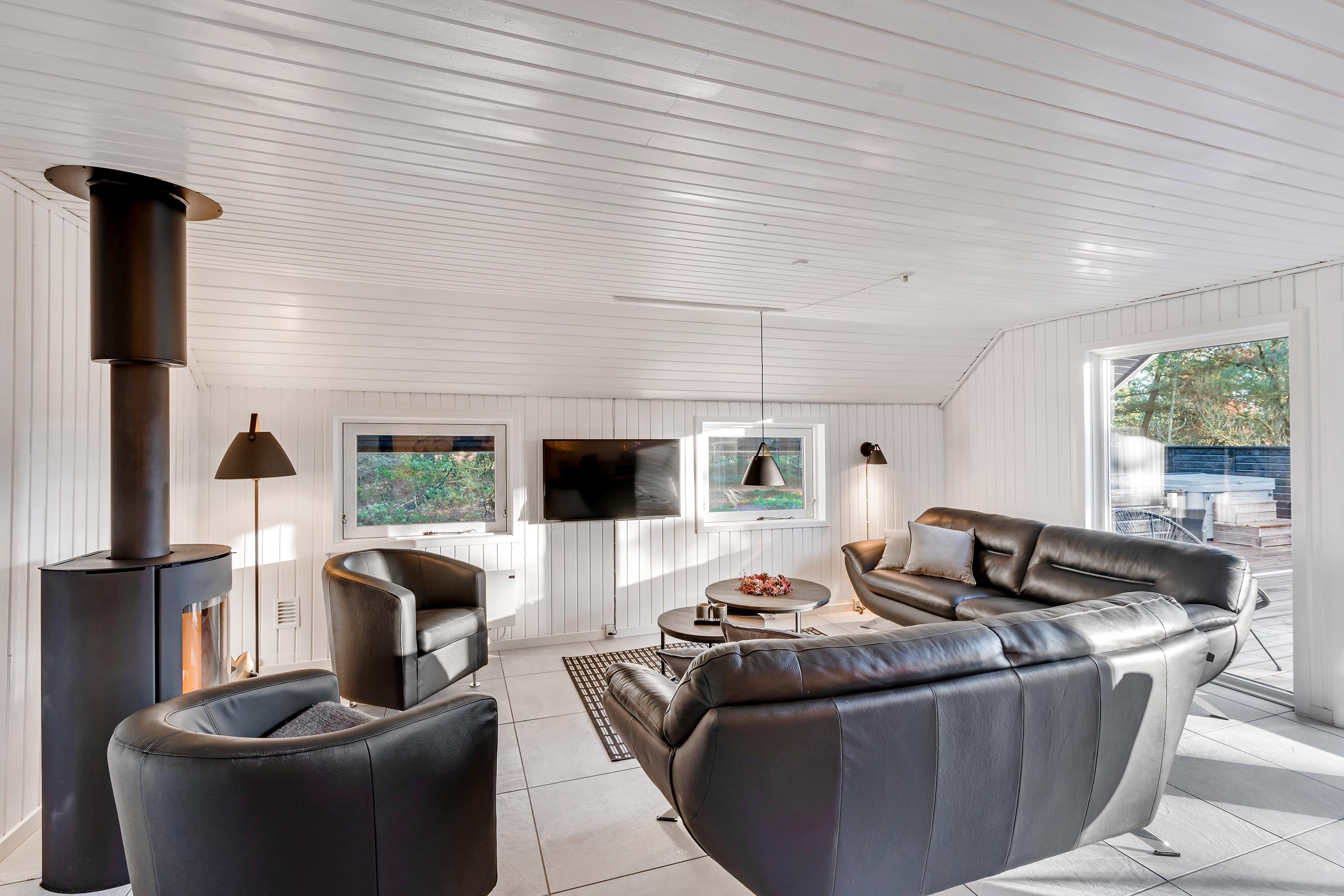 Også i sommerhusets opholdsrum kan I nyde mange sjove og hyggelige feriestunder sammen. I kan samle jer i sofaerne til en god film, når der skal lidt ro på, mens brændeovnen knitrer i baggrunden.