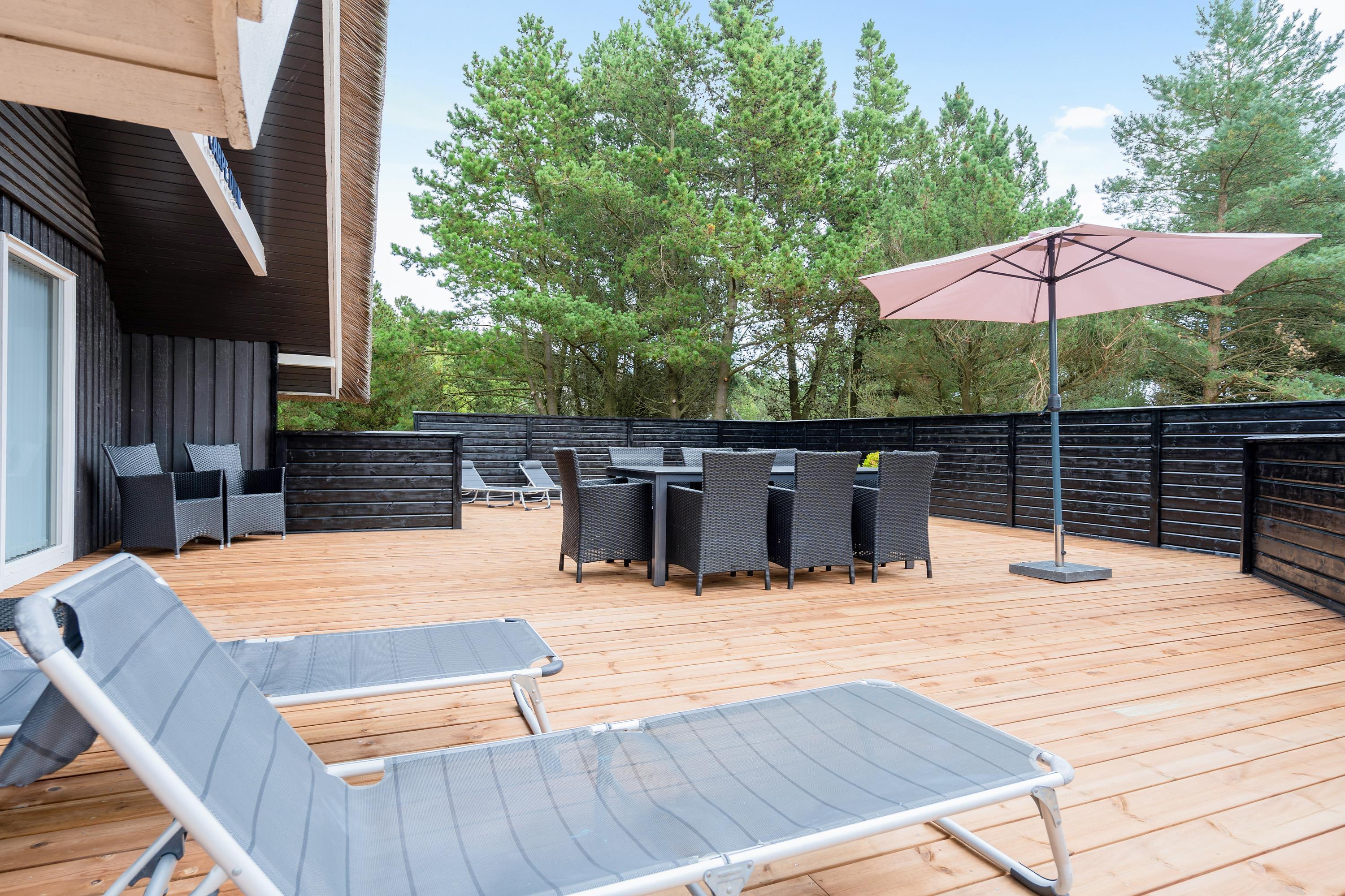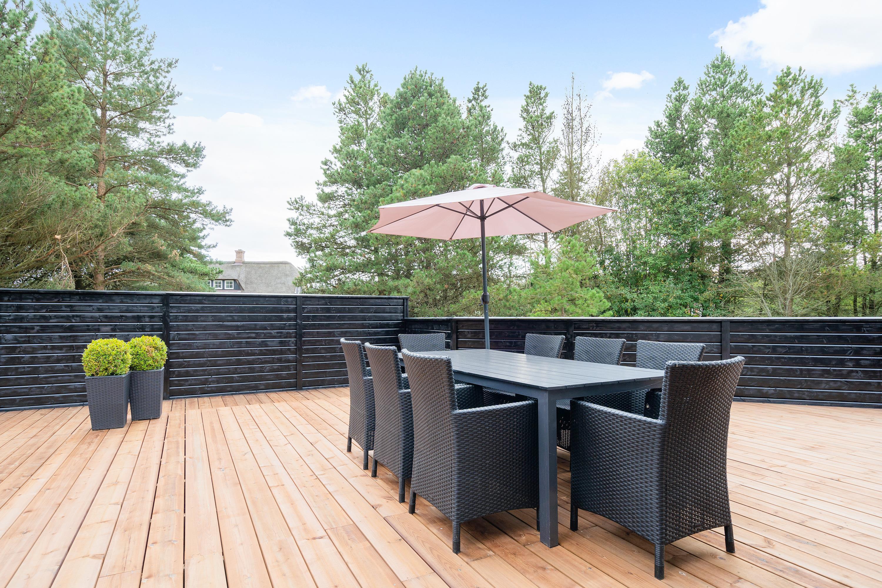 Stor afskærmet terrasse med udendørs spabad