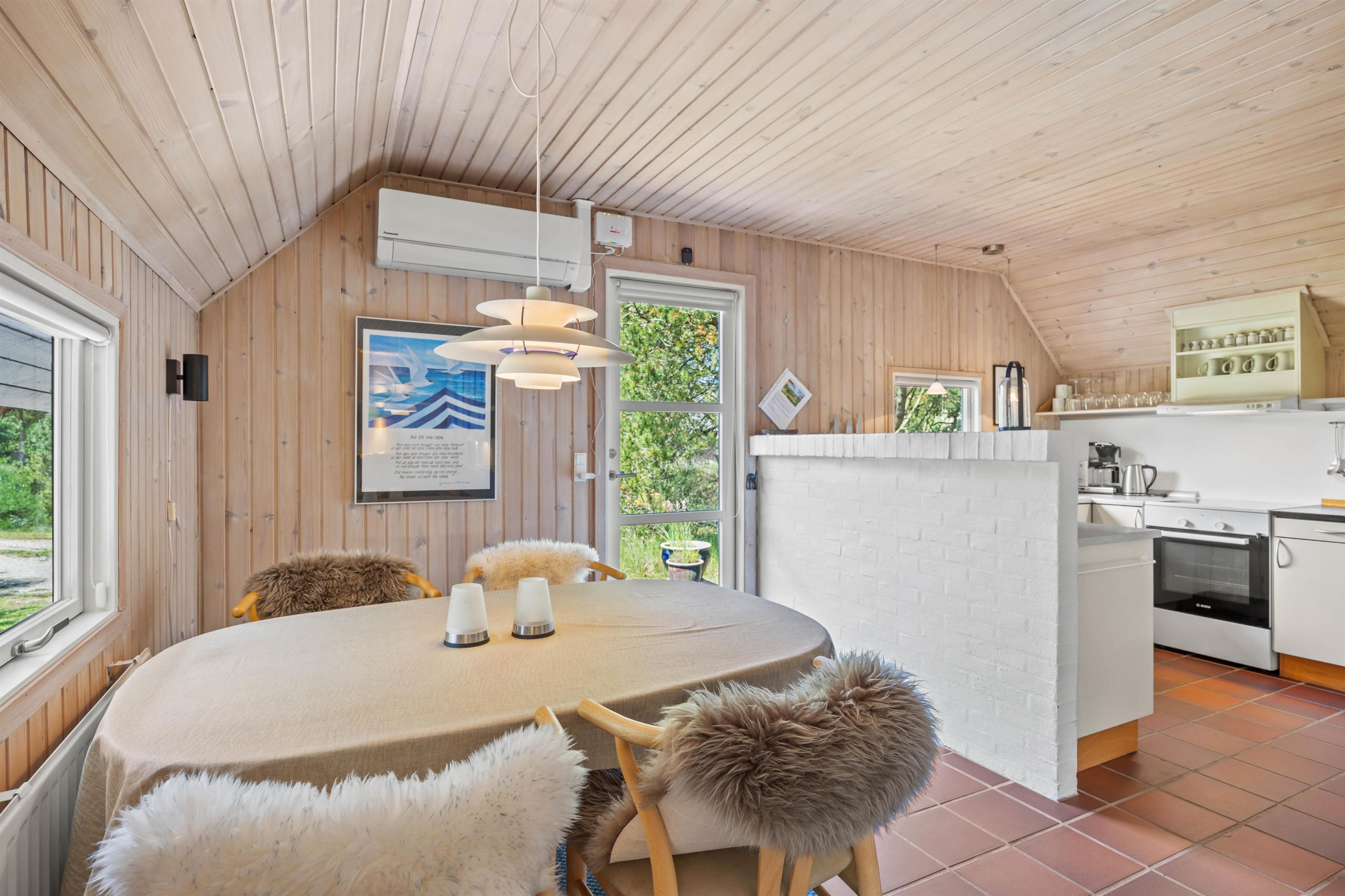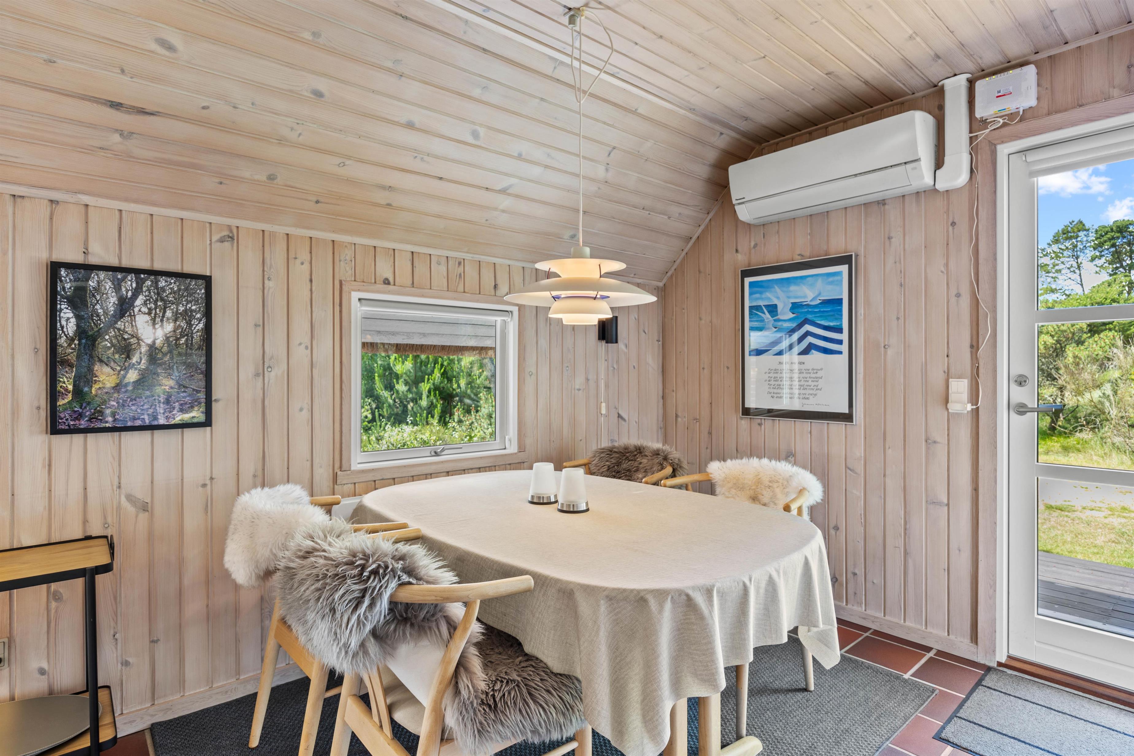 Det hele bliver opvarmet af en energibesparende luft-til-luft varmepumpe.