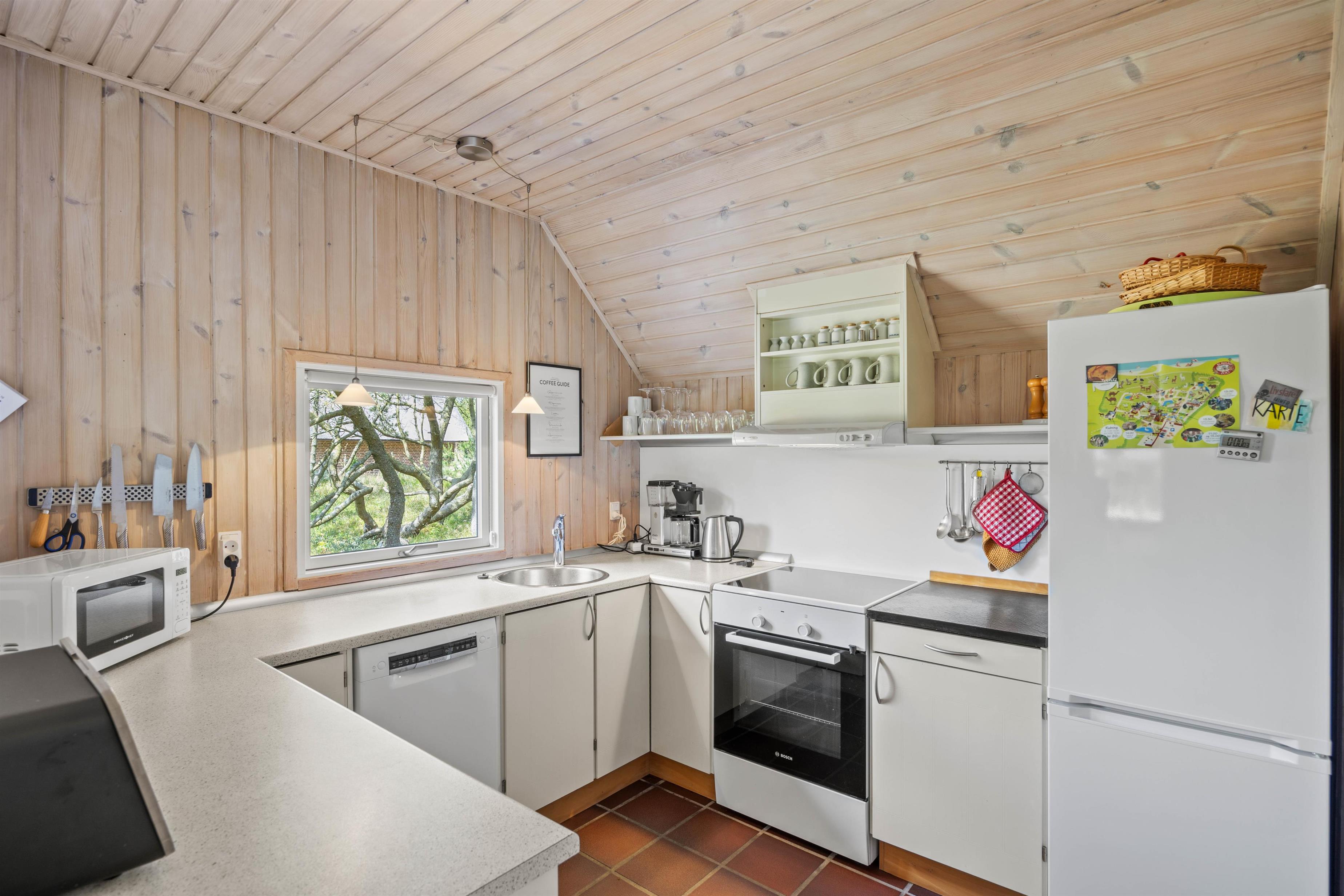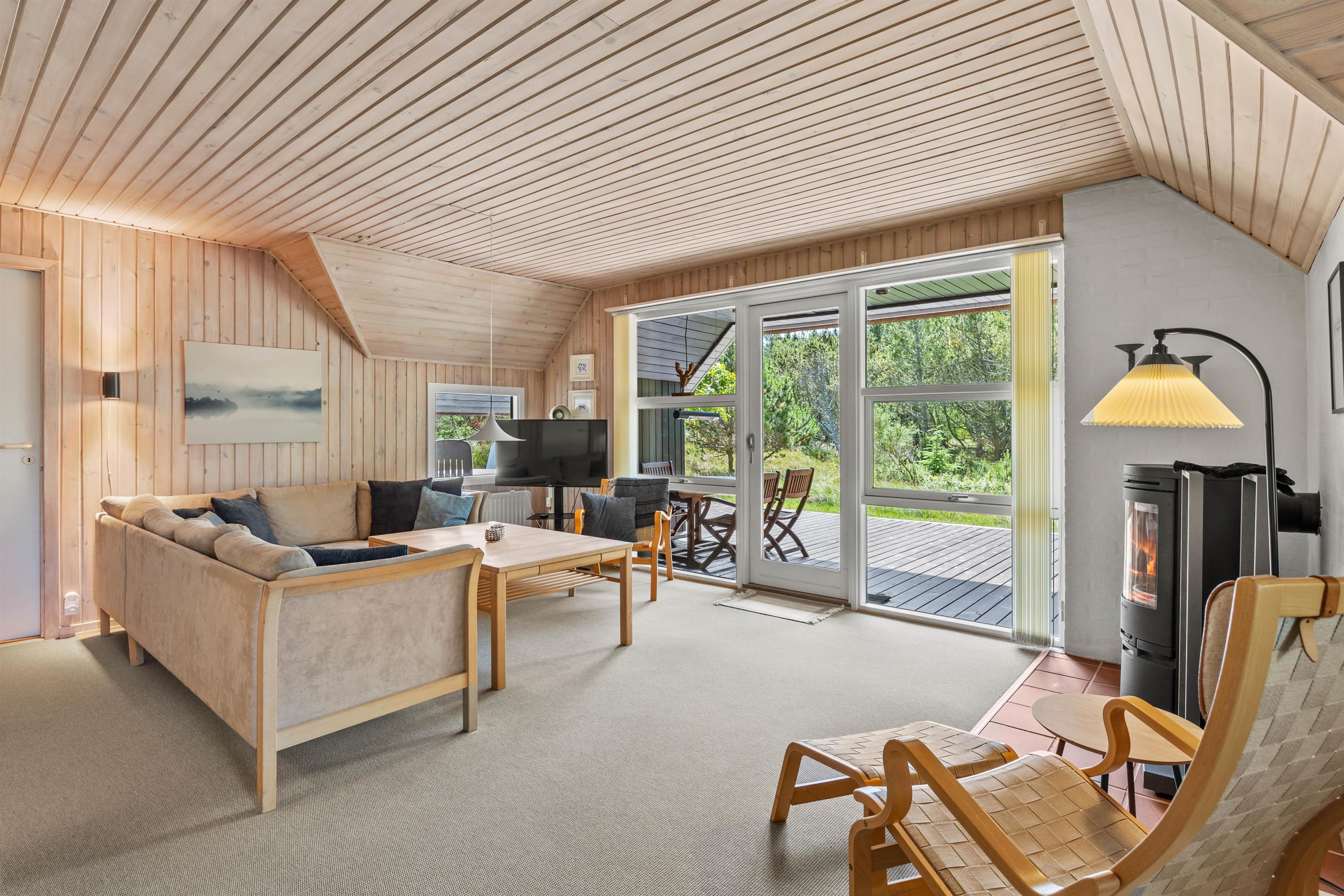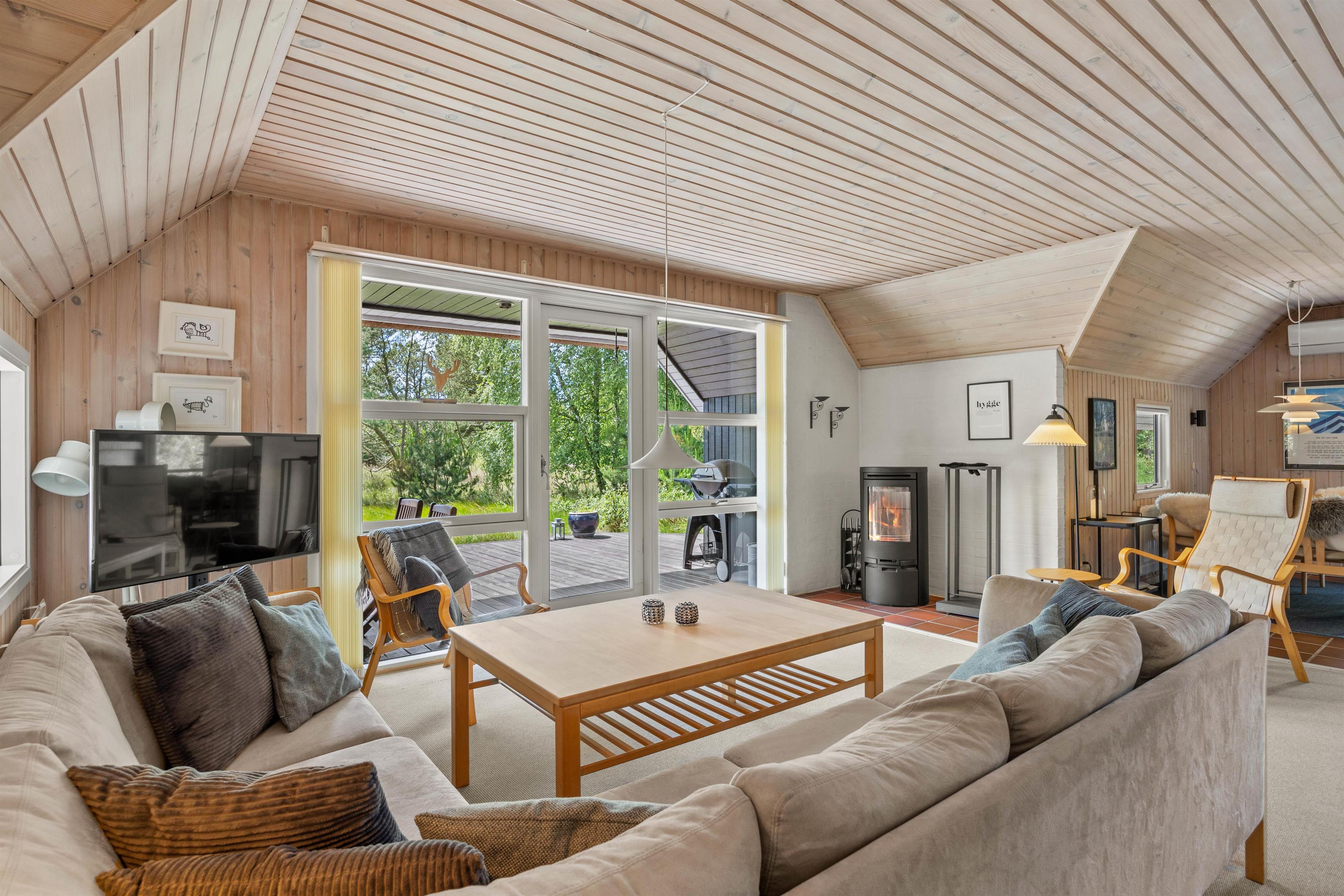 Det store åbne køkken med opvaskemaskine og stuen med brændeovn er perfekte til familiehygge enten ved spisebordet eller i den store bekvemme hjørnesofa, hvor der er plads til hele flokken.