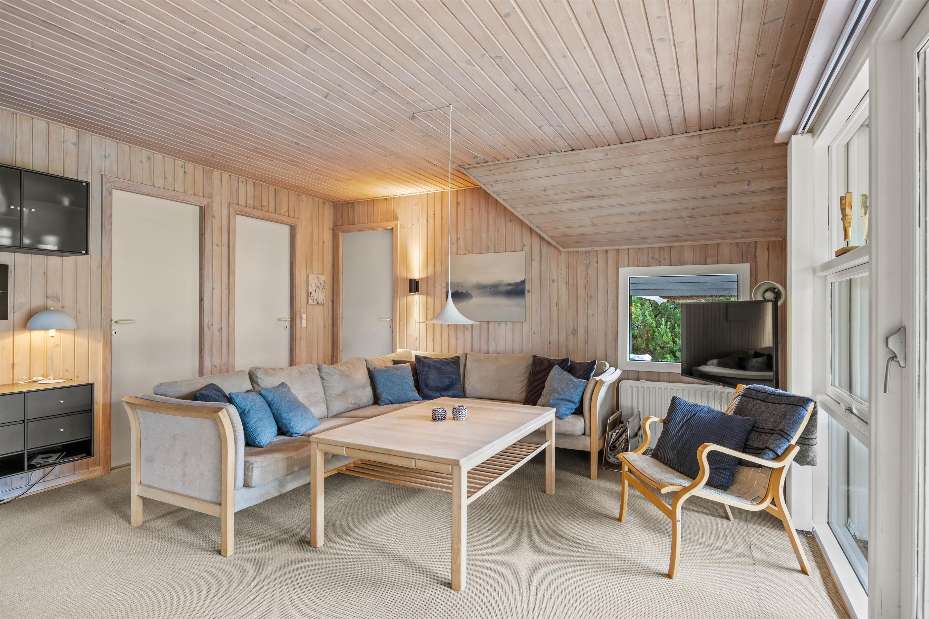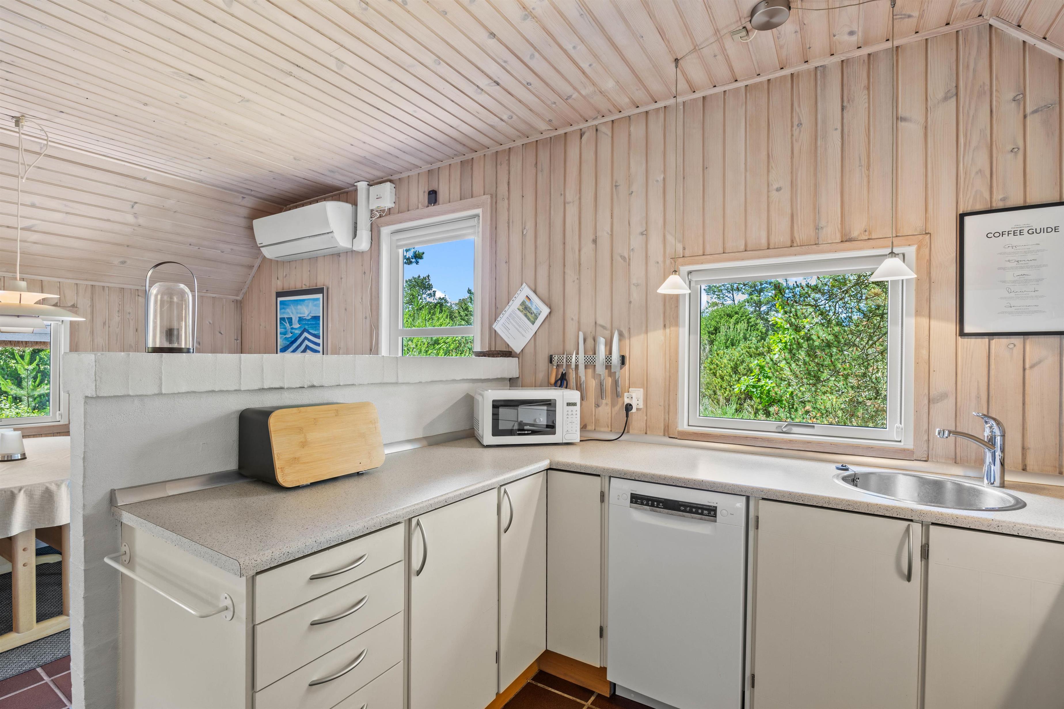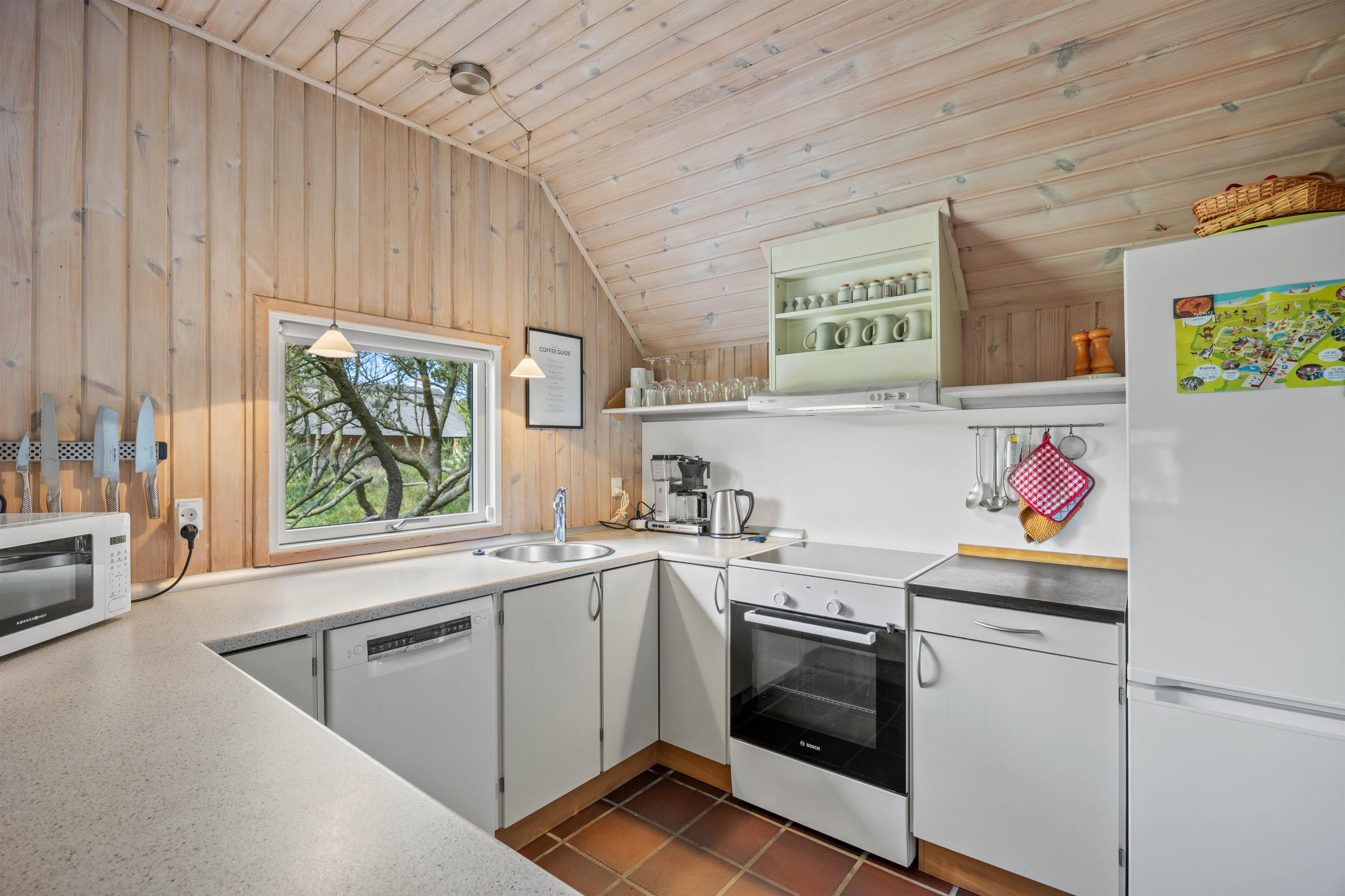 Det store åbne køkken med opvaskemaskine og stuen med brændeovn er perfekte til familiehygge enten ved spisebordet eller i den store bekvemme hjørnesofa, hvor der er plads til hele flokken.