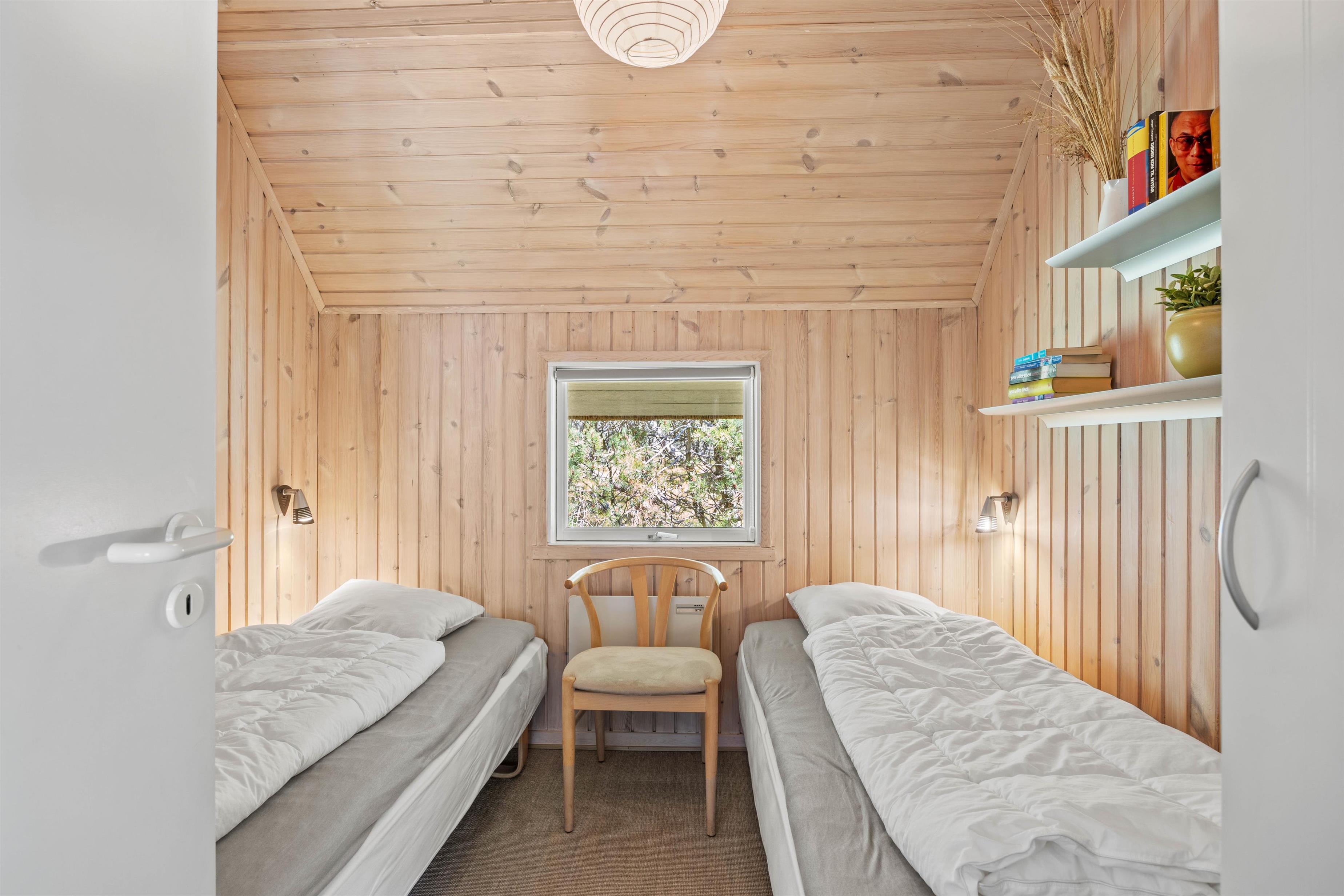 Kom ind og slap af i et dejligt sommerhus med god plads til familien på 4 eller venneparrene, der vil dele et par feriedage sammen i Blåvand. Feriehuset er praktisk og hyggeligt indrettet med 2 soverum med god skabsplads, i det ene soverum er der 2 enkeltsenge og det andet har en dobbeltseng.