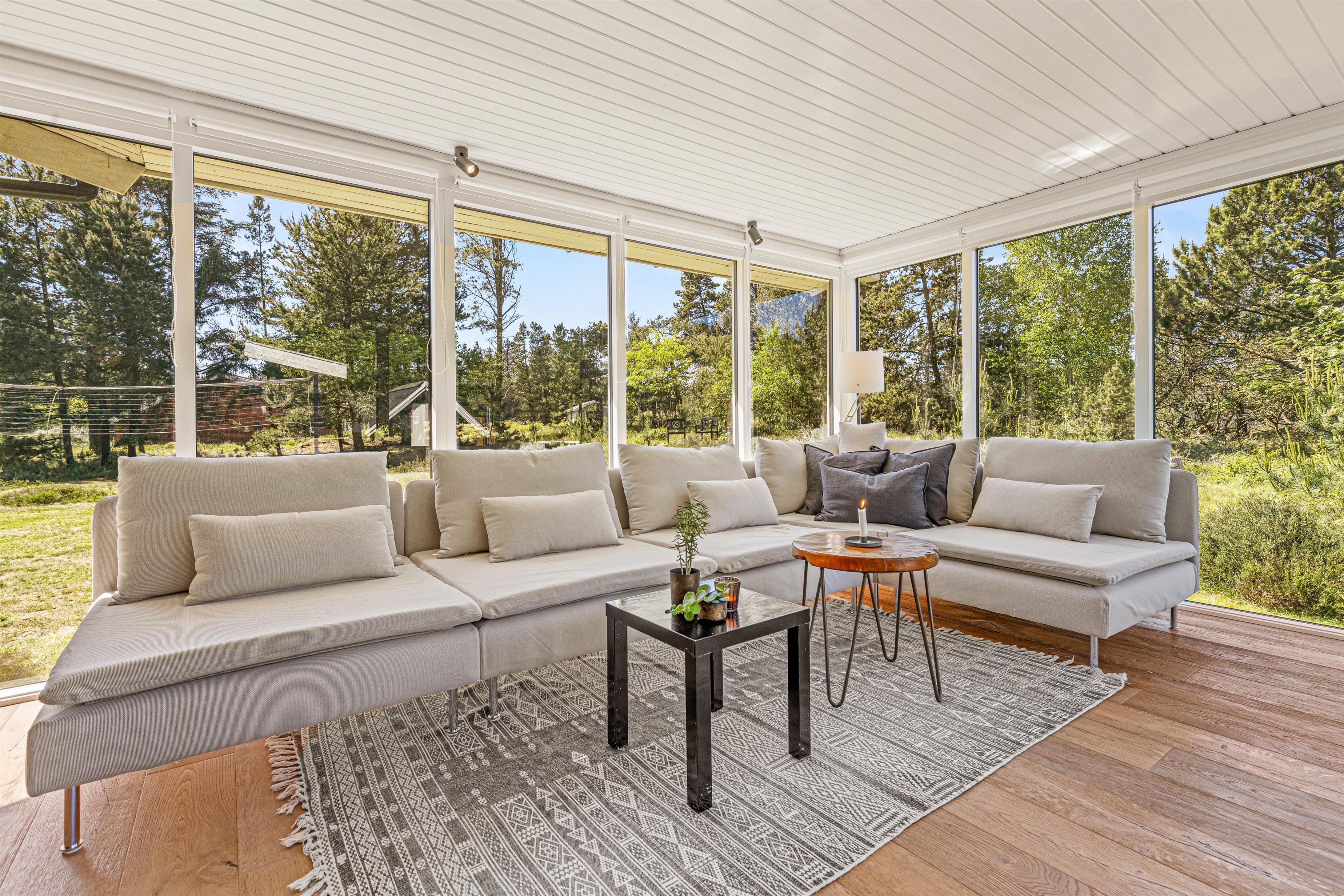 Selv indendørs i sommerhuset vil I kunne mærke den vestjyske natur. Stuen er bygget som en udestue, hvor der er flot kig til den omkringliggende natur samt et skønt lysindfald. Desuden er feriehuset udstyret med en økonomisk varmepumpe, så I kan holde jer varme uden de store omkostninger.