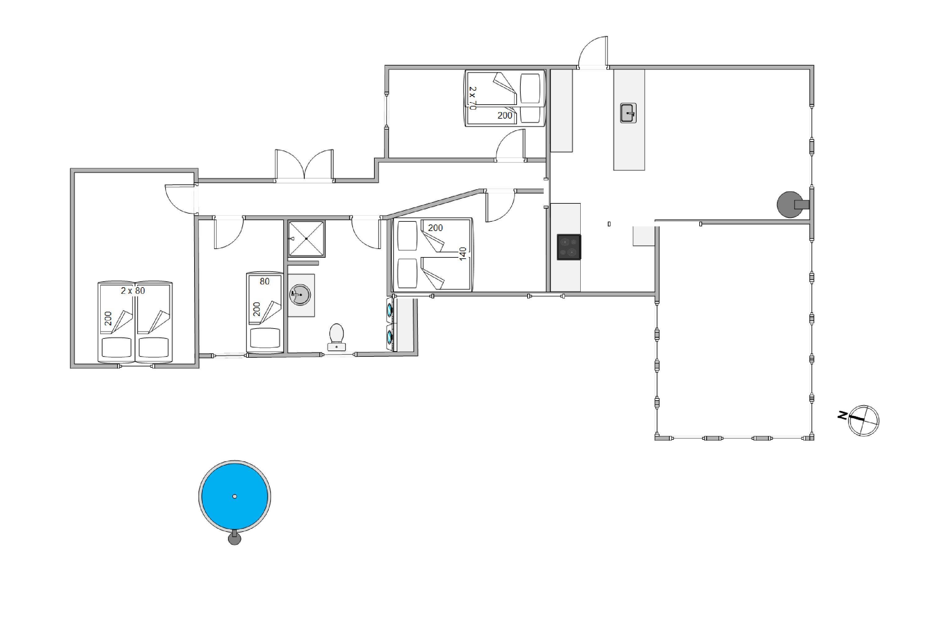 På den 2.500 kvadratmeter store ugenerede grund har I masser af privatliv. I vil altid kunne finde en solstråle, da der overalt på grunden er små hyggekroge og en bålplads, som alle indbyder til afslapning. Når store og små skal give den gas, er grunden udstyret med trampolin, basketballnet og et volleyballnet – måske skal den næste basket– eller volleymester findes på ferien?