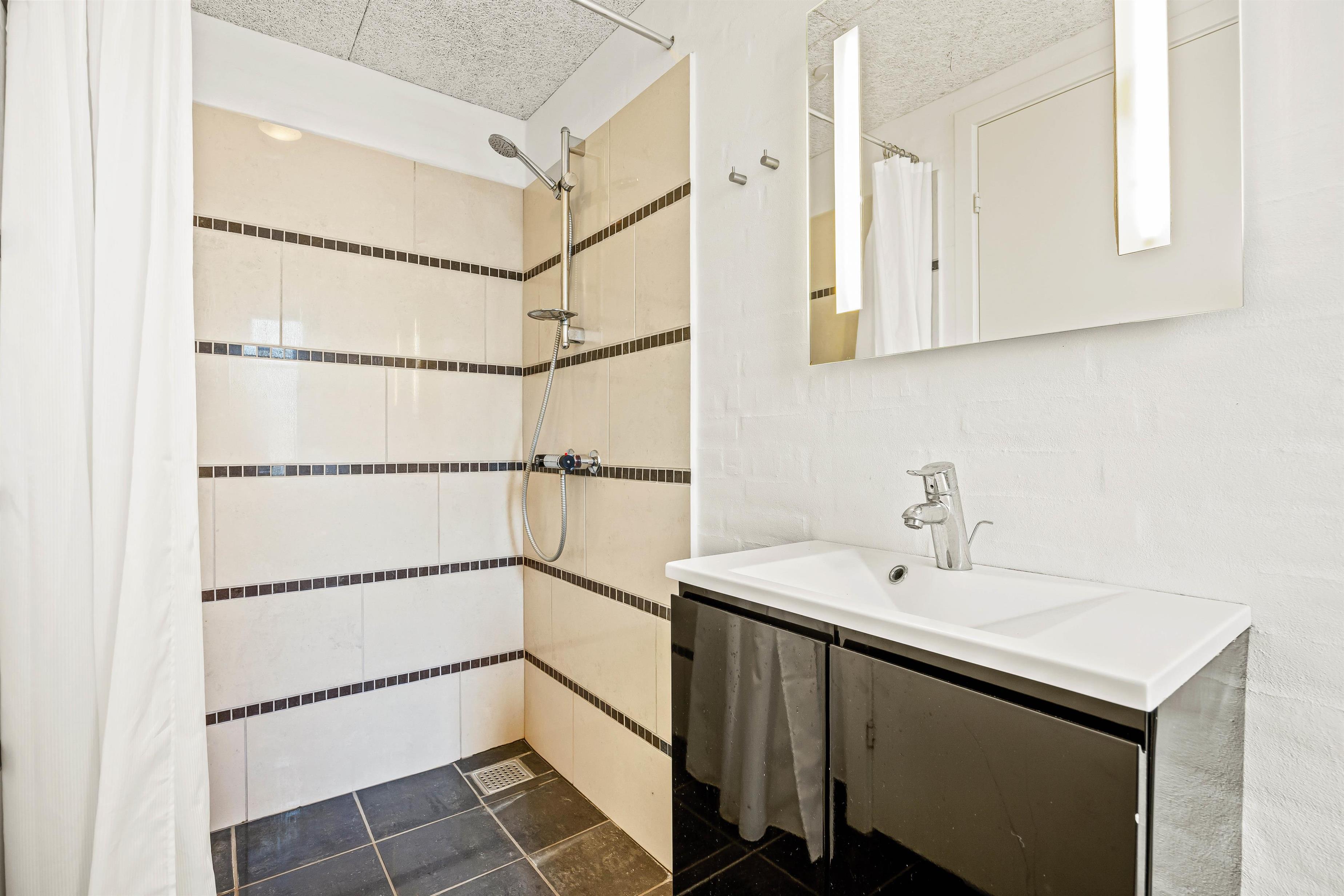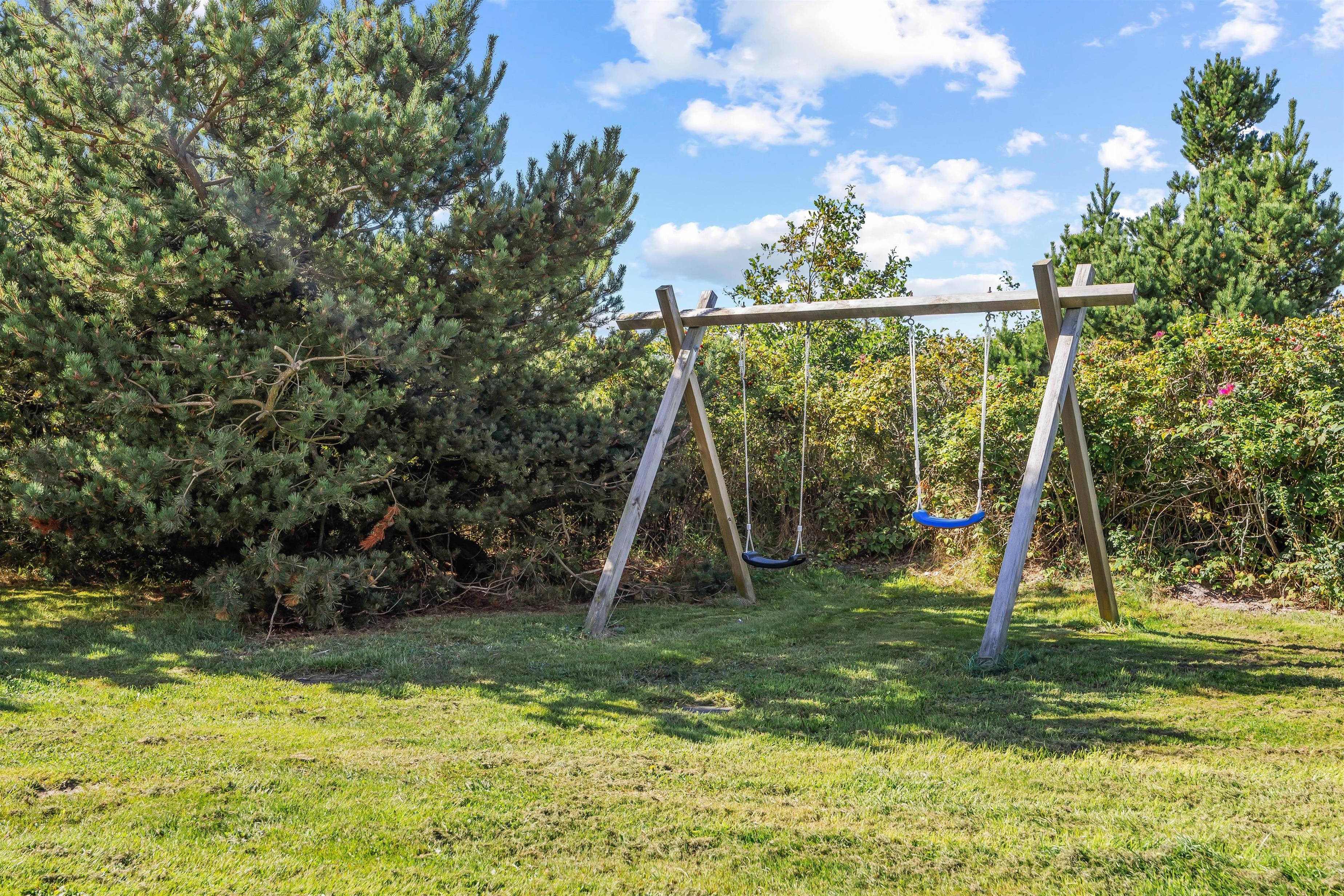 Sommerhuset ligger på en herlig stor grund med masser af plads til terrassehygge og leg og spil på græsplænen for de mindste. Gyngestativet og sandkassen bliver også et hit blandt børnene, mens I kan sole jer i fred og ro på terrassen. Bliver det for varmt, kan I afkøle jer under udebruseren, der er til rådighed fra april til og med oktober.