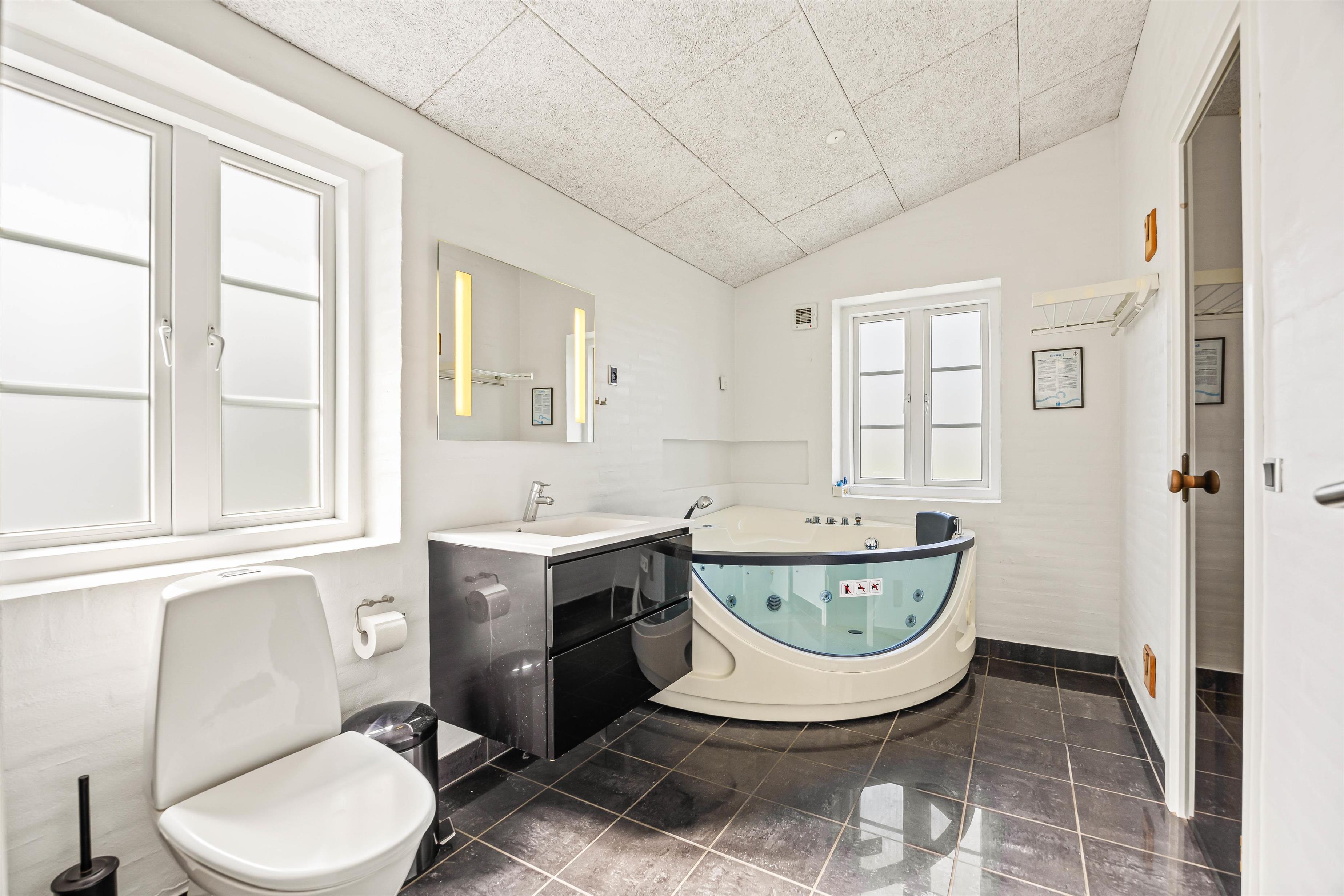 Indvendigt finder I alt, hvad ferien behøver. Det rummelige hus har i alt tre badeværelser (to med adgang fra soveværelserne), så I undgår kø til toilettet, og på det største badeværelse finder I også et spabad, hvor I virkelig kan få et dejligt afbræk fra hverdagens stress og jag.