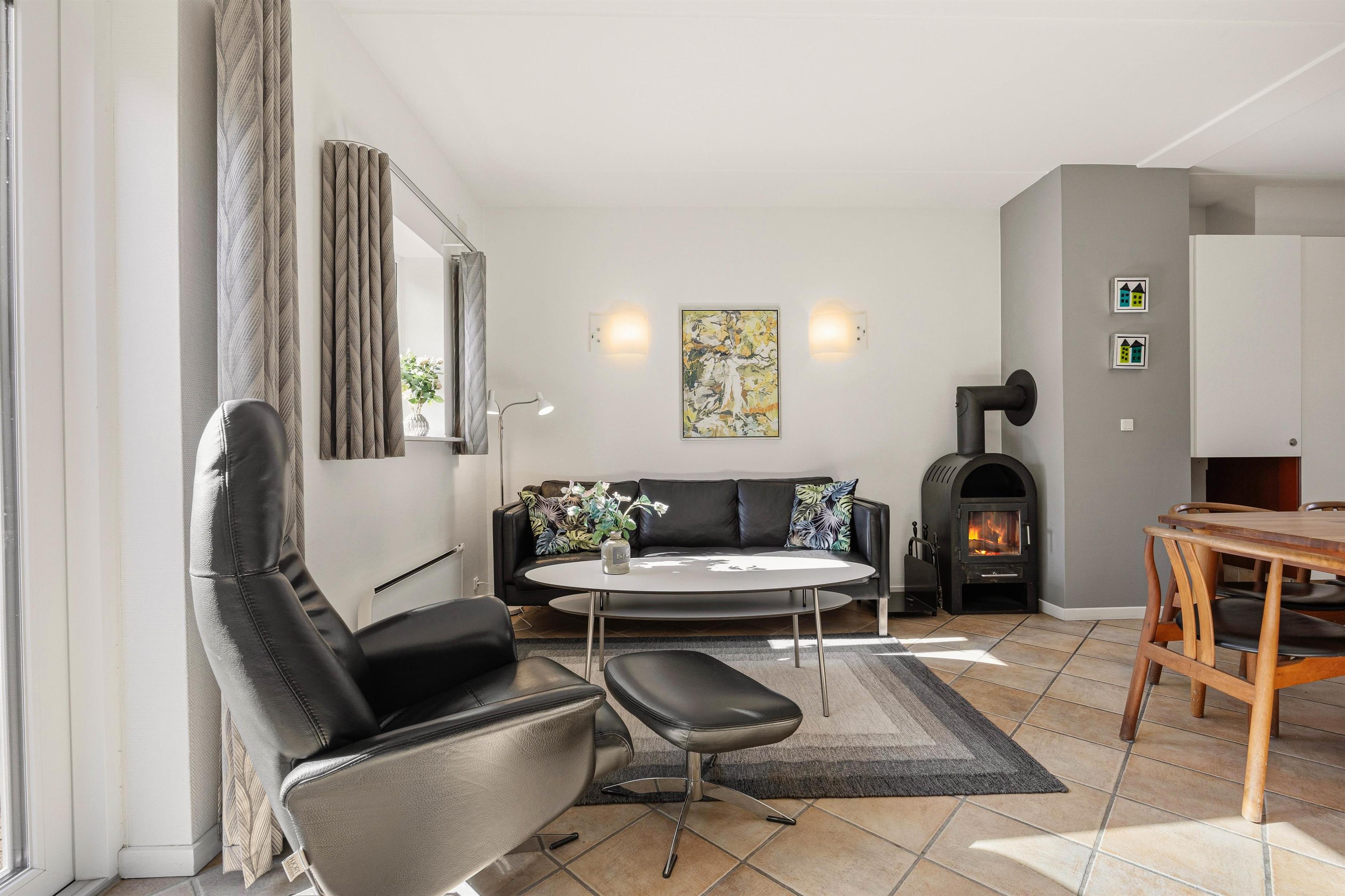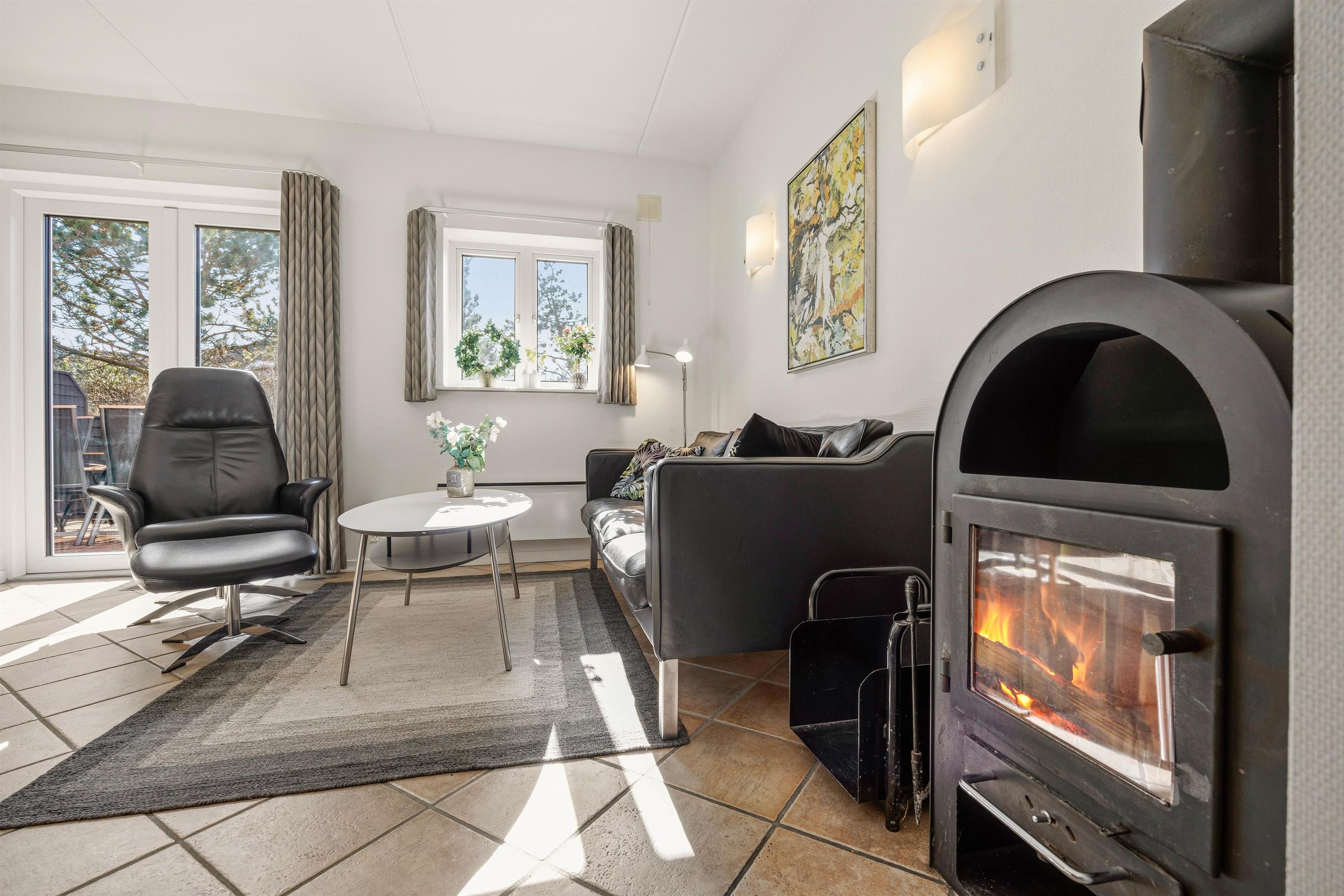 Når dagen begynder langsomt, og du kan høre vinden udenfor, er det en luksus at kunne tænde op i brændeovnen og lade varmen brede sig. Her bliver aftenerne naturligt længere – med ro, samtaler og den særlige stemning, som kun levende ild kan give. Samtidig gør varmepumpen det nemt at holde en stabil og behagelig temperatur, uanset om du besøger Blåvand i den friske forårsbrise eller på en kølig efterårsdag. Den hyggelige indretning binder det hele sammen og skaber et sted, hvor du får lyst til at blive lidt længere i sofaen.