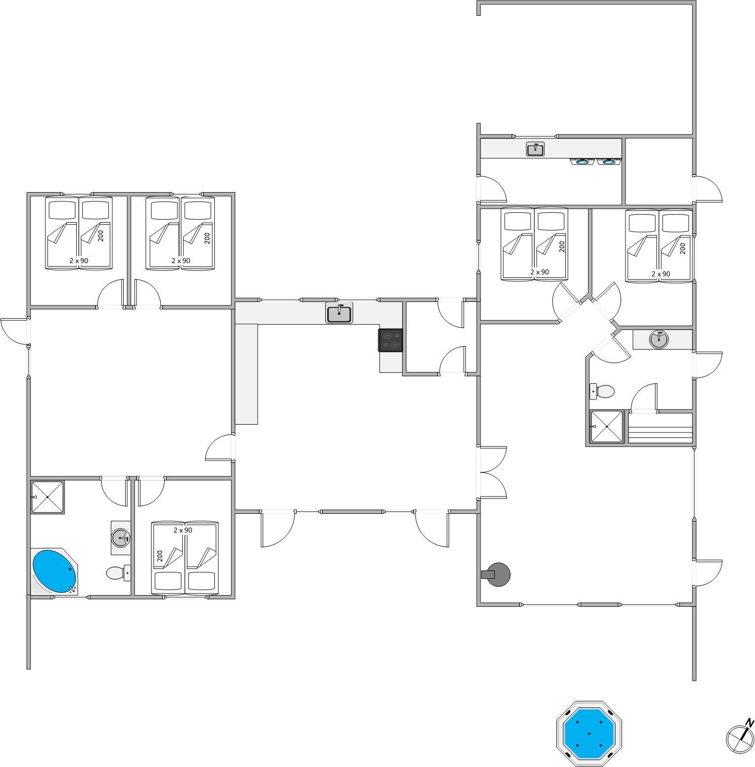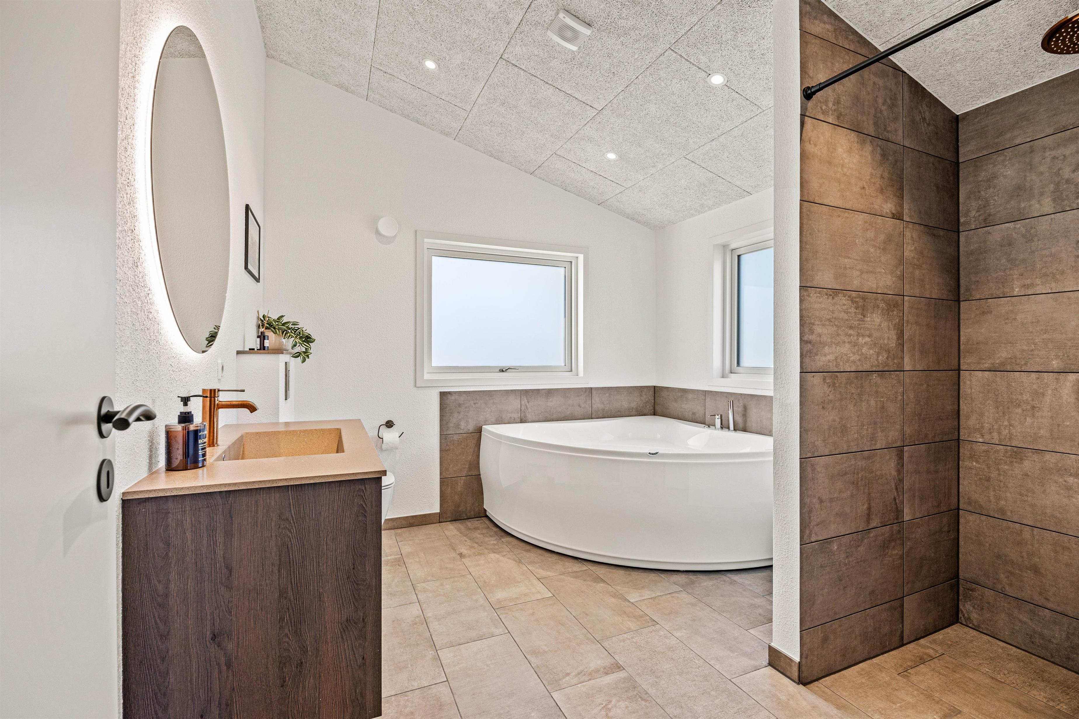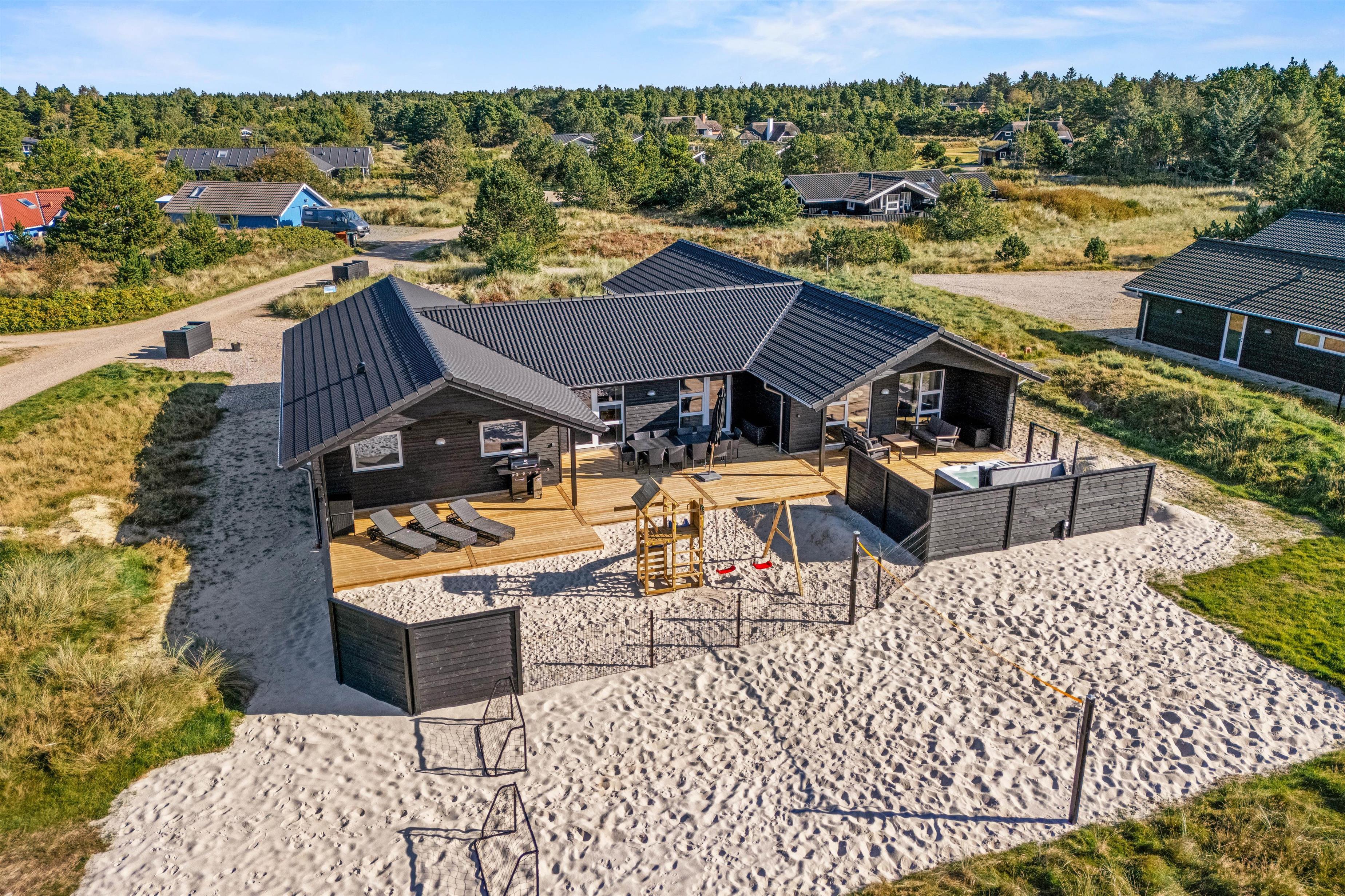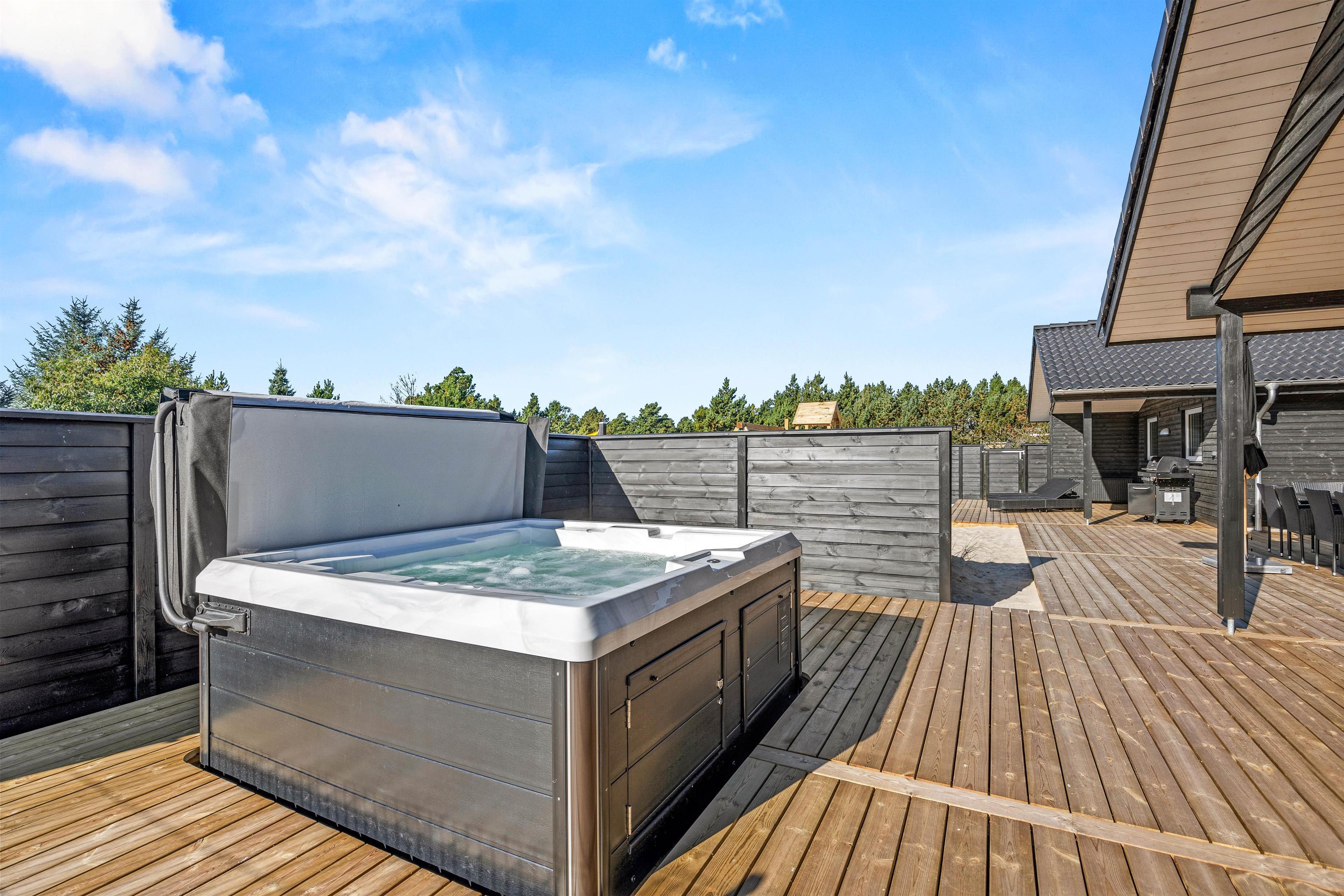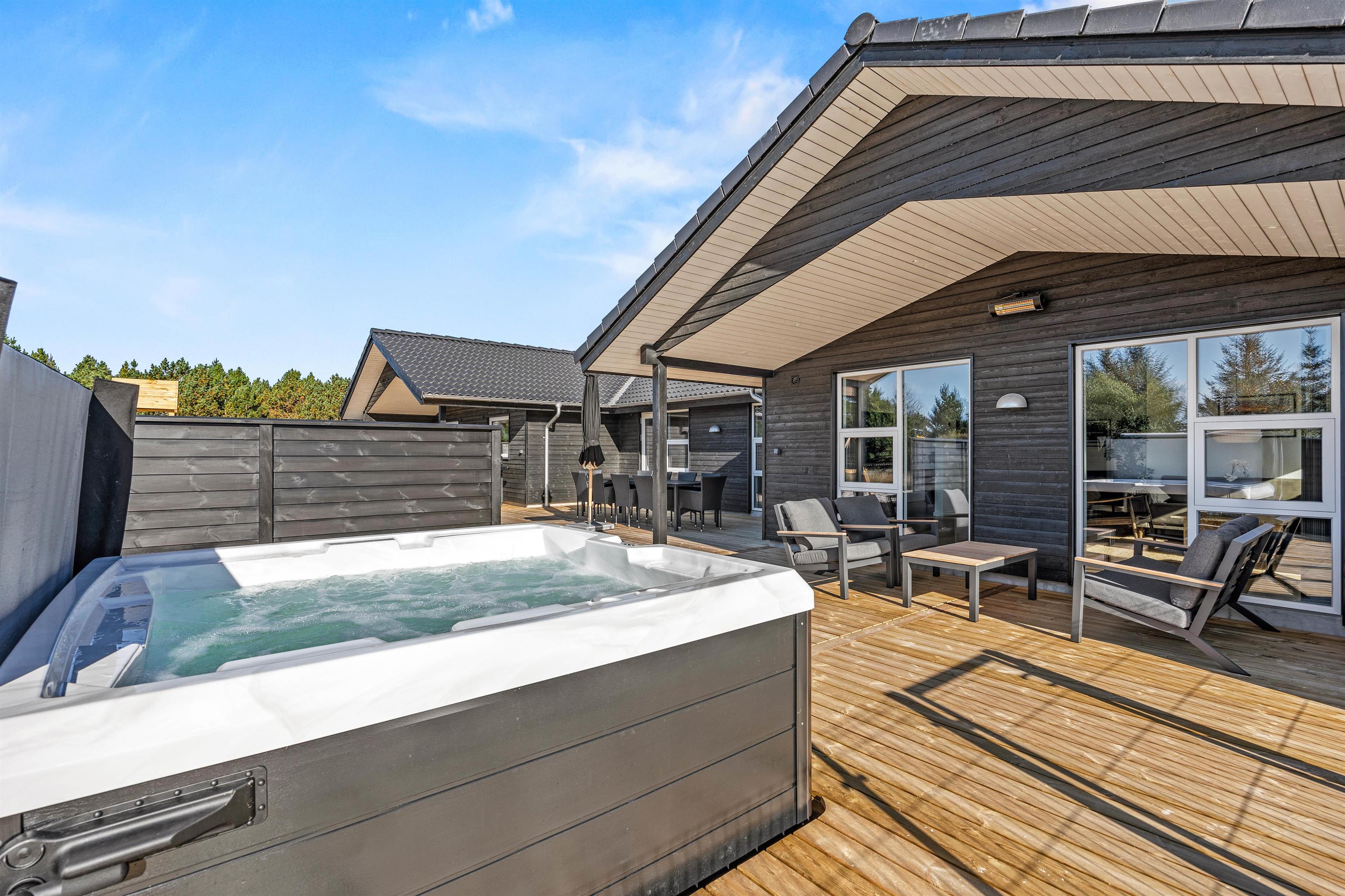 Træd indenfor i et hus, der stråler af modernitet og komfort, bygget i 2025, og som indfrier alle drømme om et skønt ophold. De fem smagfuldt indrettede soveværelser byder hver især på en behagelig dobbeltseng, der lover masser af hvile og dyb søvn. To stilfulde badeværelser med gulvvarme vil lune dig om fødderne, mens en indbydende whirlpool tilbyder afslapning på højt plan. Desuden kan du nyde roen i en sauna eller det forfriskende bad i en udendørs whirlpool, alt sammen til at slippe dagens stress.