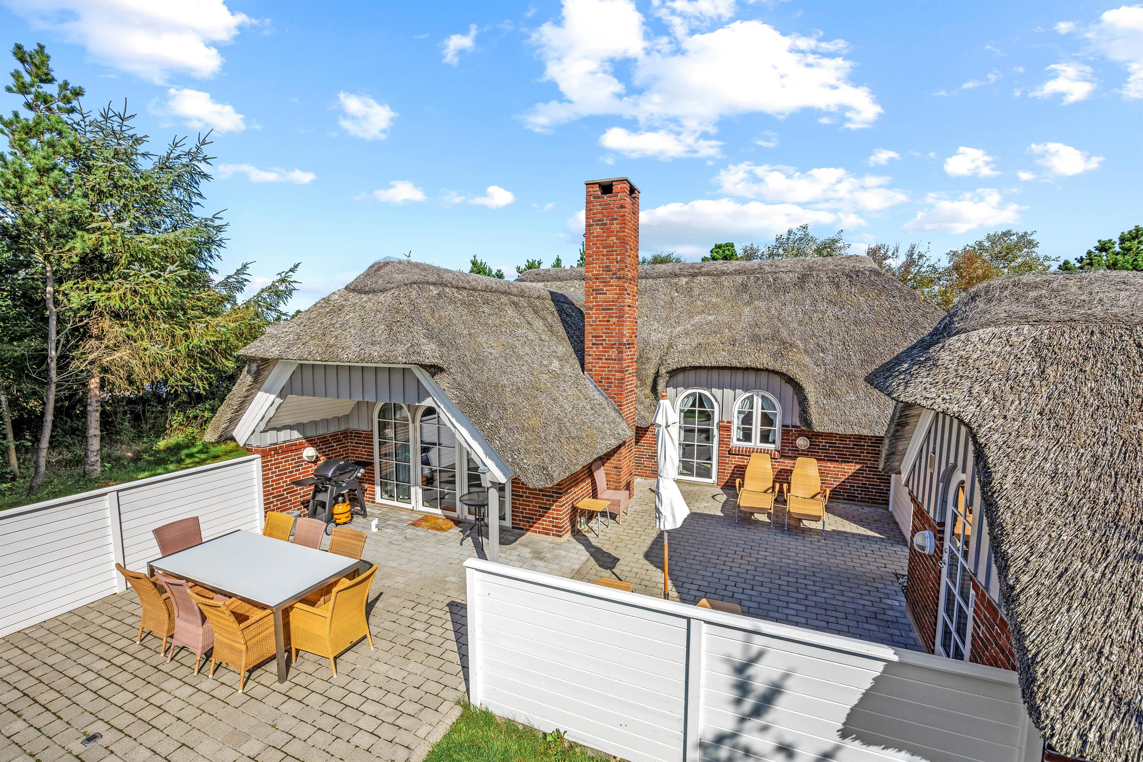 Nyd en aften på den delvist overdækkede terrasse med grillfaciliteter og havemøbler, hvor gode og hyggelige stunder med familien er i højsædet. Terrassen fungerer som en naturlig forlængelse af sommerhusets indendørs opholdsområder og danner rammen om mange af jeres ferieminder. Uanset om I ønsker at nyde en tidlig morgenkaffe i den friske luft, et spil kort efter middagen eller blot ønsker at slappe af med en god bog, er terrassen det ideelle sted.