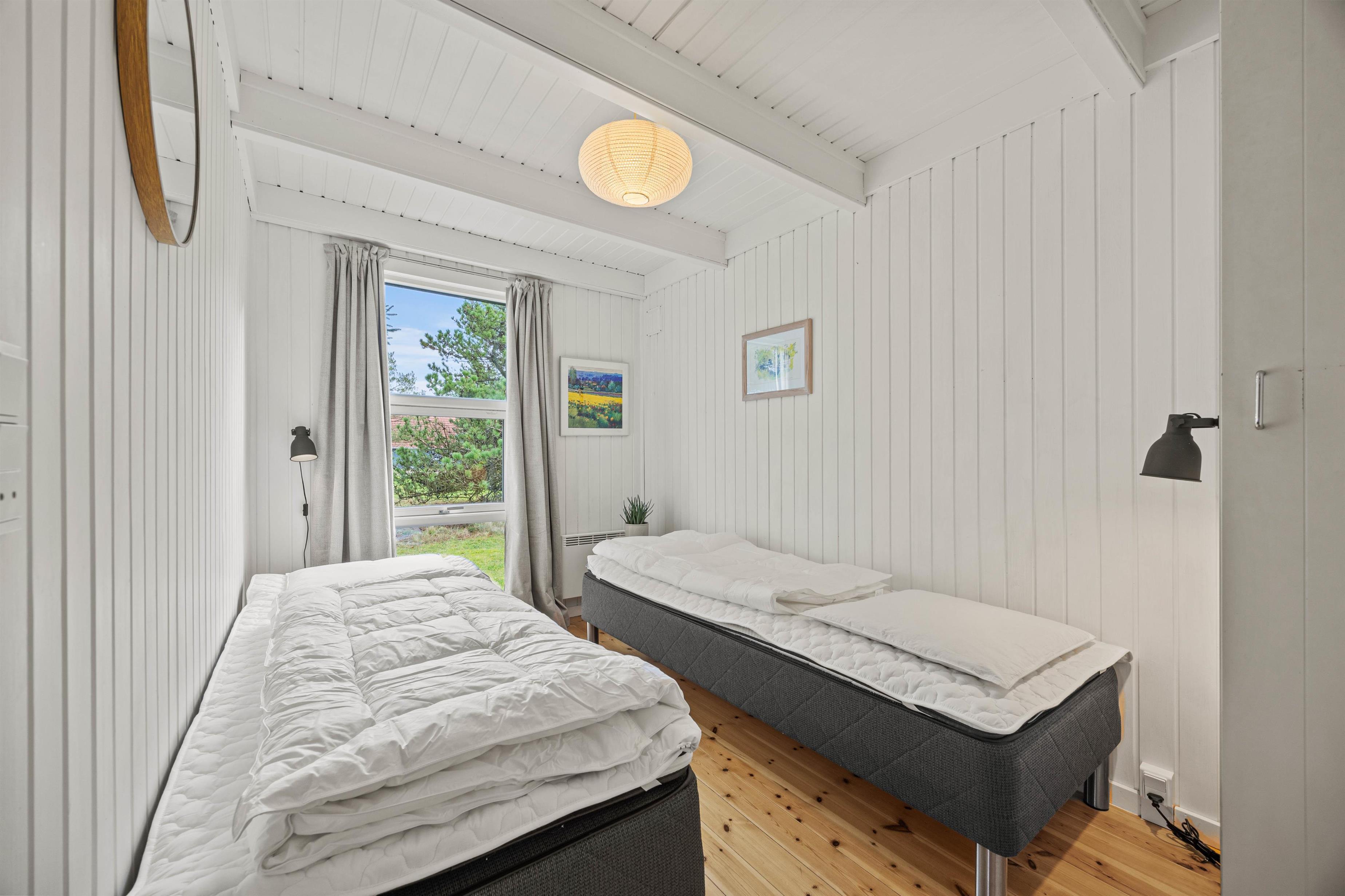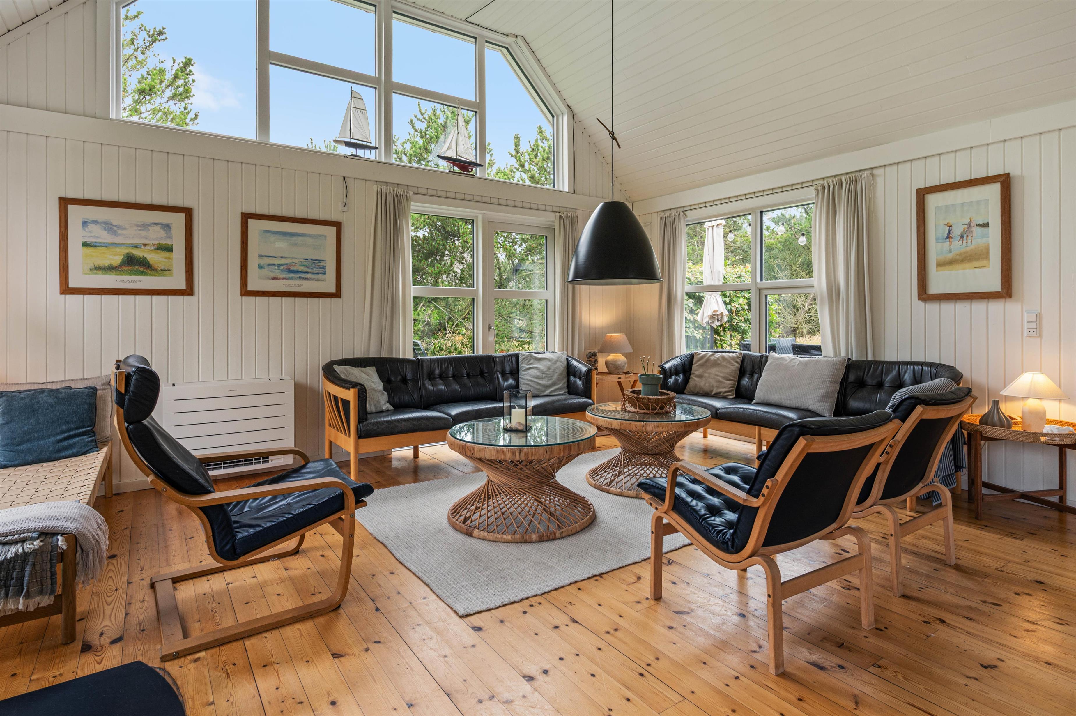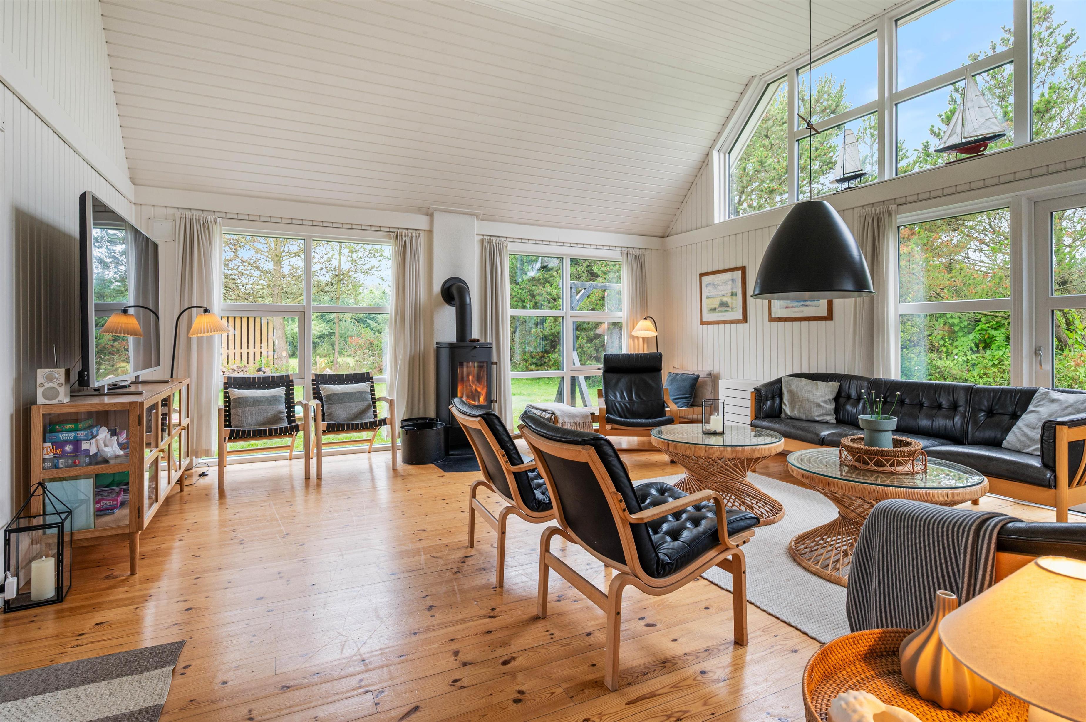 Hjertet af sommerhuset er stuen, hvor I straks vil føle jer hjemme. Rummet er indbydende og lyst grundet de mange vinduer og det hvidmalede træ, som i kombination med trægulvet skaber en hyggelig atmosfære. Tænd brændeovnen om aftenen og nyd dens varme, mens I streamer en film via Chromecast. I sommerhuset er der også danske tv-kanaler.