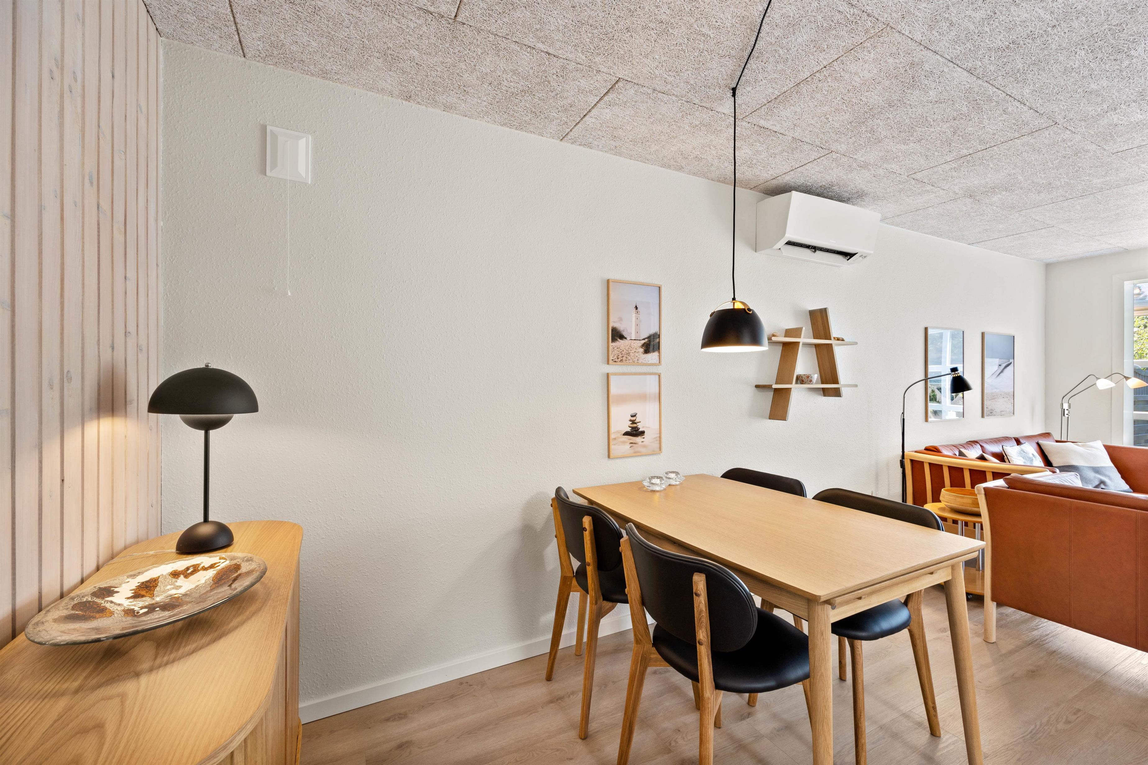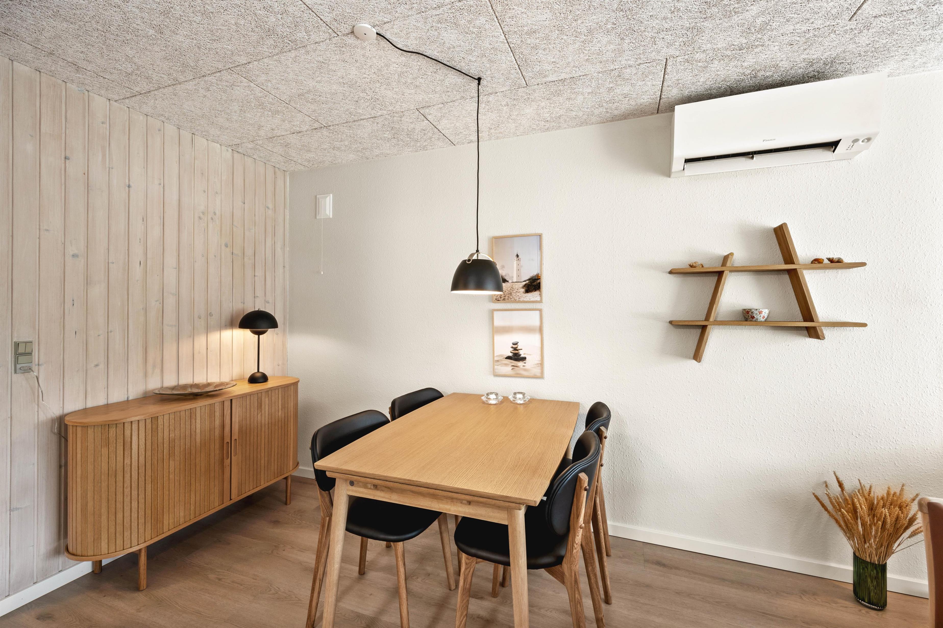 På de køligere dage kan I sætte jer til rette i udestuen, hvor I finder gode siddepladser. Slå jer ned med en god bog, mens I nyder udsigten til den grønne have. Varmepumpen sørger for en hurtig og energivenlig opvarmning af feriehuset, og gulvvarmen på badeværelset sørger for lune fødder.