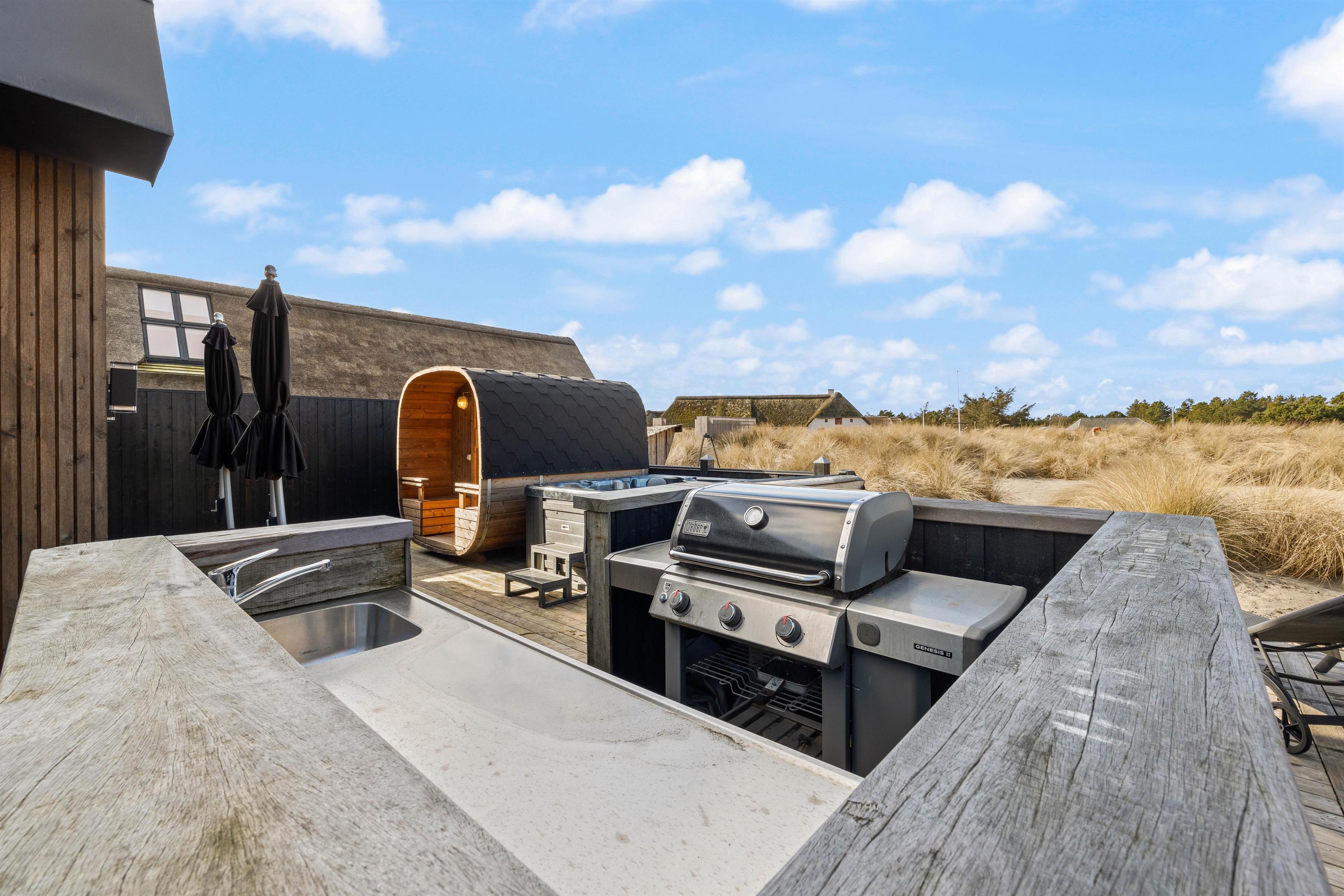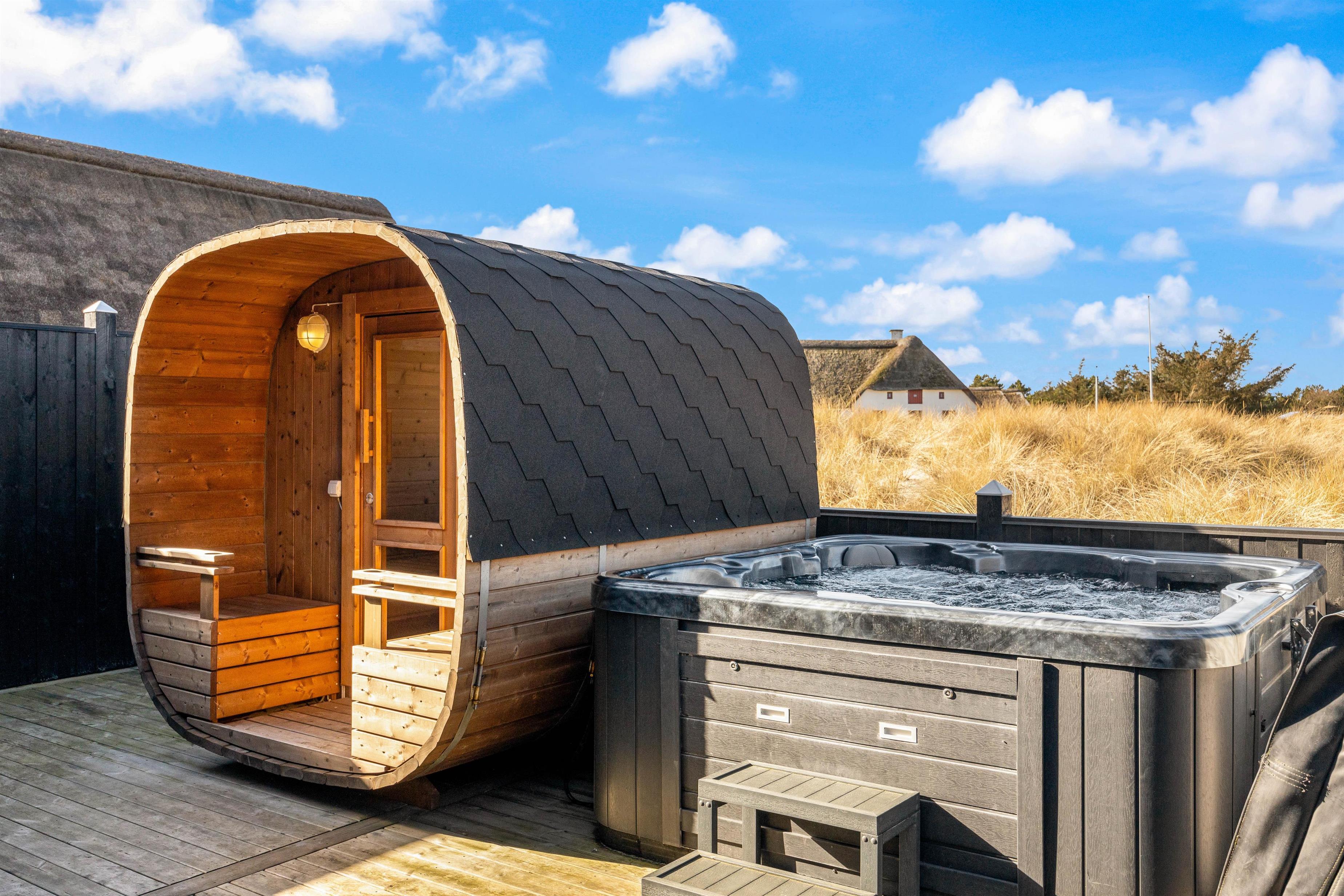 Gæster i dette feriehus må elske luksus og wellness, og her kan I jo nyde både en dejlig varm udesauna og en boblende spa til en stille morgenstund eller den smukke solnedgang. I sommerhalvåret er der også en udebruser, hvor I kan få et forfriskende skyl eventuelt efter en tur i det brusende Vesterhav.