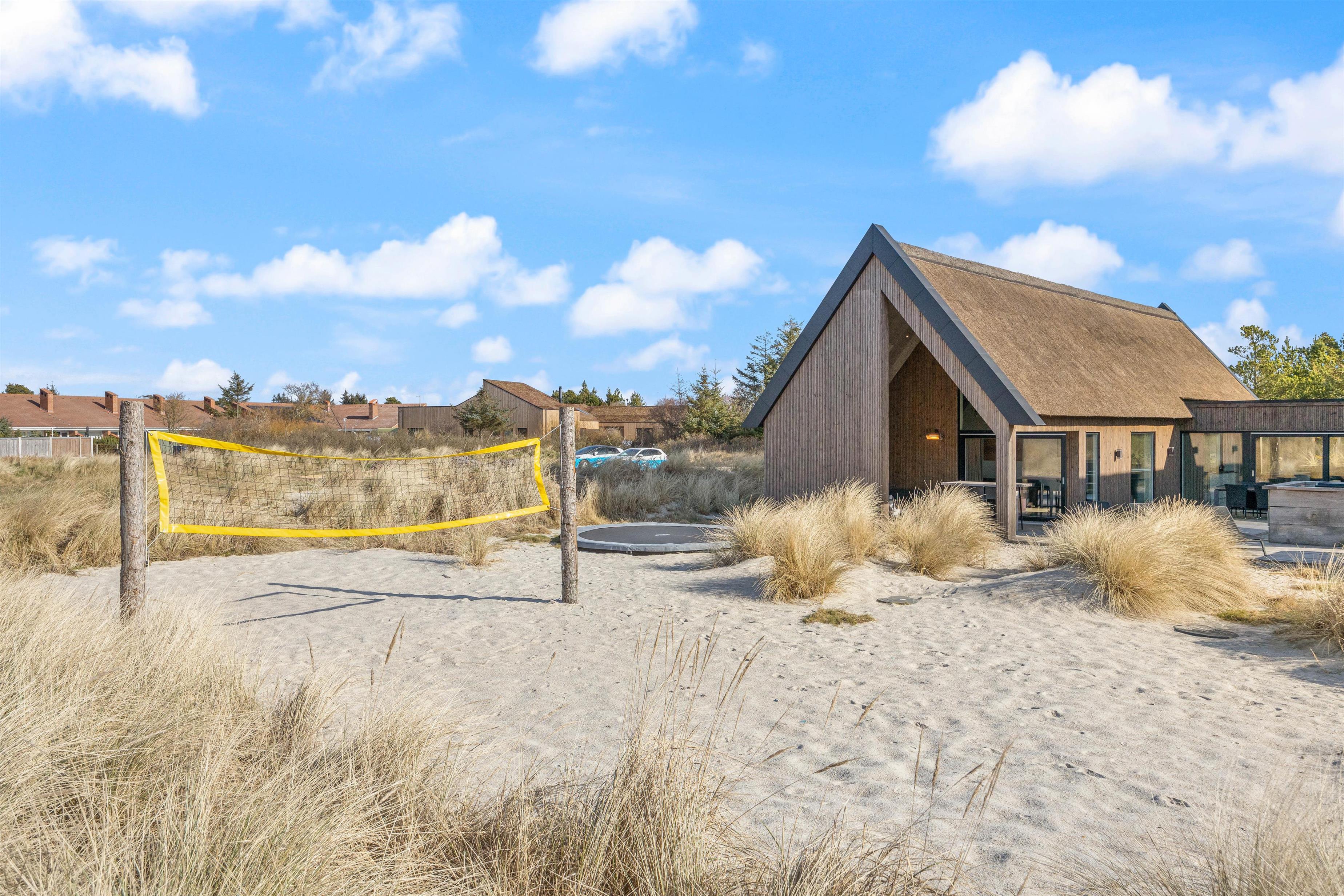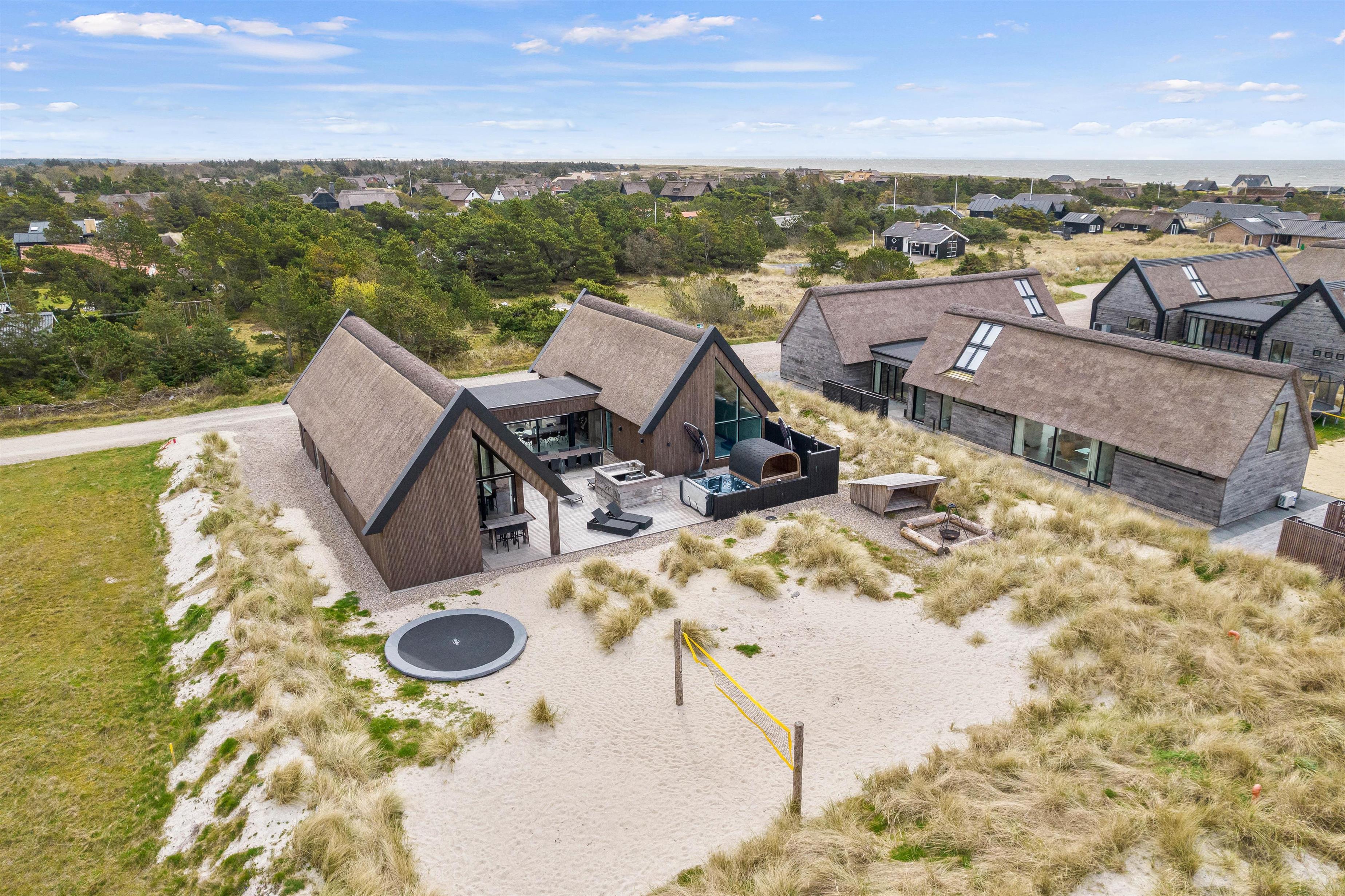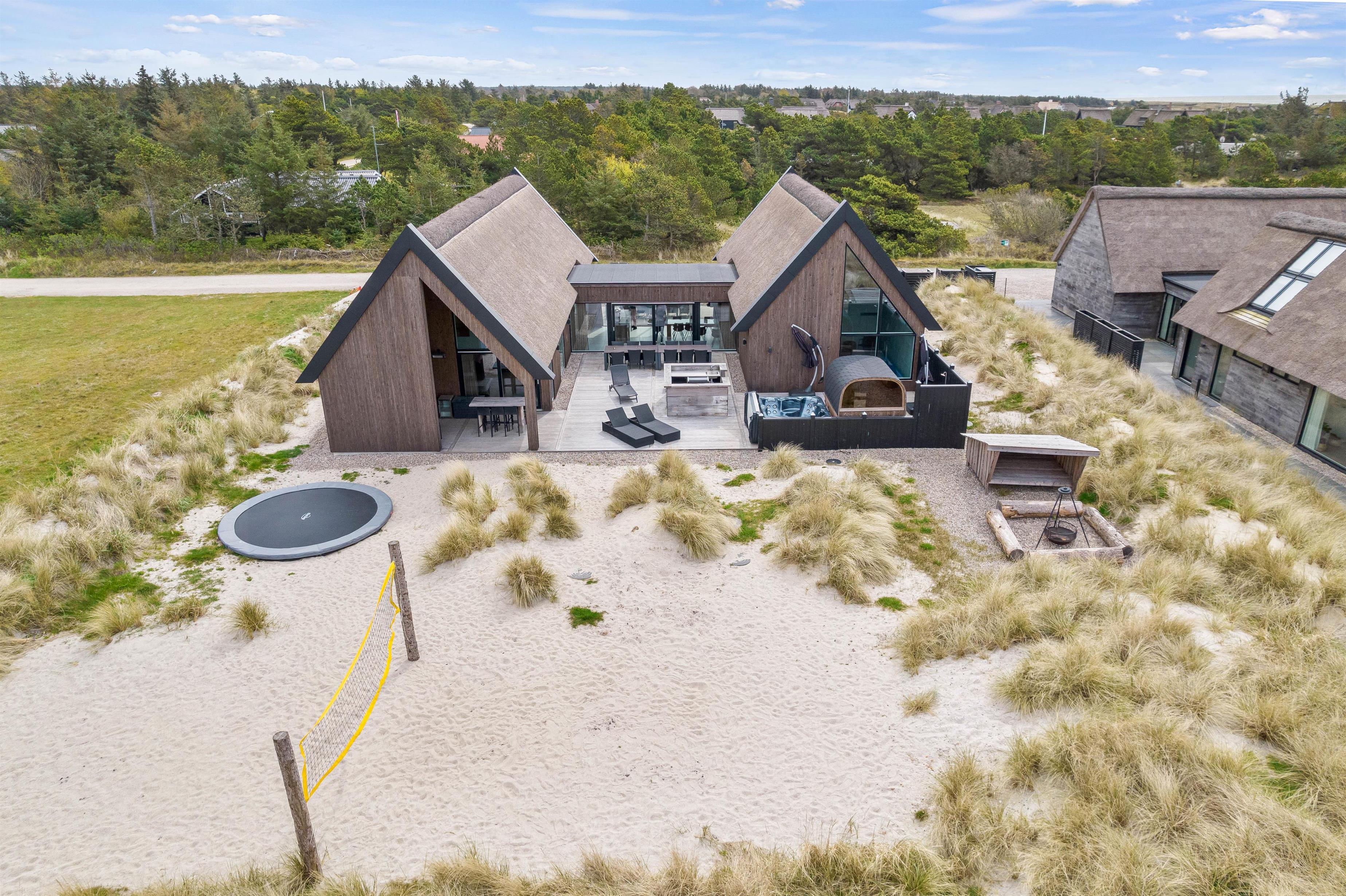 Det moderne poolhus på Sønder-Vasevej 2B i Blåvand emmer af luksus. Feriehuset er 250 m2 stort og er bygget i 2021, og her finder I mange gode faciliteter såsom et stort aktivitetsrum, pool, spa og udendørssauna. Der er plads til 12 personer, og sommerhuset egner sig derfor godt til en ferie med flere familier eller en stor vennegruppe. Det dejlige sommerhus ligger blot et stenkast fra indkøbsmuligheder og den vestjyske sandstrand, hvor I kan få en masse timer til at gå.