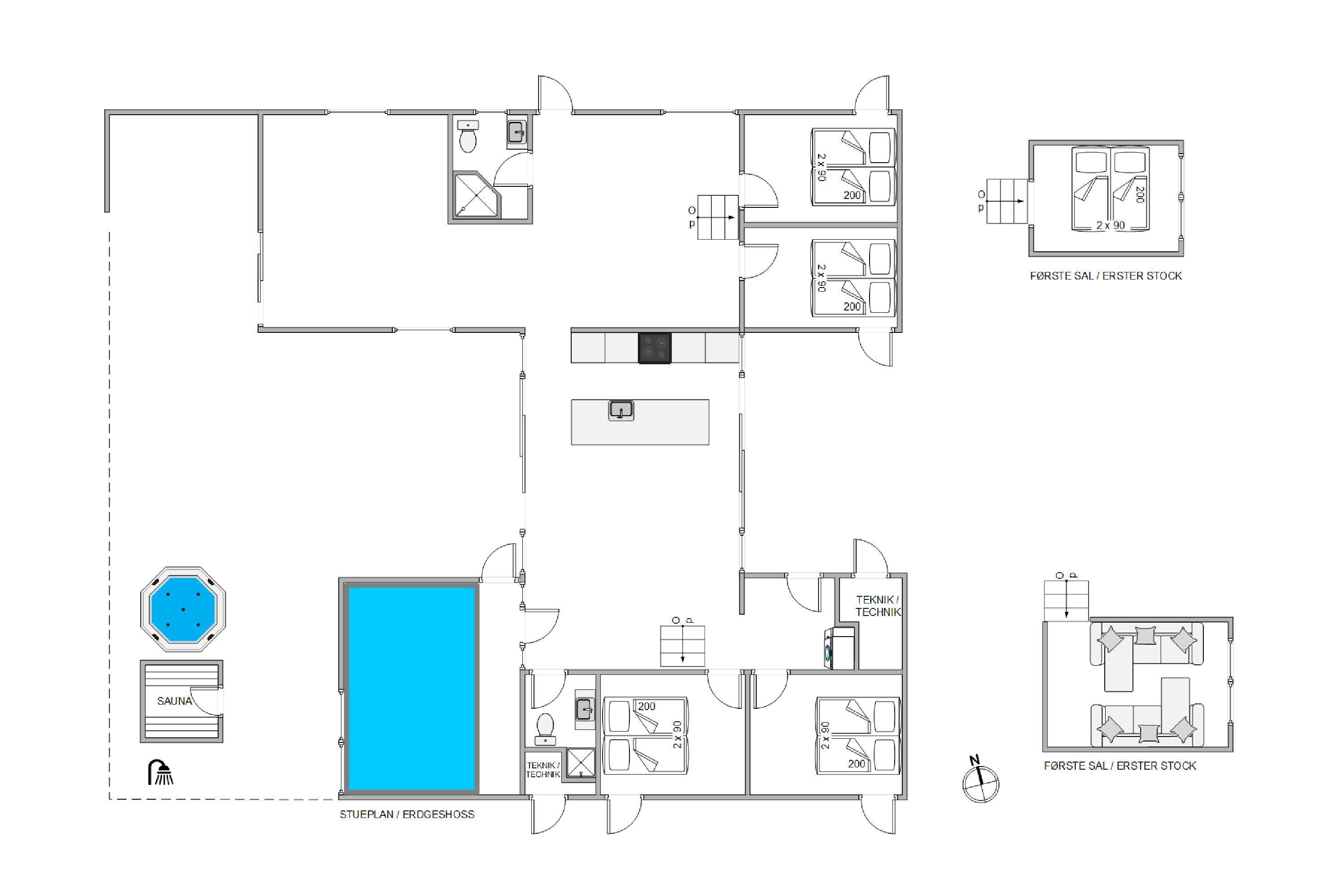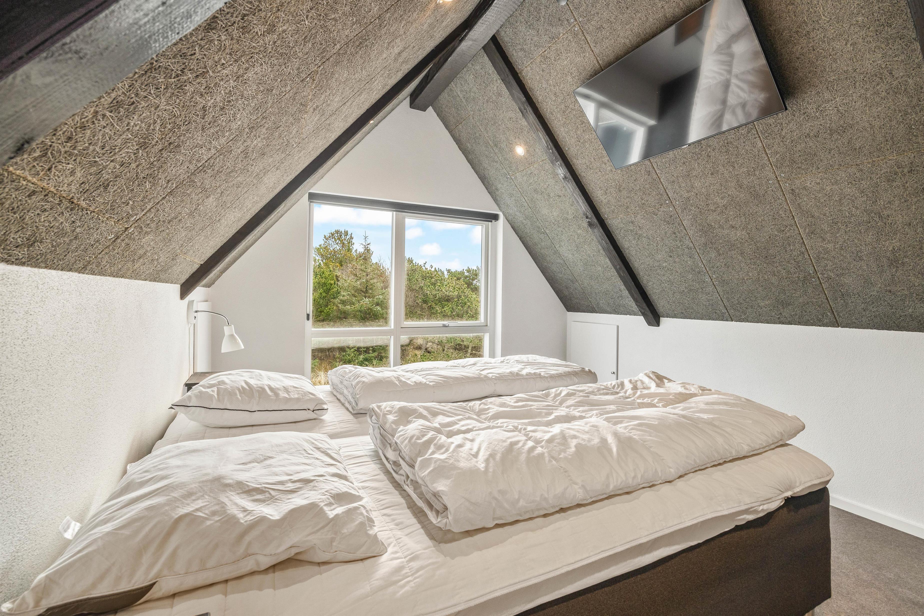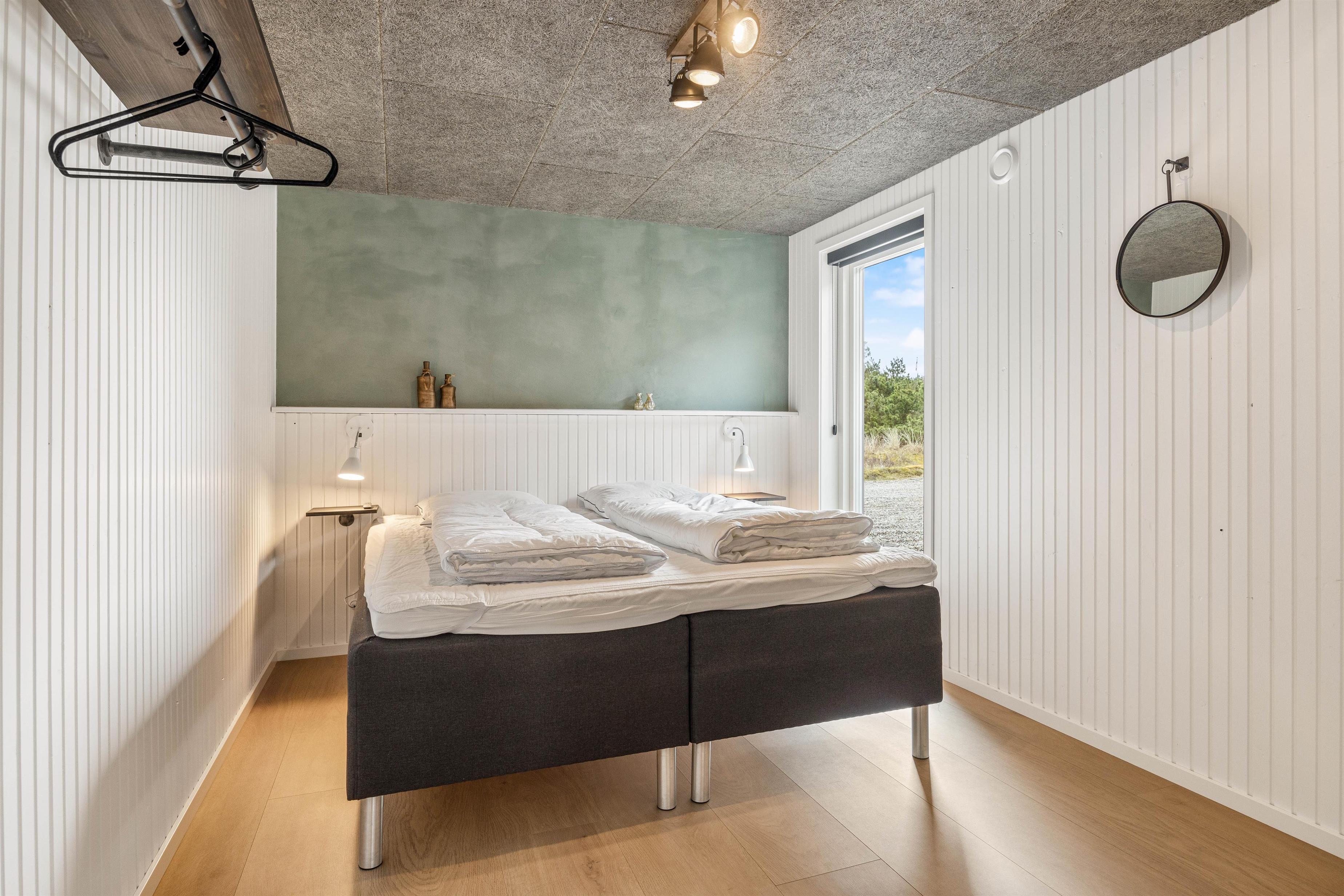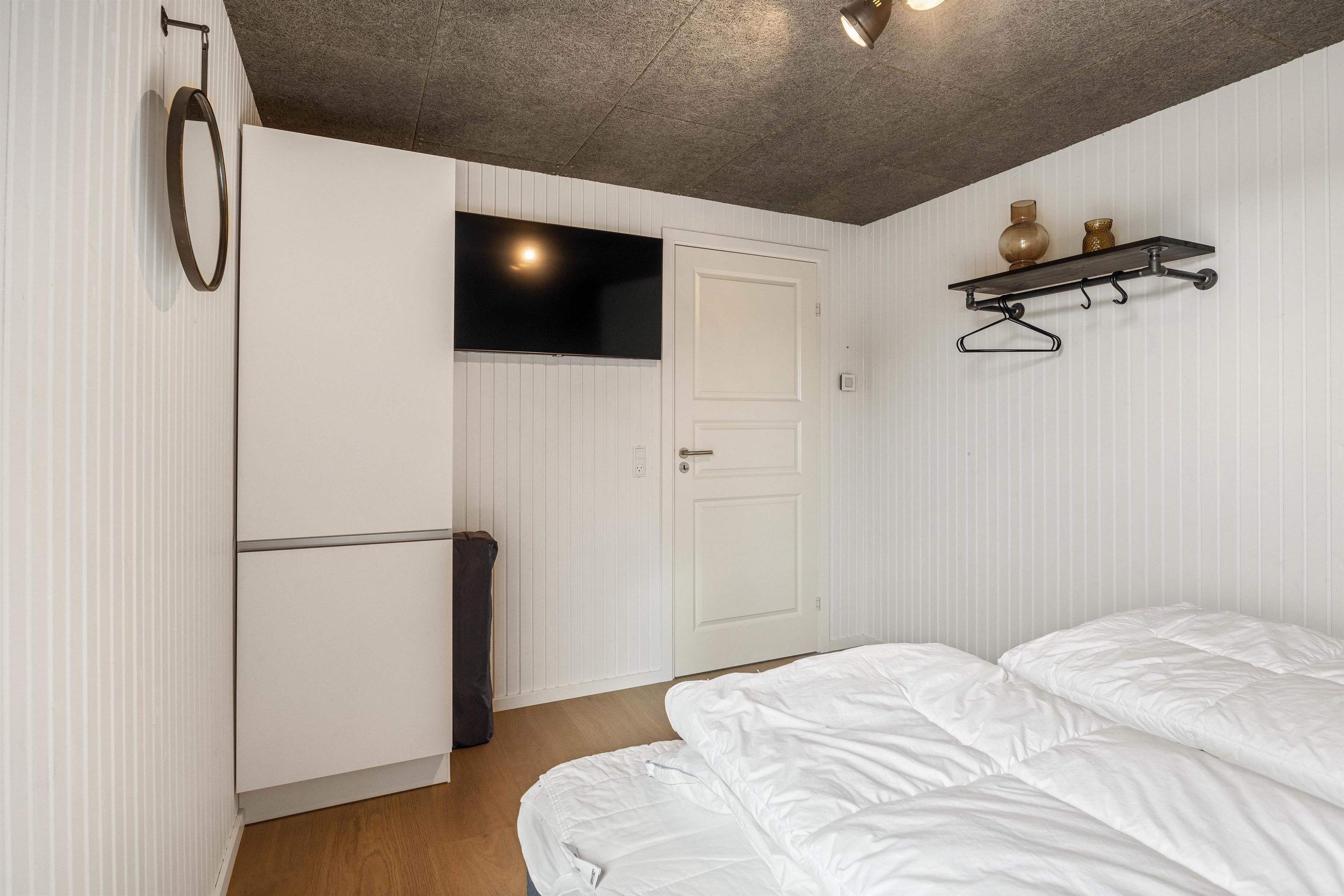 Feriehusets to badeværelser er moderne og elegant indrettet og har naturligvis gulvvarme. Sovepladserne er placeret på to forskellige sider af huset, så I kan dele dem godt op - f.eks. hvis I holder ferie med 2 familier. I alt er der 4 soveværelser med komfortable dobbeltsenge og 2 hemse med i alt 4 sovepladser. Alle soveværelser er smukt indrettet med lyse paneler og skabe og er udstyret med eget fjernsyn.