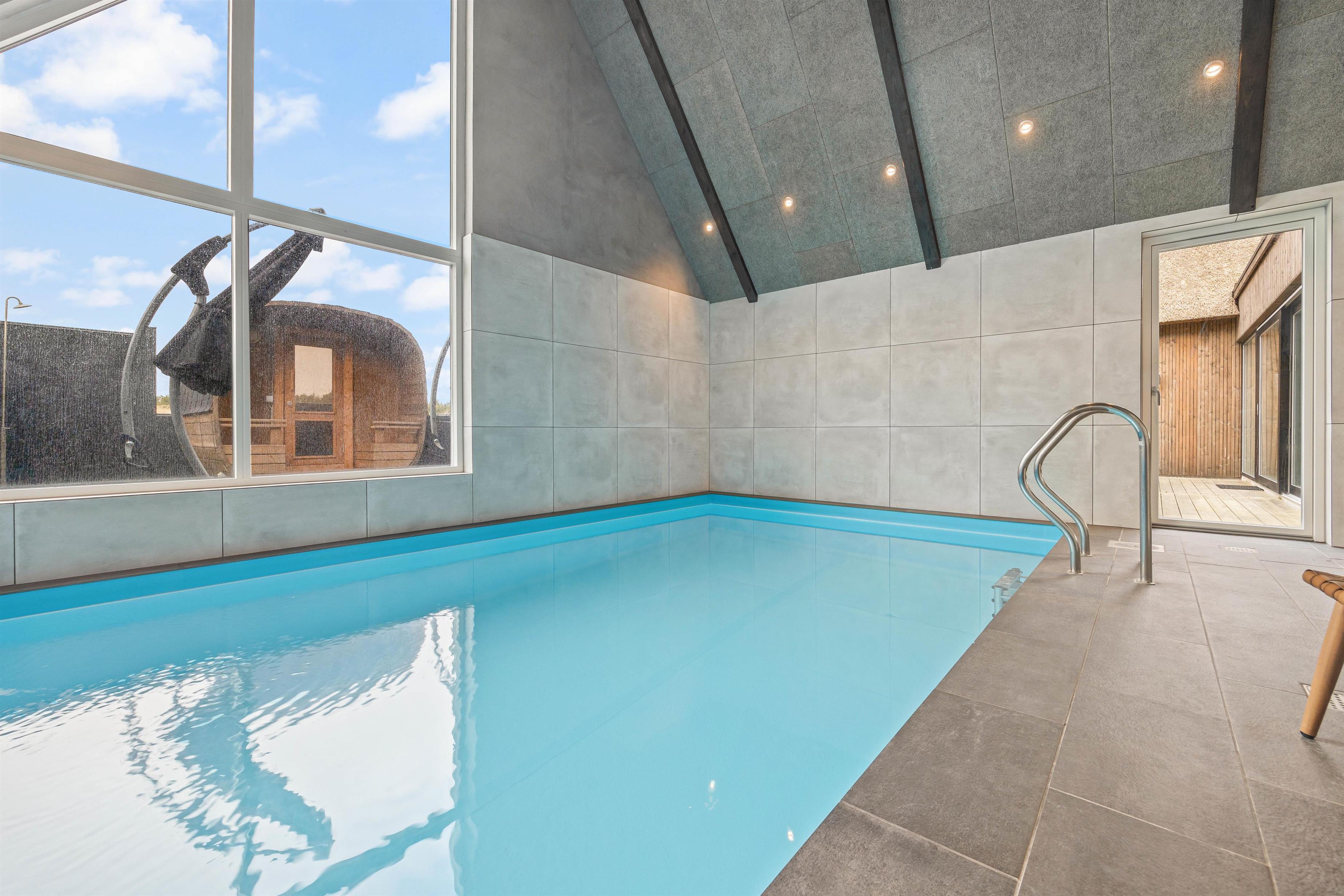 Et af de helt store plusser ved feriehuset er den moderne pool, som både indbyder til afslapning og til timevis af sjov og plask i det blå vand, og med den udendørs spa og sauna, er der alle muligheder for at få wellness som en del af ferien.