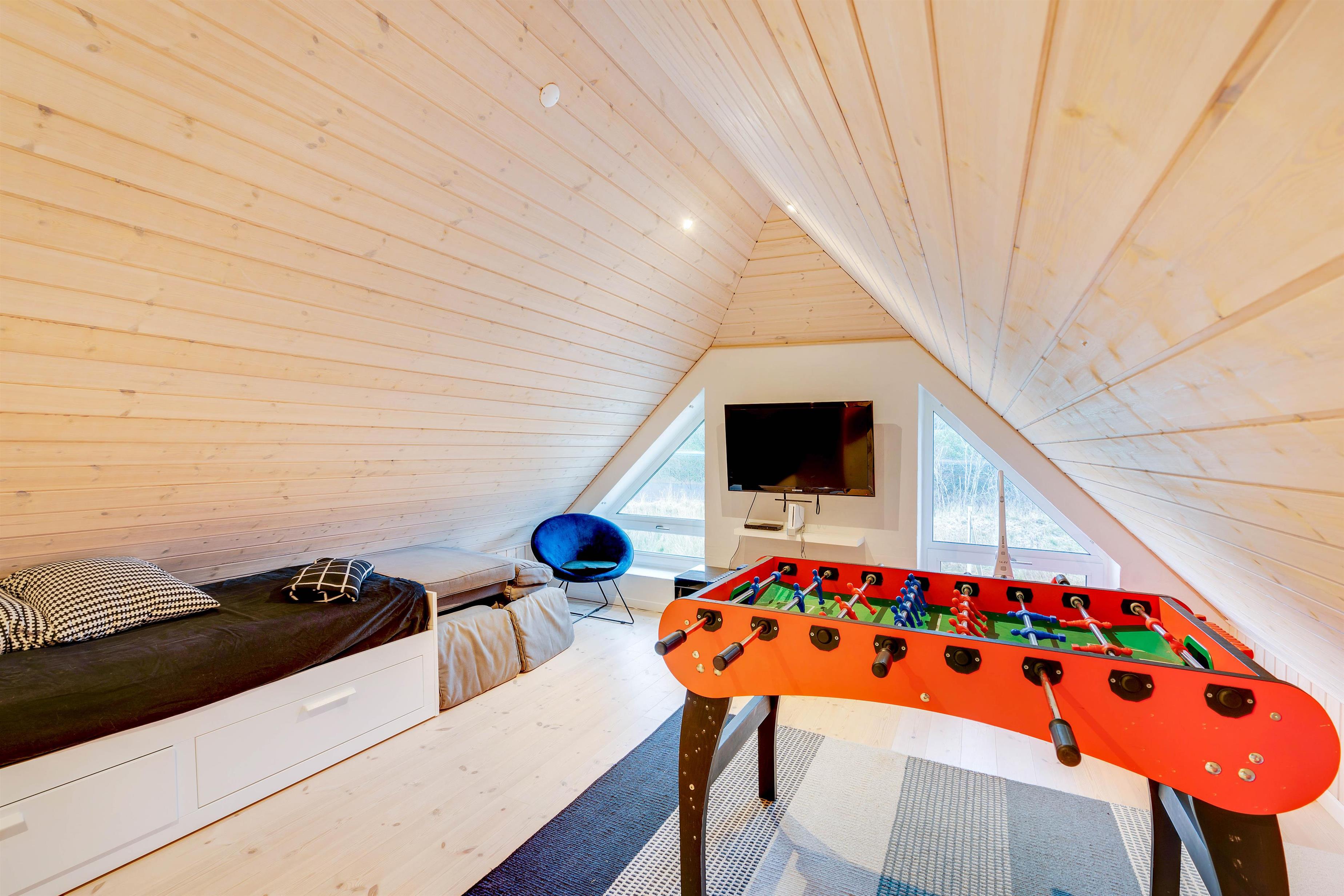 For ekstra hyggestemning i stuen sørger husets brændeovn, men den helt store luksus er husets ”Wellness-afdeling” med både sauna og spa. Her har I muligheden for rigtig at slappe af og komme ned i gear, og virkeligt unde jer selv lidt luksus.