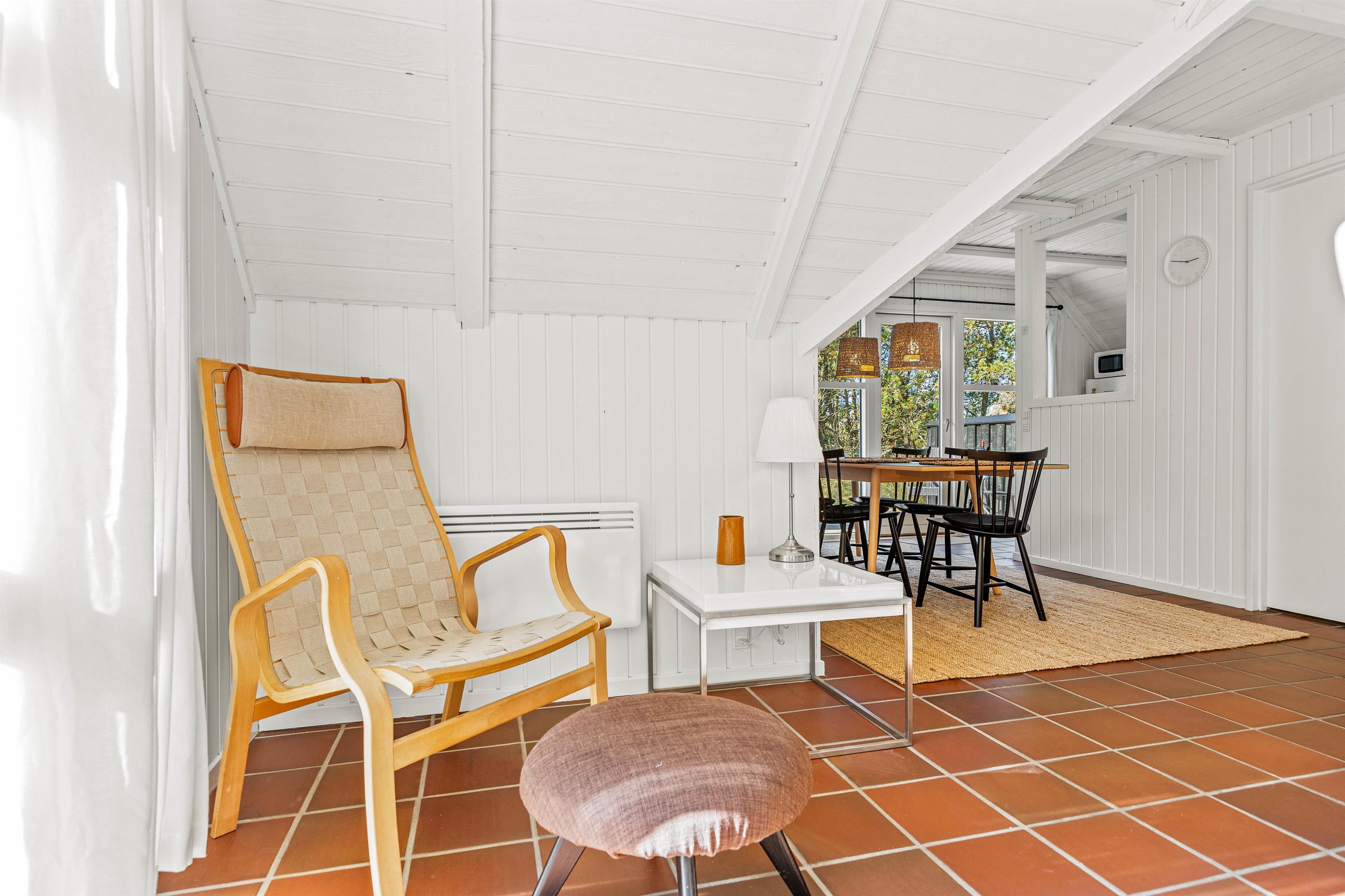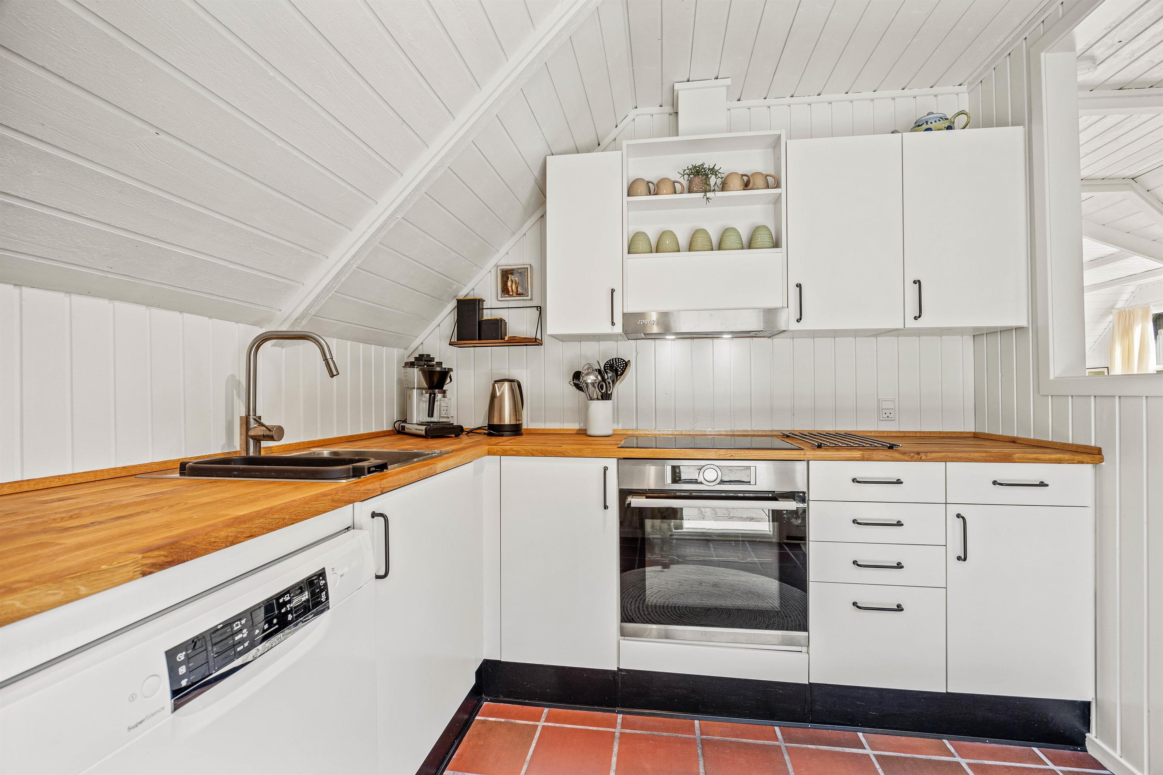 Det hyggelige, personligt indrettede sommerhus er udstyret med alt, hvad I behøver til at kunne holde en dejlig ferie. I køkkenet er der mikroovn, opvaskemaskine og induktionskogeplader, så I hurtigt kan lave god feriemad til hinanden, som I kan nyde ved spisebordet, mens naturen kommer helt ind til jer gennem de store gulv-til-loft-vinduer ved siden af - måske kigger et af de lokale, vilde dyr forbi?