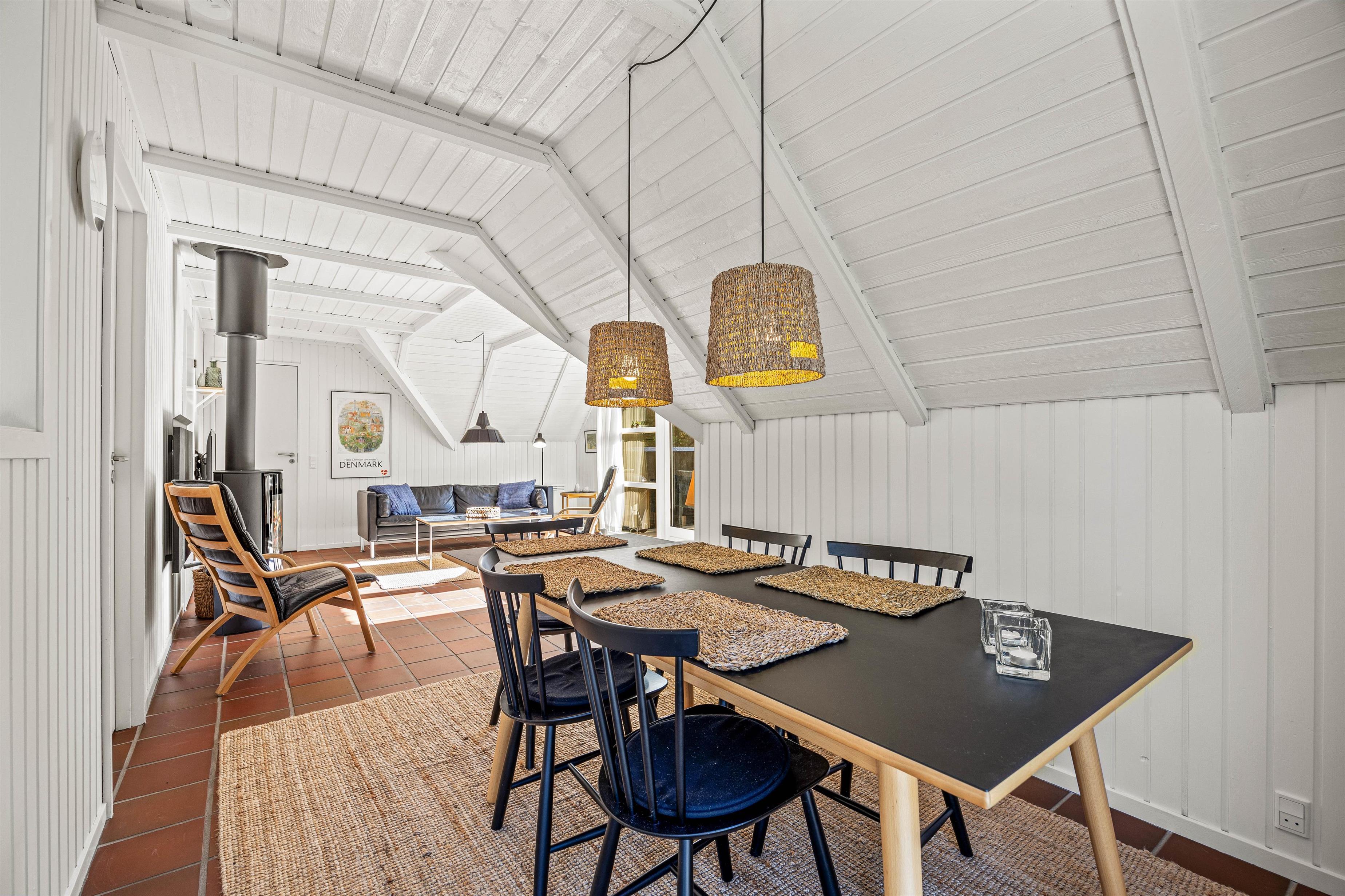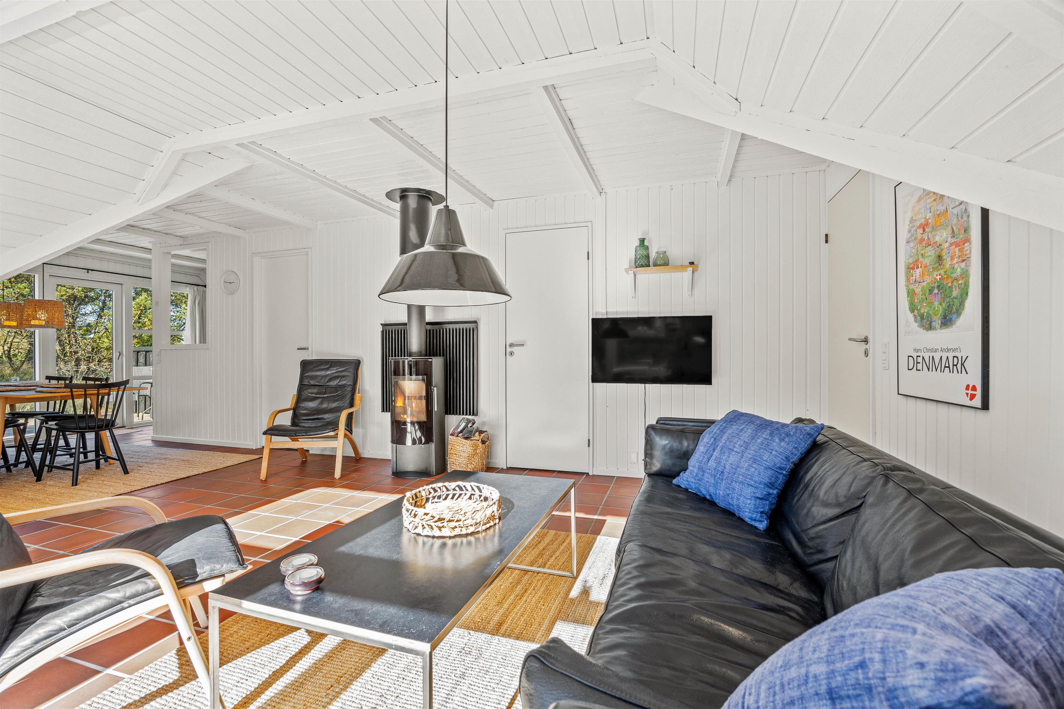 Brændeovnen står centralt placeret i huset og spreder varme og hygge på kolde dage i god kombination med den energibesparende luft-til-luft-varmepumpe, som sørger for et godt indeklima året rundt. Læs en god bog i en af stolene og kom helt ned i gear på Vestermarken 2B eller få gode samtaler henover sofabordet, måske med planlægning af de næste dages ferieaktiviteter.