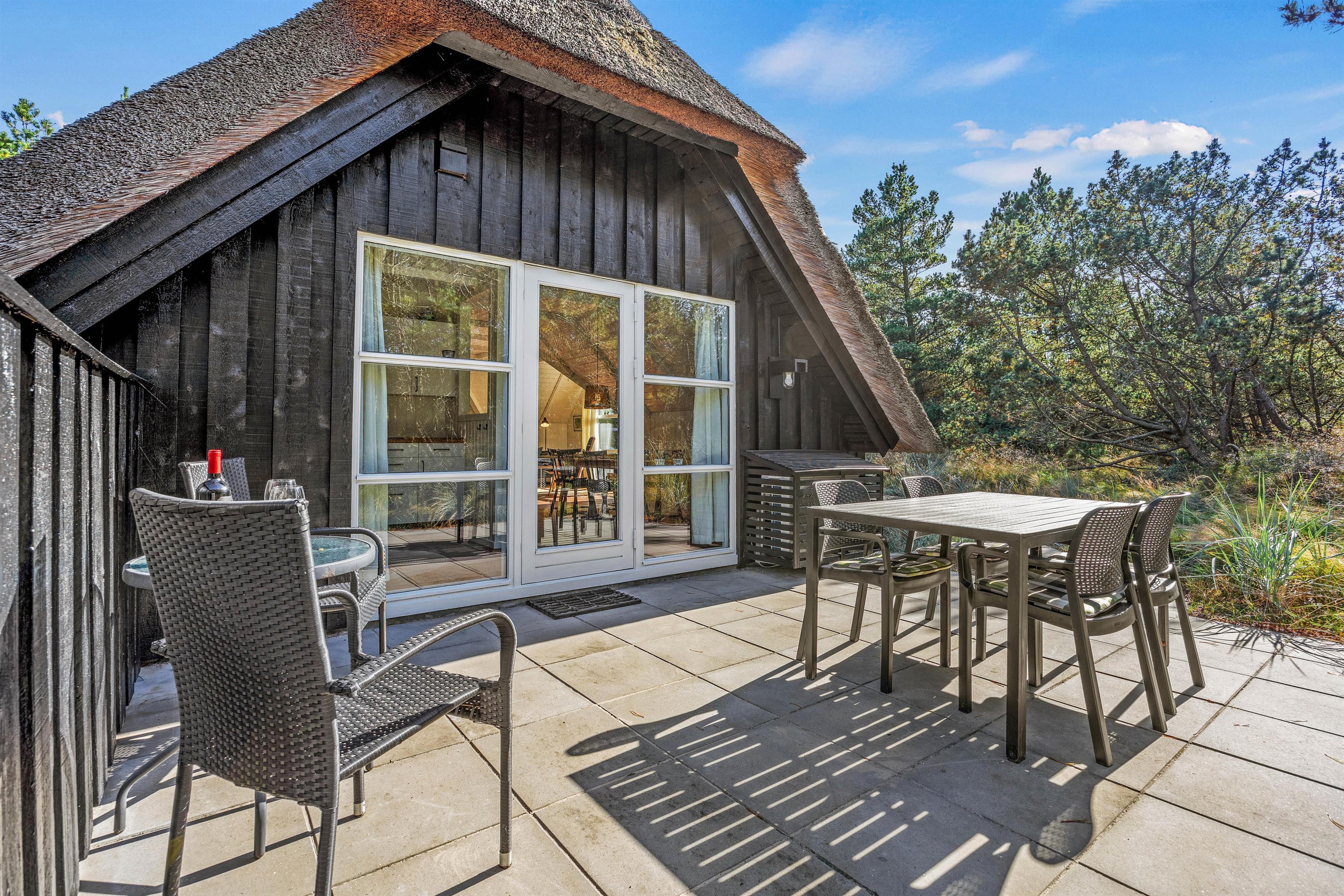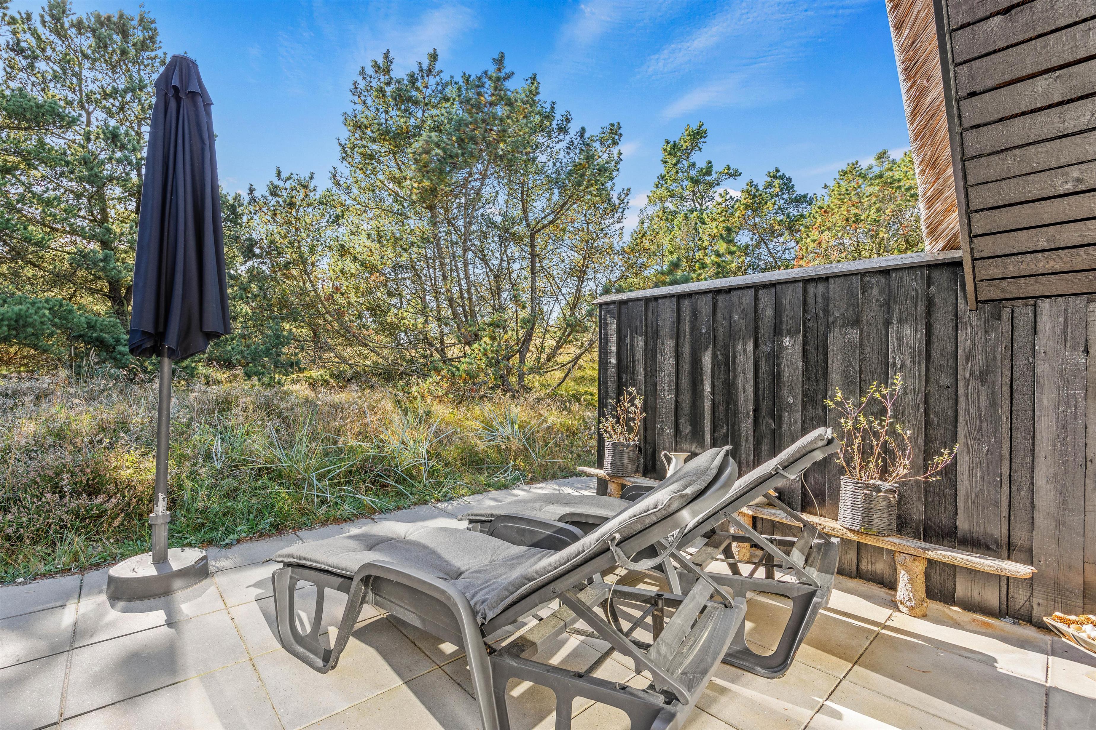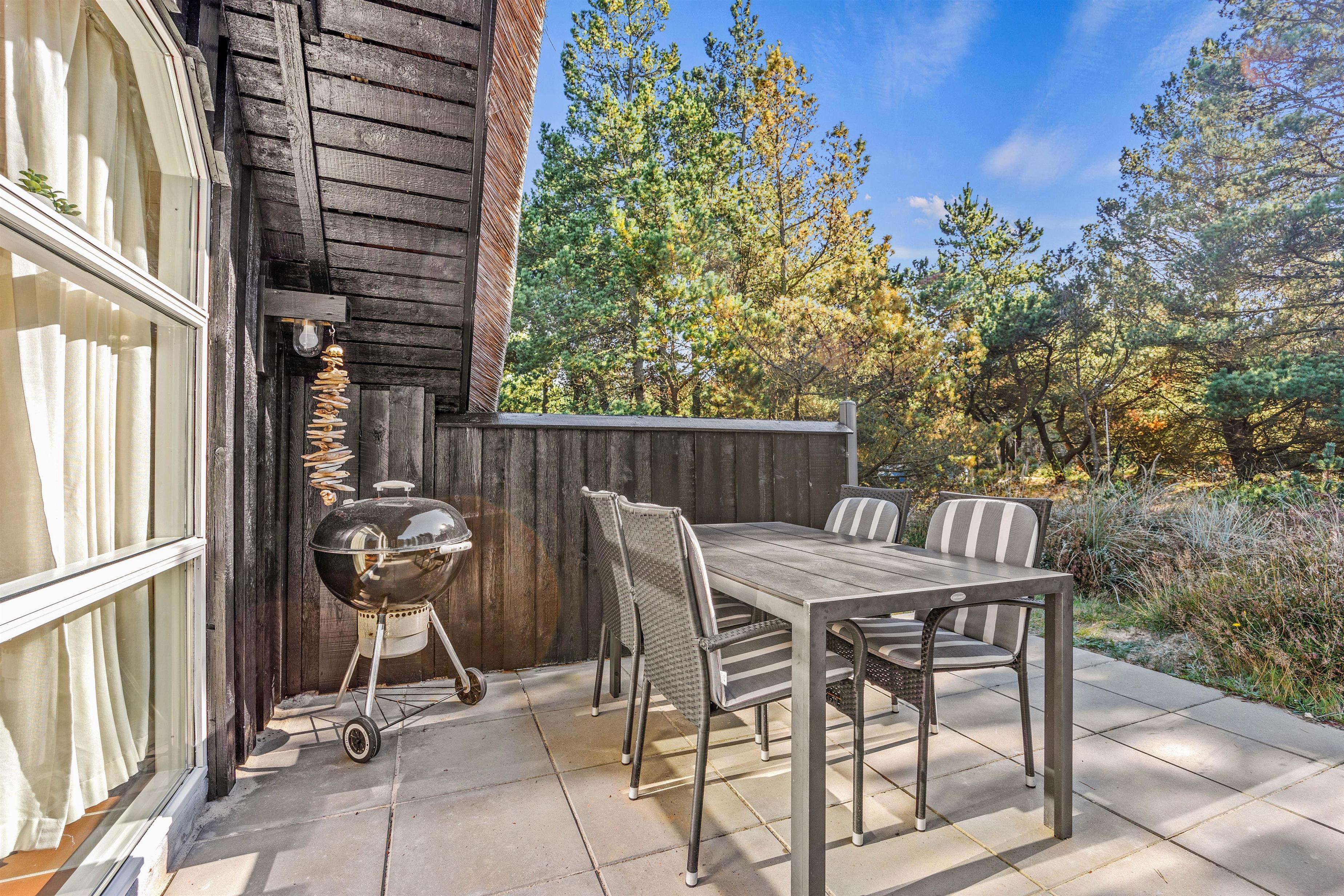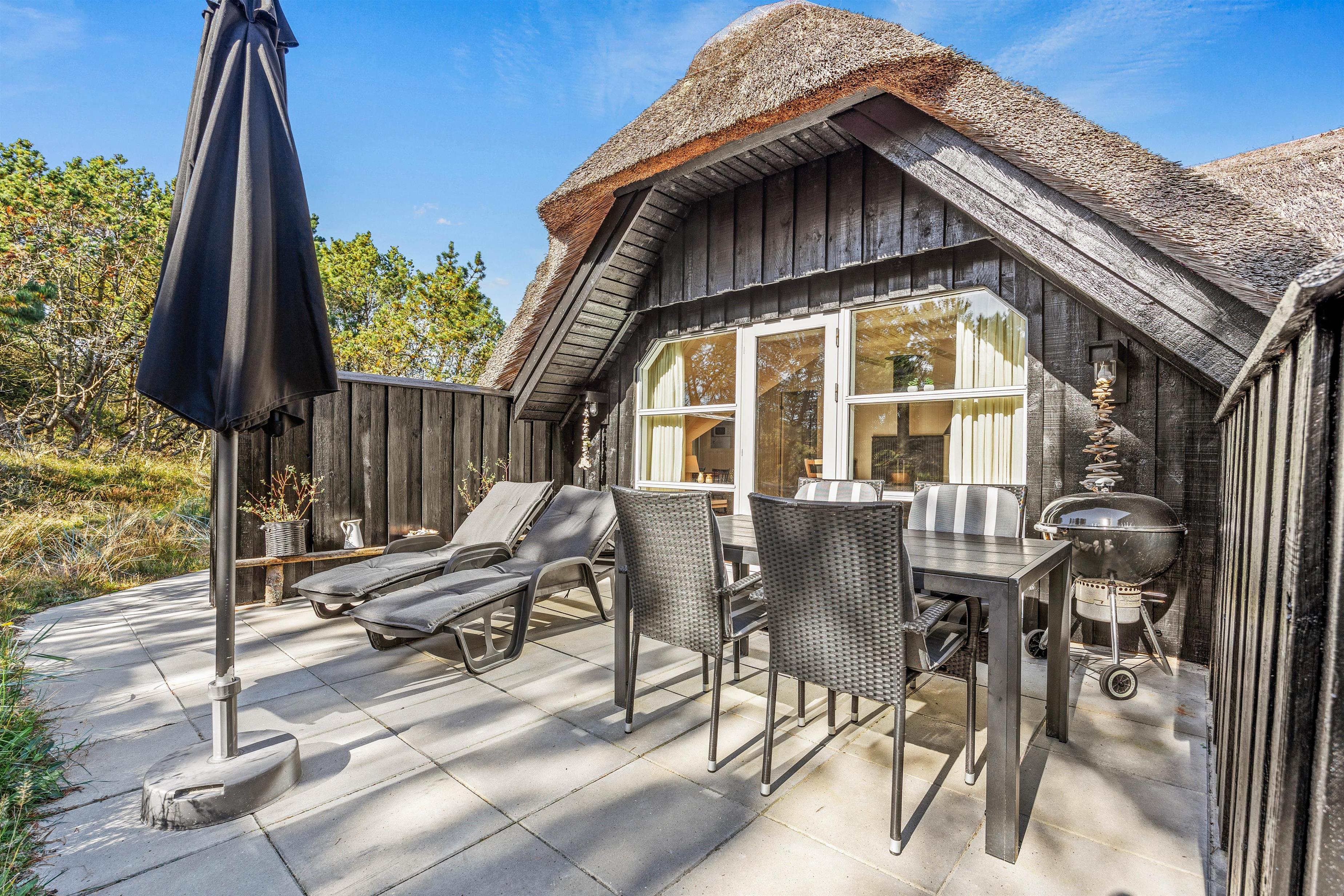 Sommerhuset har desuden en åben samt en afskærmet terrasse, så I selv kan vælge, om I ønsker at nyde solens stråler eller foretrækker skygge. Tilbered lækre måltider på grillen og nyd dem udenfor, omgivet af den fascinerende natur på den store grund. Diget på grunden giver læ for vinden på terrassen, så her kan I sidde, også selvom der blæser en frisk, vestjysk vind.