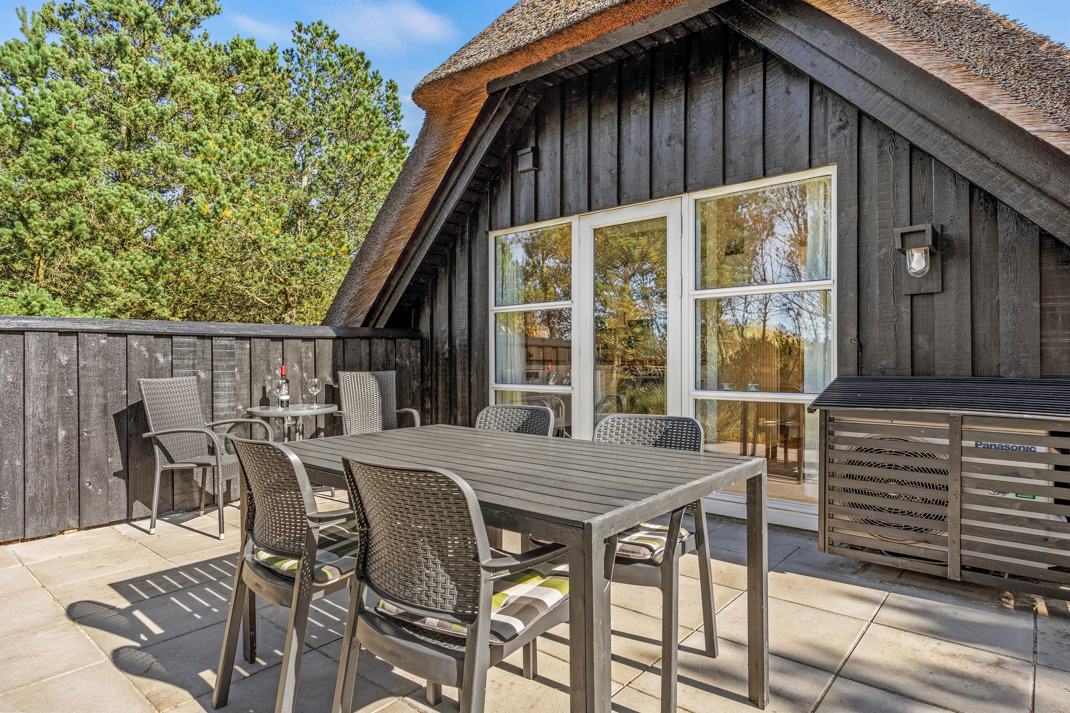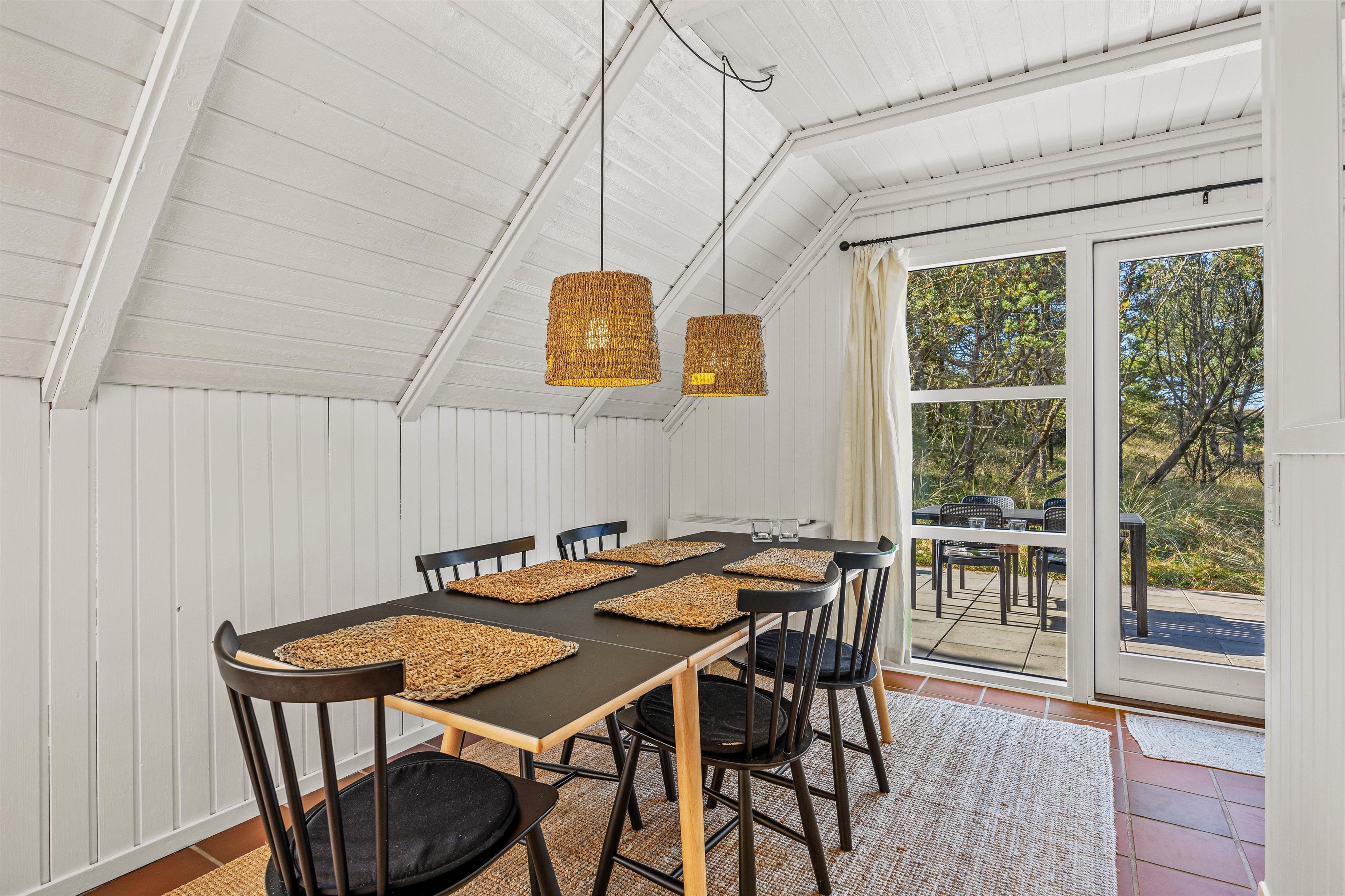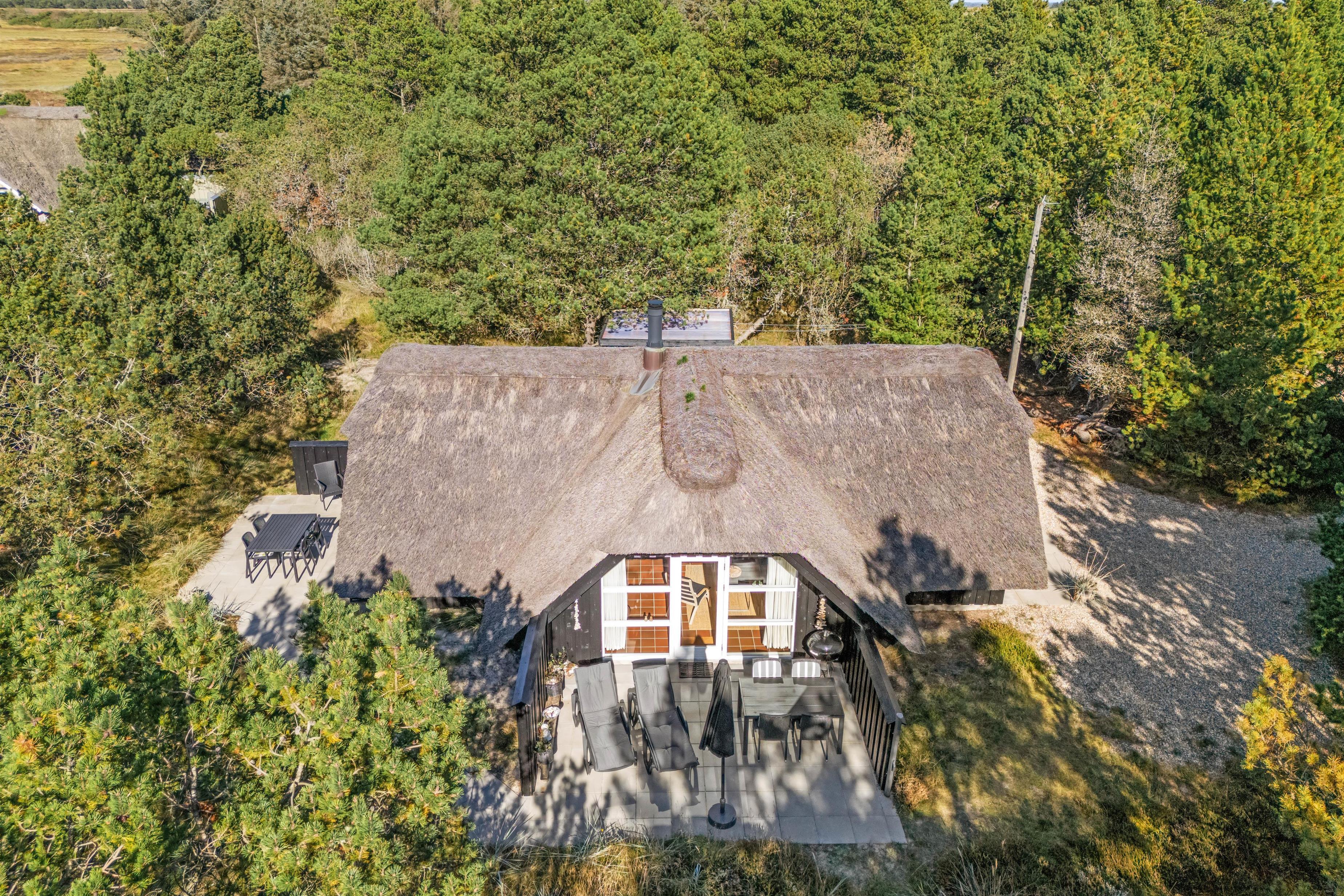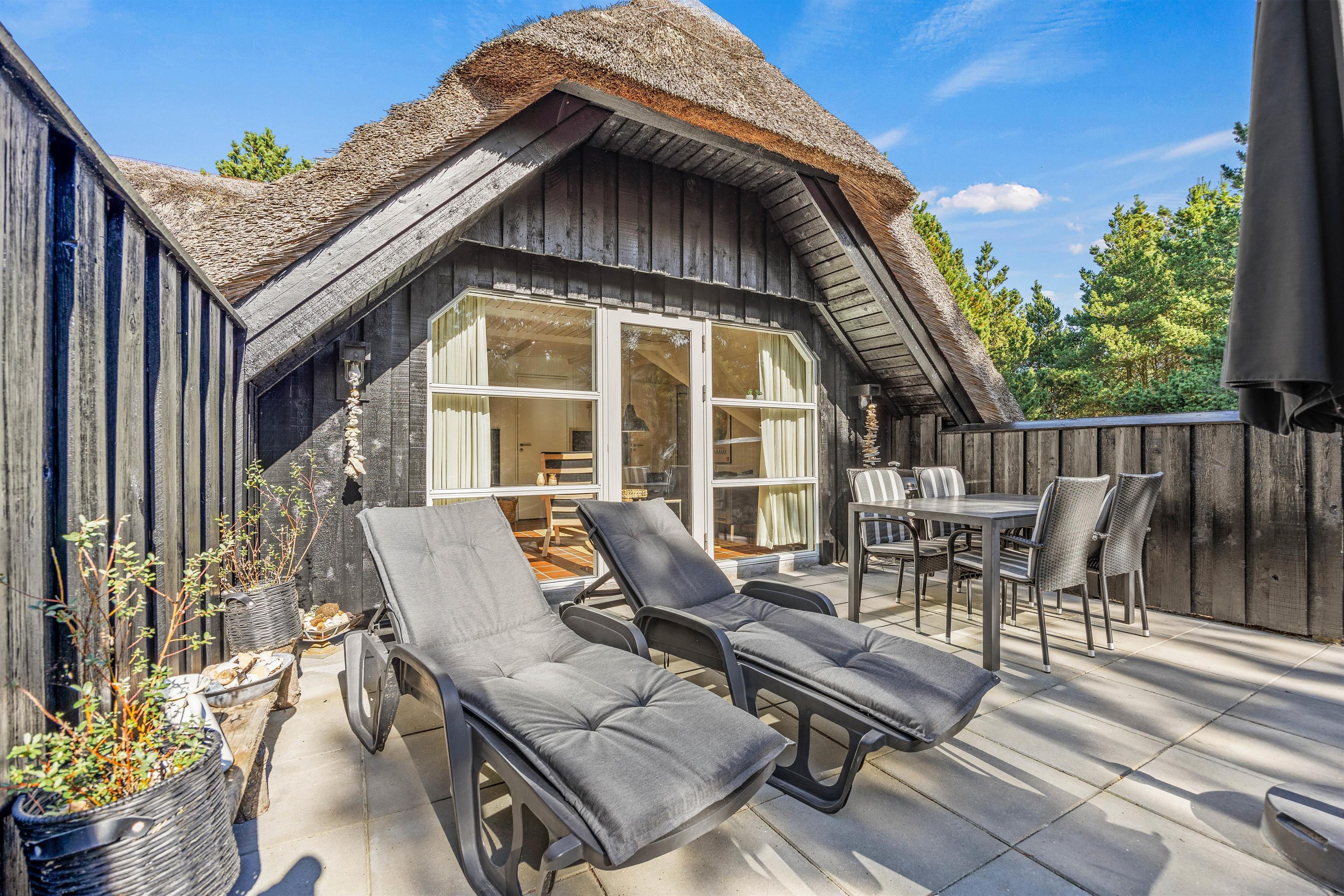 Sommerhuset har desuden en åben samt en afskærmet terrasse, så I selv kan vælge, om I ønsker at nyde solens stråler eller foretrækker skygge. Tilbered lækre måltider på grillen og nyd dem udenfor, omgivet af den fascinerende natur på den store grund. Diget på grunden giver læ for vinden på terrassen, så her kan I sidde, også selvom der blæser en frisk, vestjysk vind.