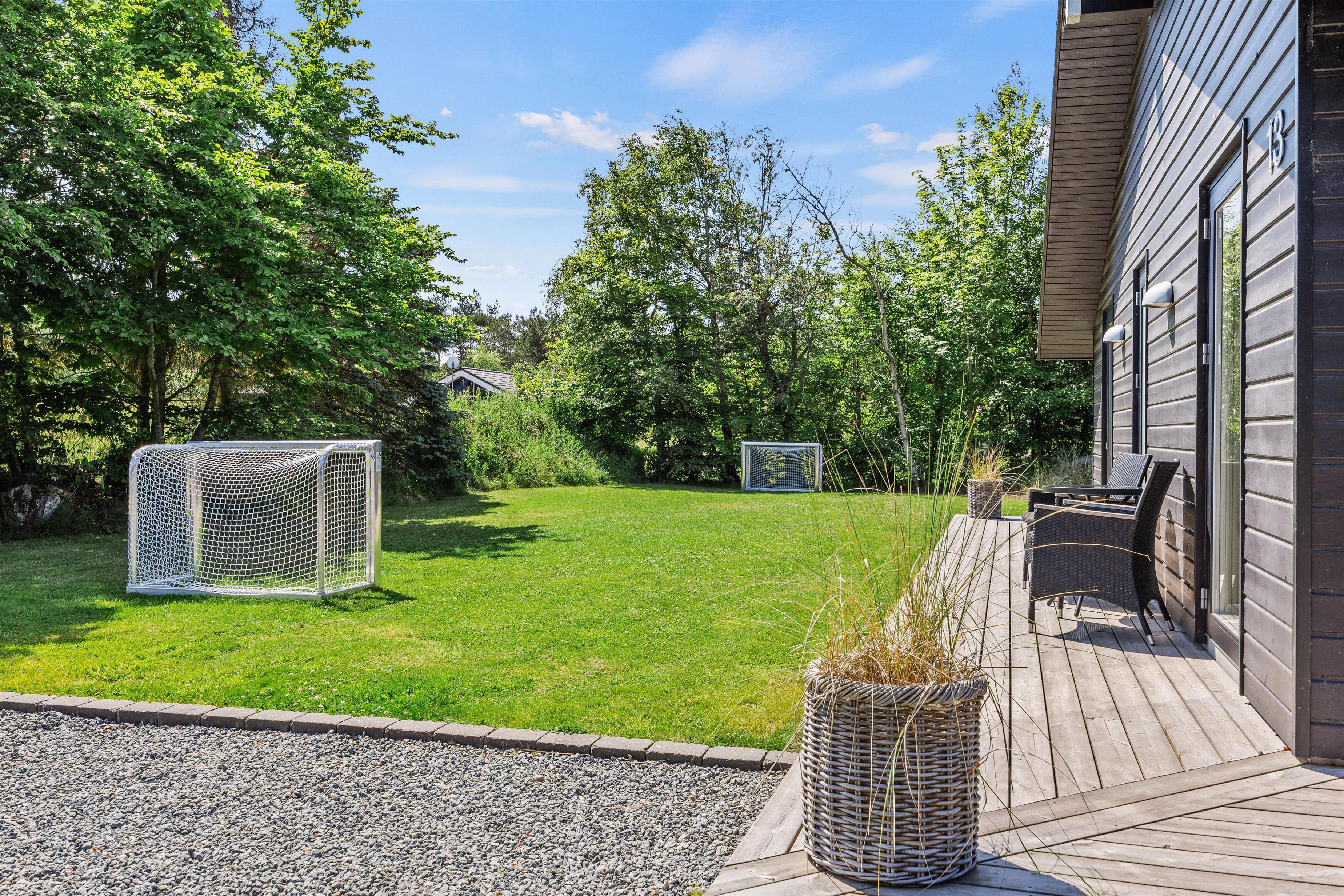 Ikke kun voksne vil få glæde af dette feriehus i Blåvand; også de yngste vil finde masser af muligheder for sjov, for den 3023 m² store grund byder på rigelig plads til leg. Med gyngestativ, sandkasse og trampolin er der masser at finde på for børnene. På de forskellige terrasser, herunder en åben, en afskærmet og en overdækket, kan I nyde solen eller finde skyggefulde pletter, når det er varmest.