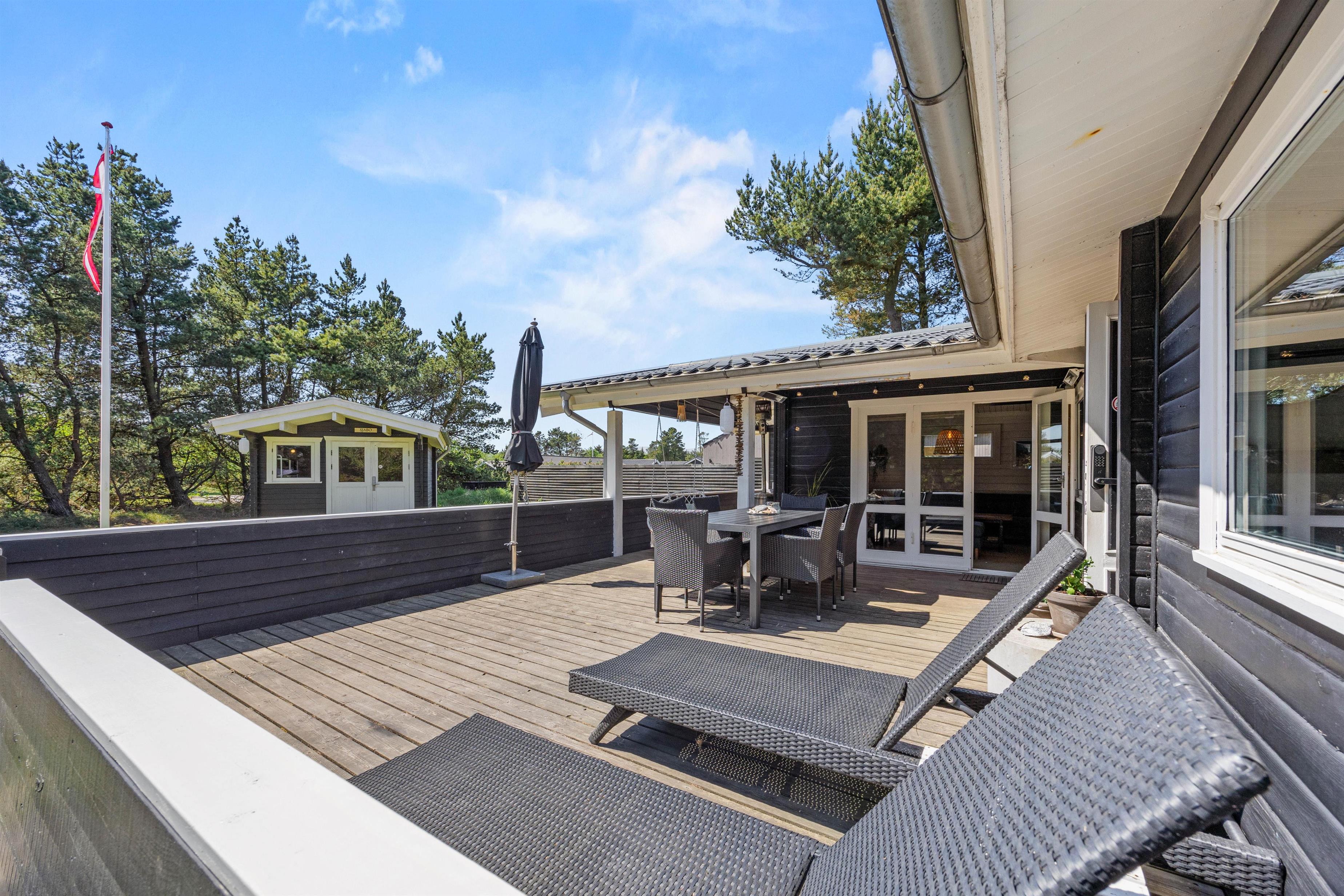 Jeres sommerhus tilbyder ikke kun gode, indre rammer, men også et 1500 m² stort naturgrund, som indbyder til en bred vifte af aktiviteter. Havemøblerne på terrasserne rundt om sommerhuset lokker til afslapning og refleksion, hvorefter I kan afslutte dagen med en hyggelig grillaften på den lukkede terrasse, hvor gasgrillen venter.