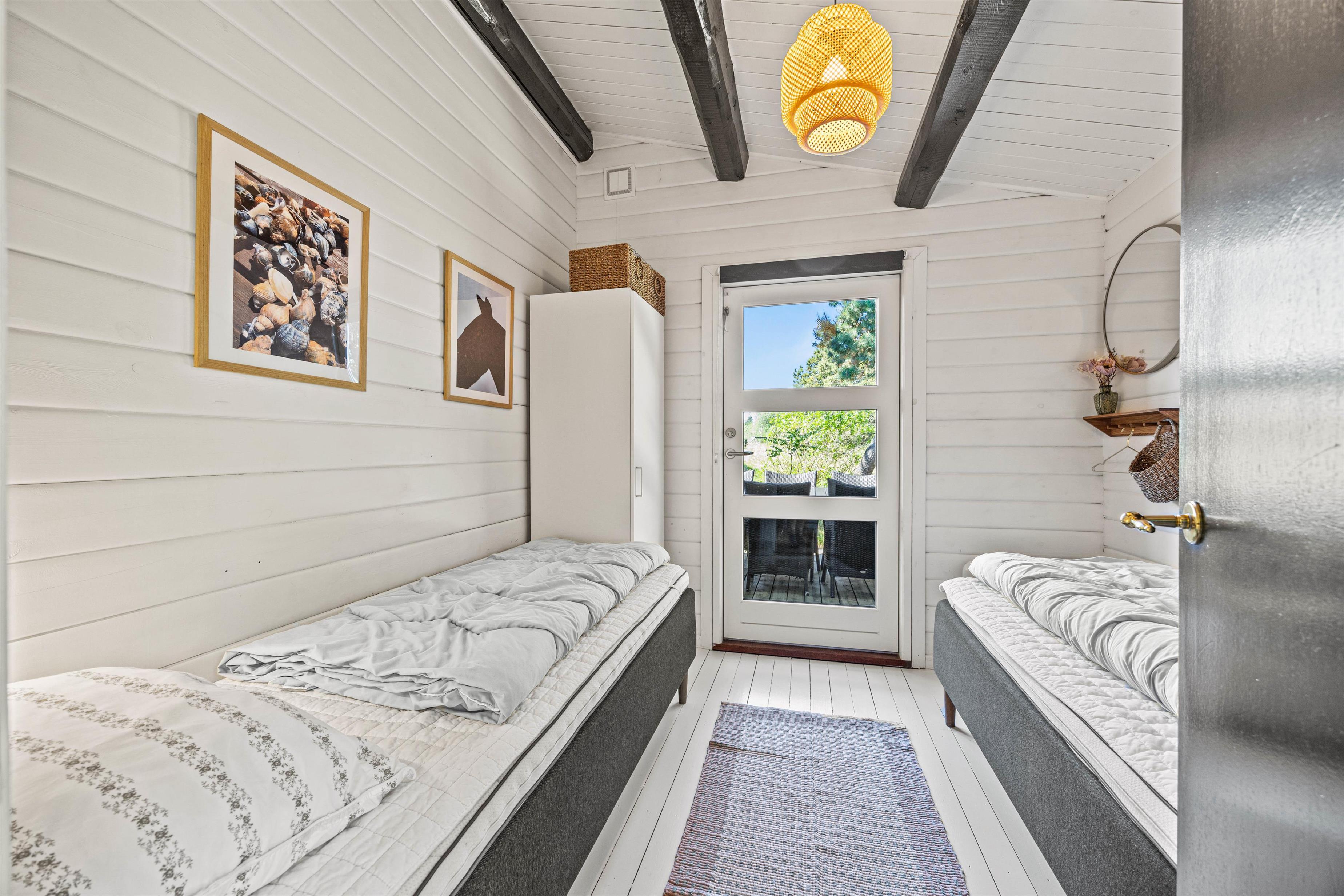 Sommerhuset har tre hyggeligt og enkelt indrettede soveværelser med en dobbeltseng samt fire enkeltsenge, hvor I kan finde ro og hvile efter spændende og aktive feriedage. Derudover finder I 2 ekstra sovepladser i det tilhørende anneks.