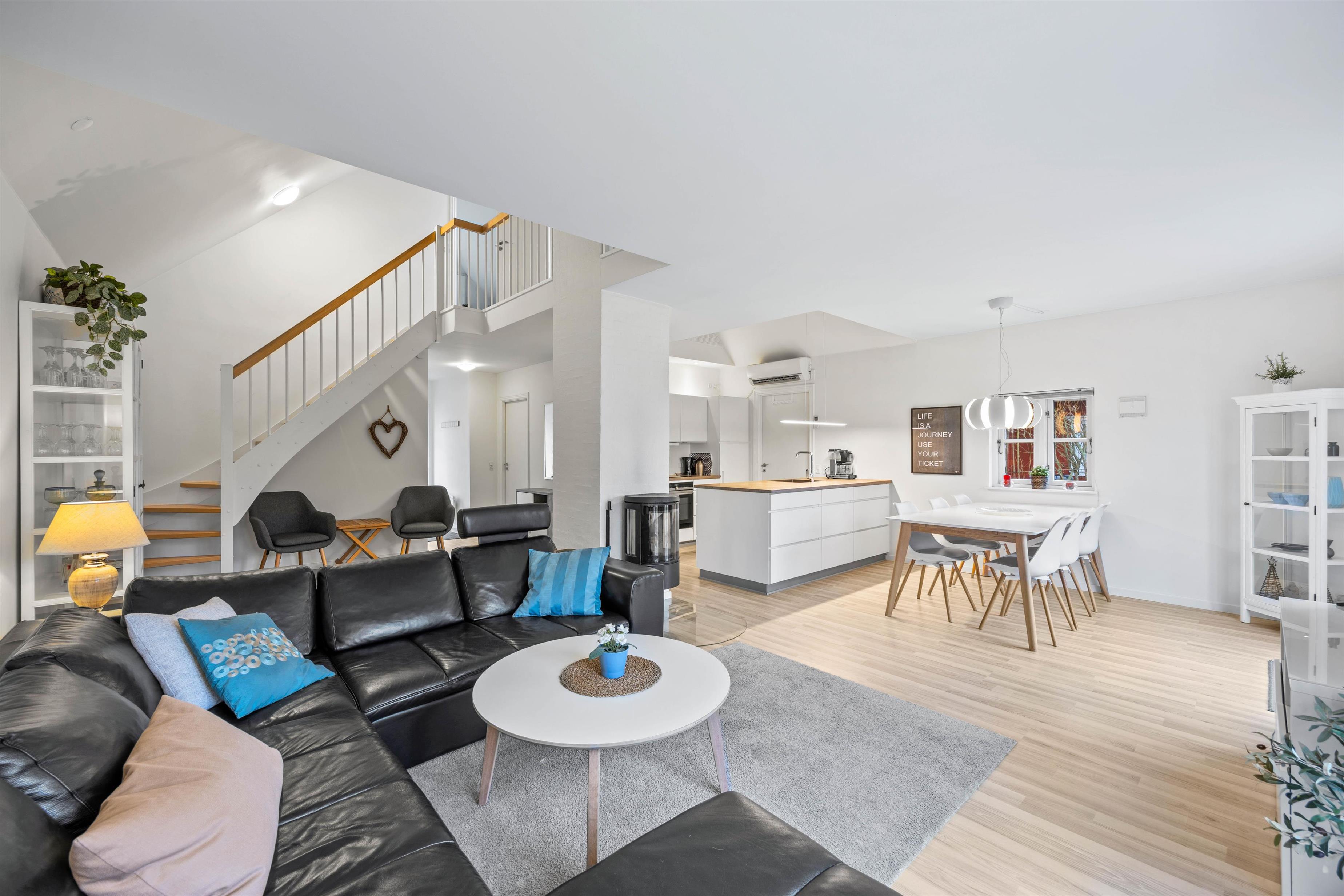 Fra stuen er der direkte udgang til den åbne terrasse, hvor I kan slikke sol, spise dejlig mad fra grillen over en kold øl eller et glas frisk hvidvin og generelt nyde livet i havemøblerne.