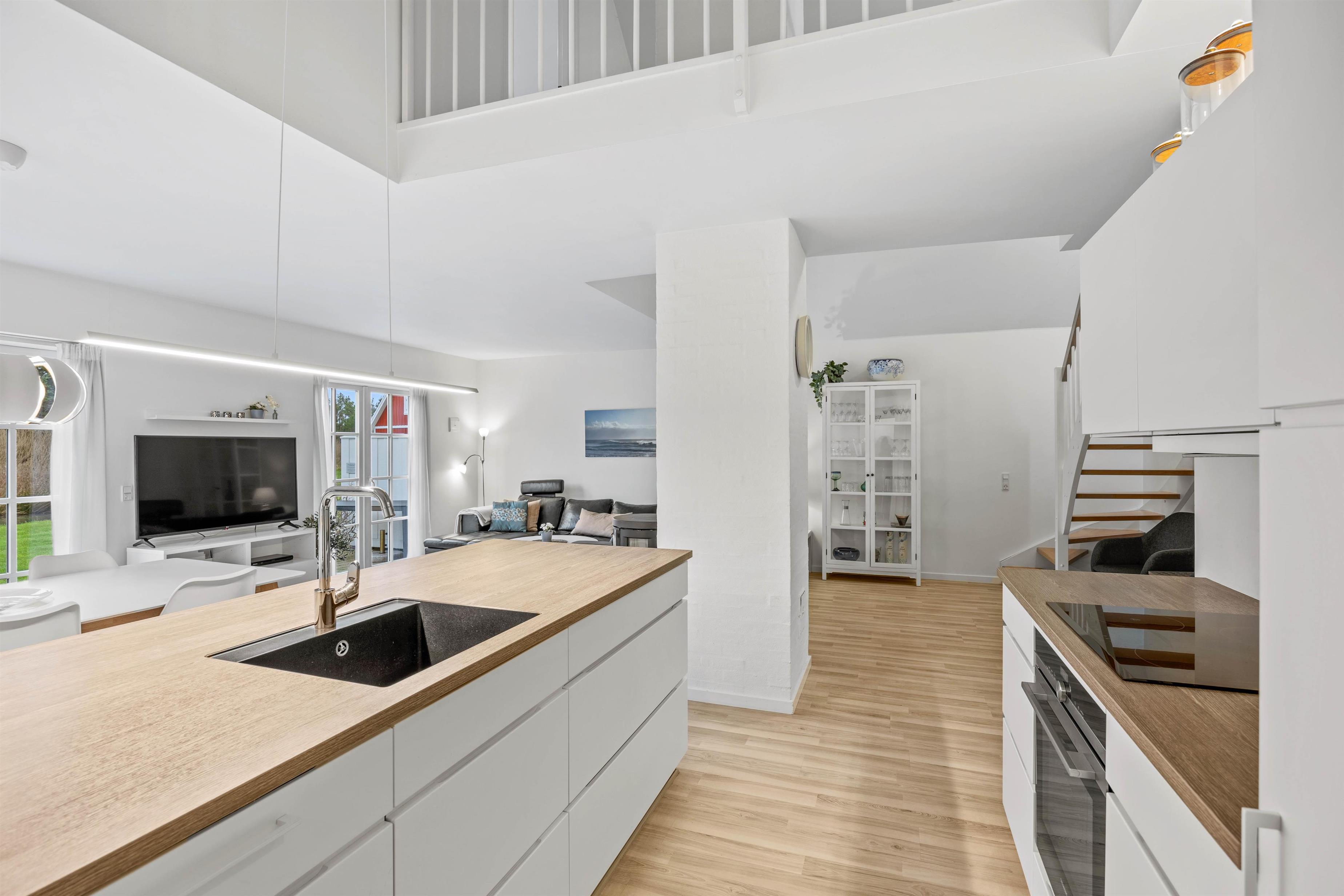 Efter indgang i huset åbner det sig op for jer i det lyse, delvist højloftede rum med køkken/alrum og stue. Køkkenet er udstyret med mikroovn og opvaskemaskine, så I kan få lavet dejlige feriemåltider og derefter slippe for at skulle tænke på at tage opvasken. Skulle I få brug for yderligere fryserkapacitet, råder huset desuden over en separat fryser på 90 liter.