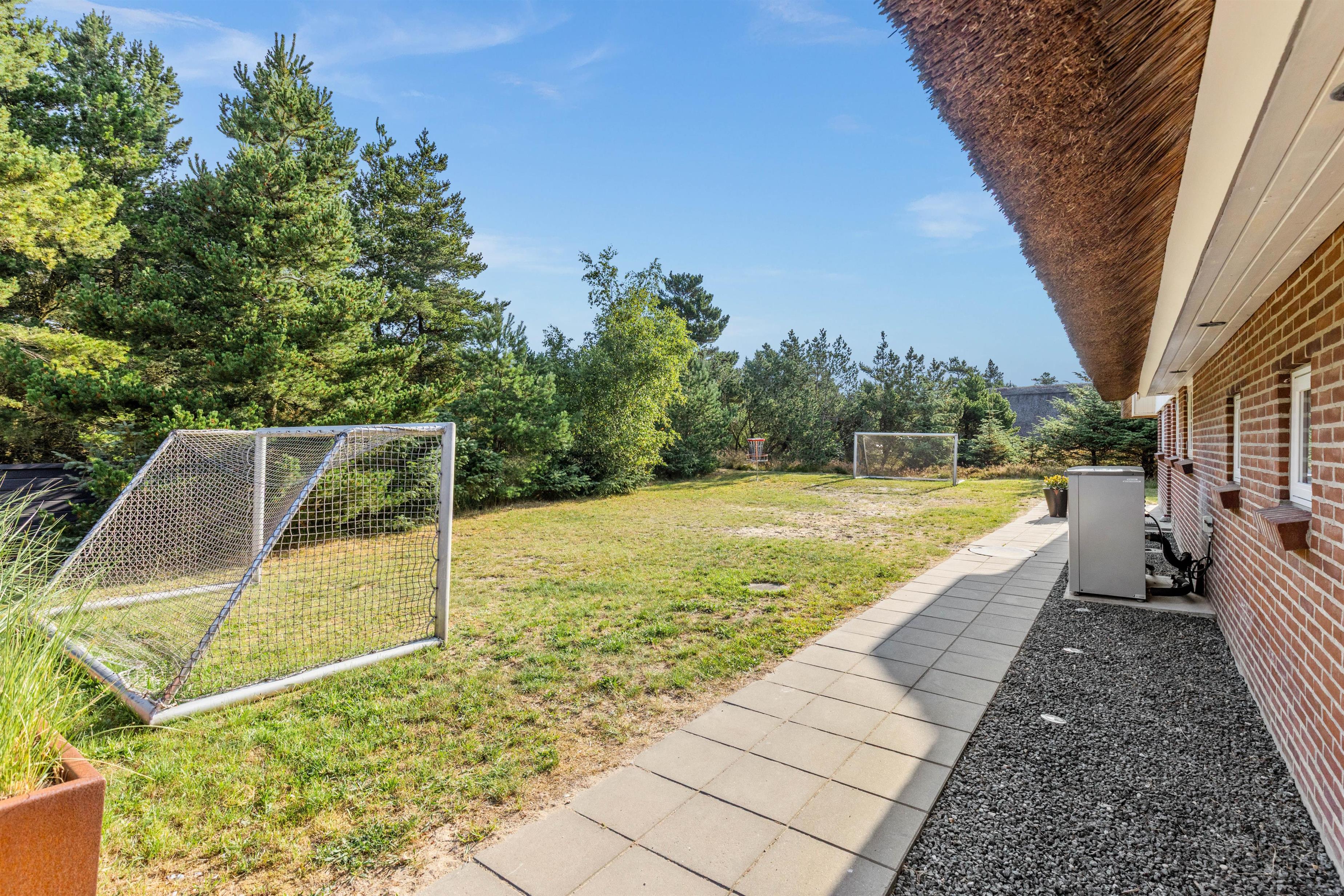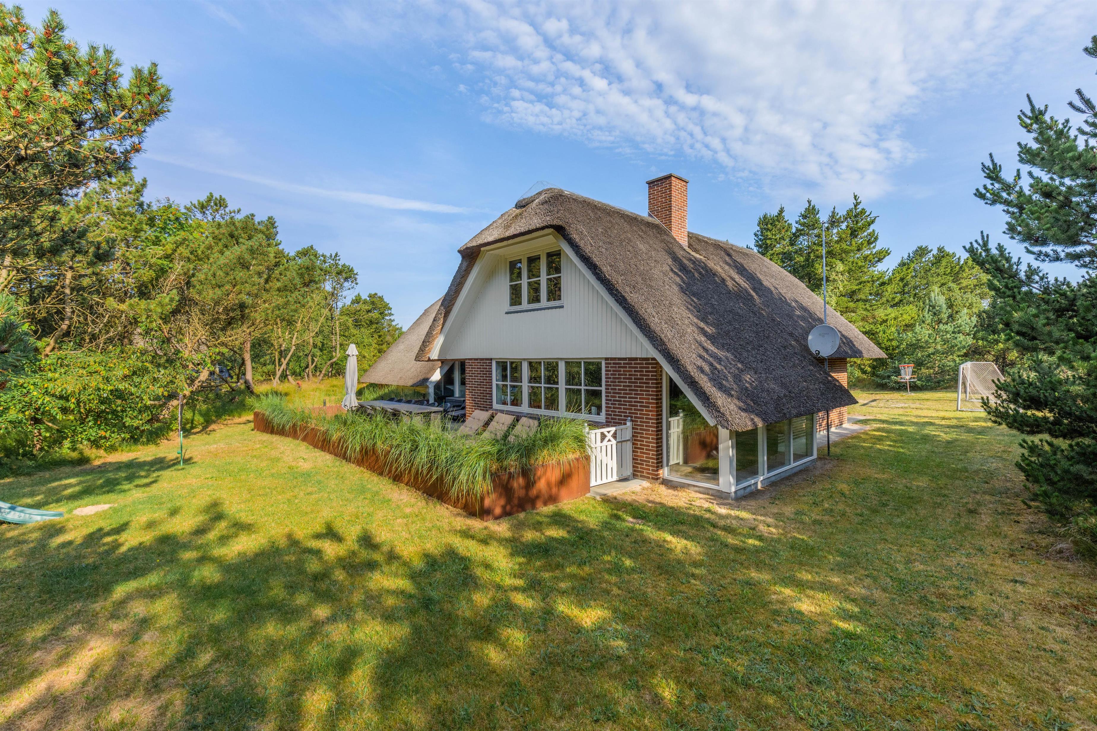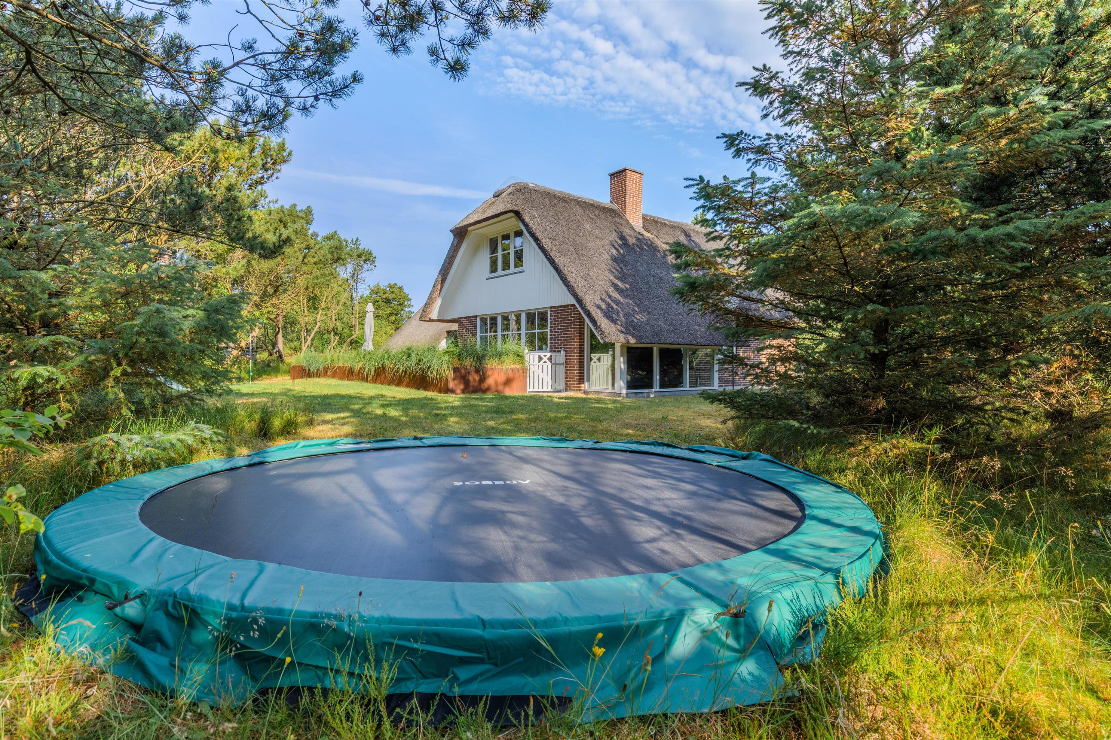 Den smukke naturgrund byder på mange aktiviteter for store og små. På den afskærmede terrasse står havemøbler og solvogne klar, så I her kan nyde de solrige sommerdage omgivet af den unikke natur på den danske vestkyst, alt imens familiens mindste og jeres hund kan lege med bold på plænen, hoppe på trampolinen eller hygge sig på legetårnet med rutsjebane og gynge.