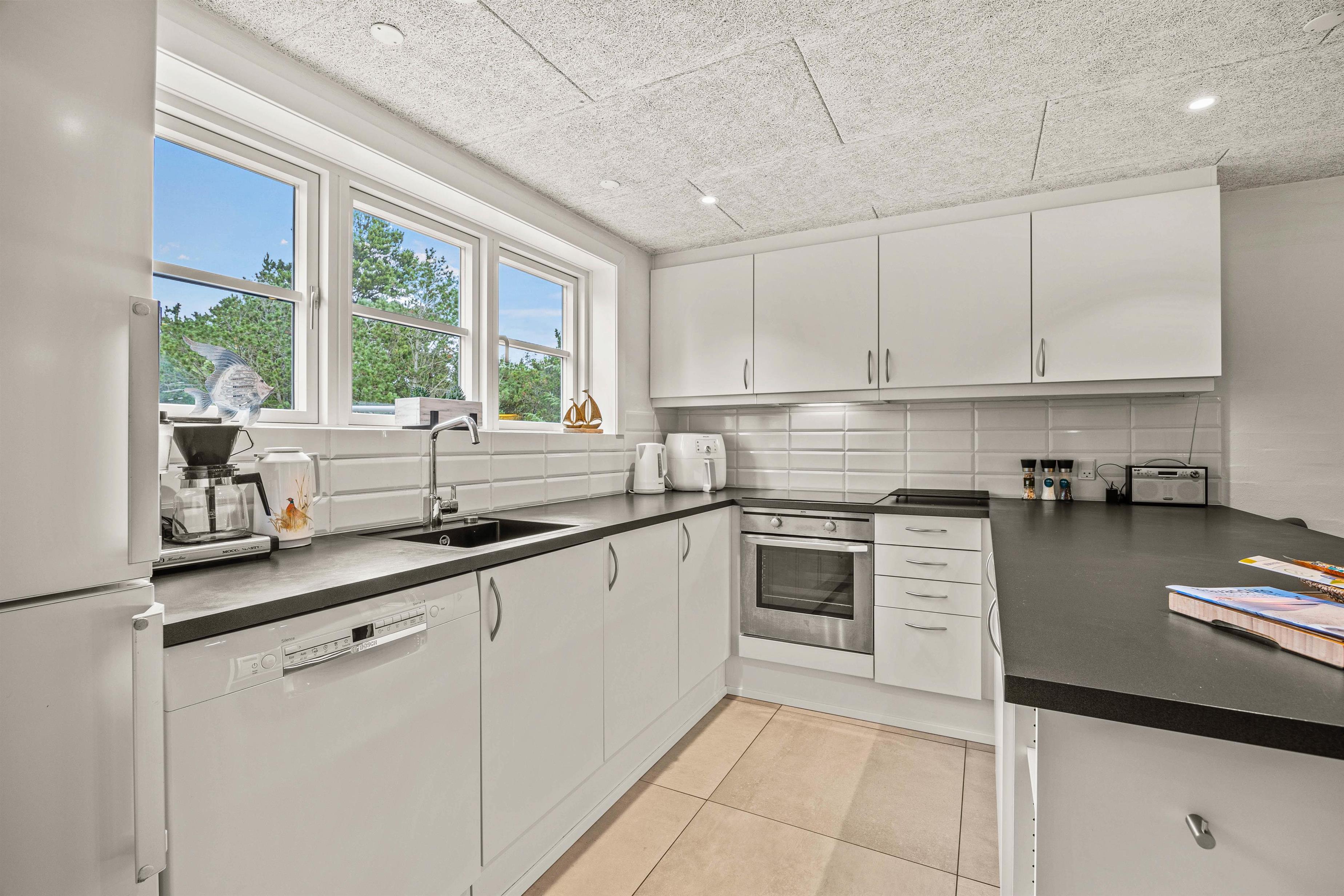 Sommerhuset har i 2020 gennemgået en gennemgribende renovering og fremstår nu lys og åben med mange fede designfeatures. Det lyse køkkenalrum, hvor det veludstyrede køkken og spiseplads ligger i åben forbindelse til opholdsstuen, er et sandt samlingspunkt for hele familien. I stuen venter jer komfortable møbler – perfekt til en hyggelig aften med en god film. Her kan I læne jer tilbage og slappe af, og nyde varmen fra brændeovnen, alt imens skyggerne fra flammerne danser henover væggen.