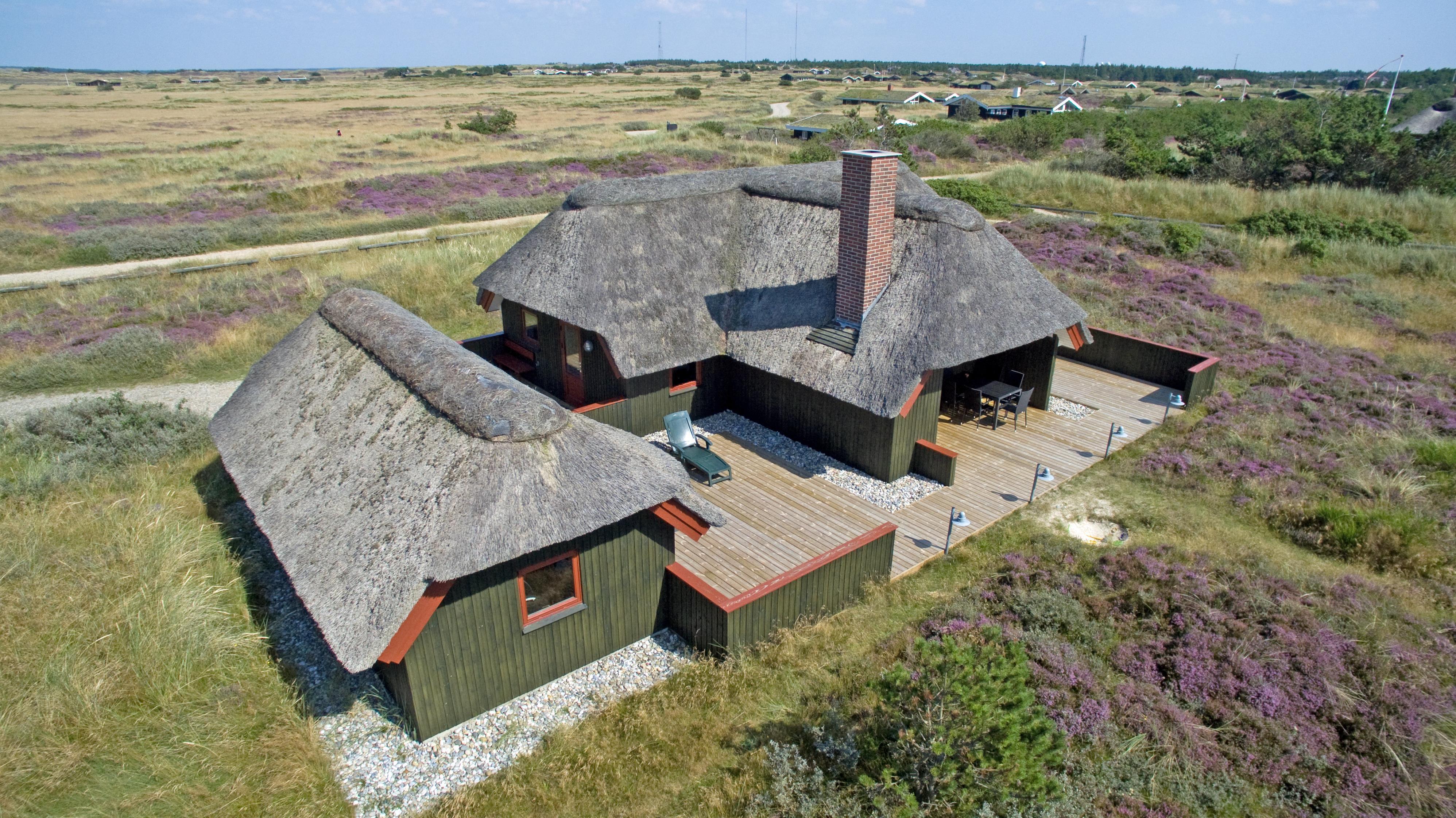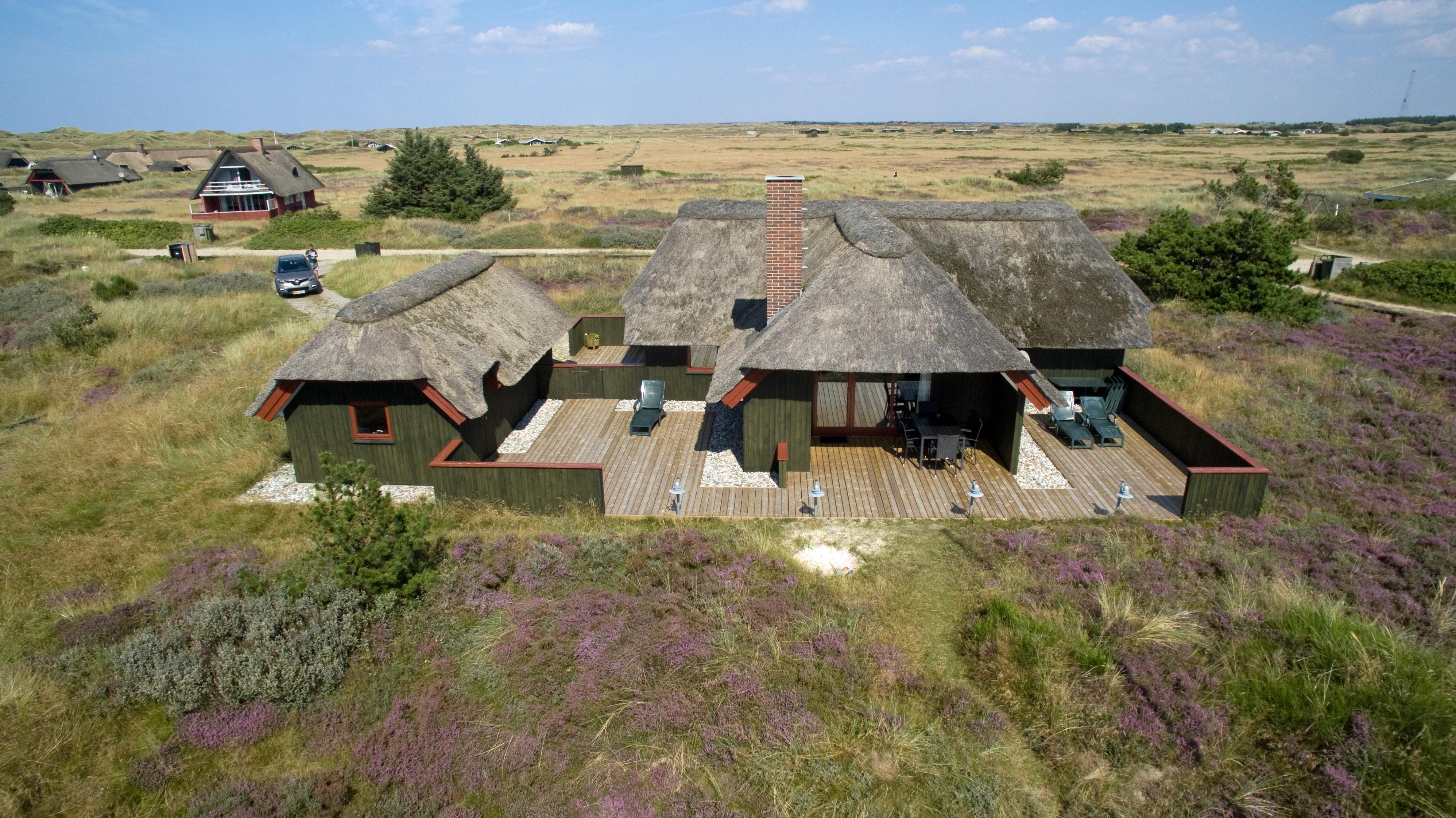 Hyggeligt stråtækt sommerhus til 6 personer, beliggende i klitterne, ca. 250 meter fra stranden. Stue med brændeovn, fjernsyn og parabol (DR programmer). Køkken med opvaskemaskine, mikroovn og køle-/frysekombination. Der er 3 sove rum: DS + 3/4 seng + 3/4 seng. Badeværelse med bruser/wc. Derudover har huset sauna, vaskemaskine og tørretumbler. Trådløs internet. Varmepumpe. Adgang til Oksbøl Badeland 2025. Stor delvis overdækket terrasse. Gynge og sandkasse. Husdyr er ikke tilladt! Husdyr er ikke tilladt! Byggeår 1986.