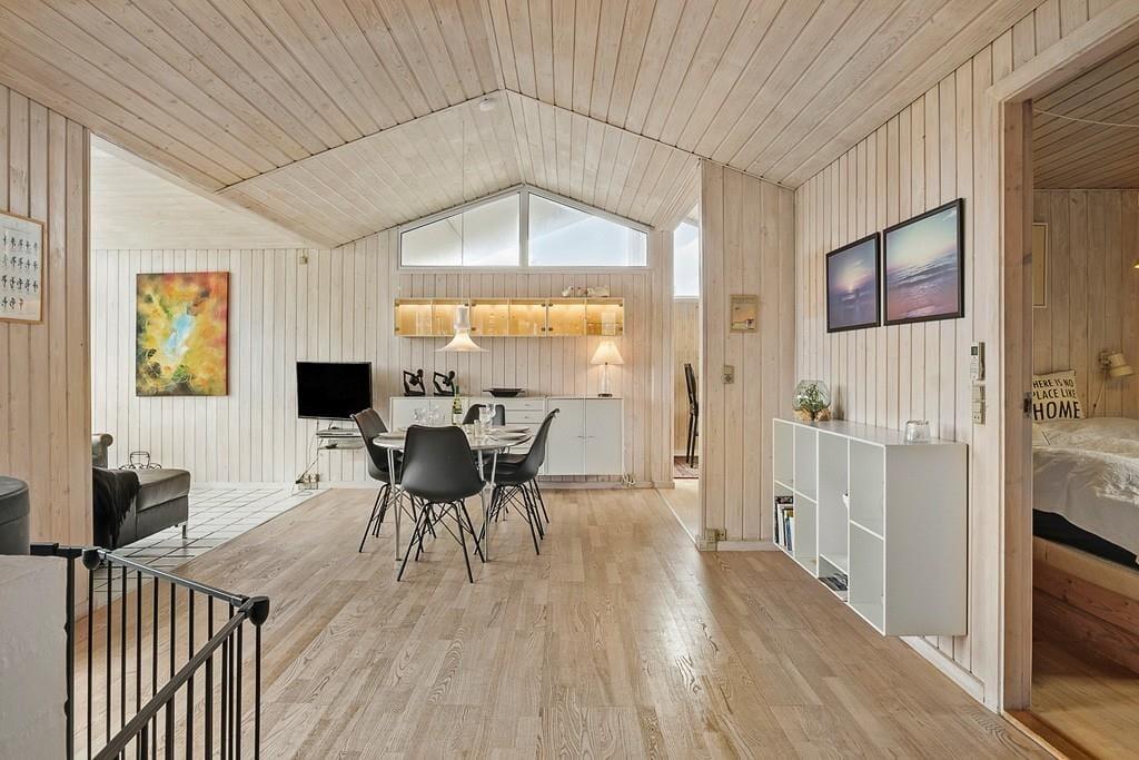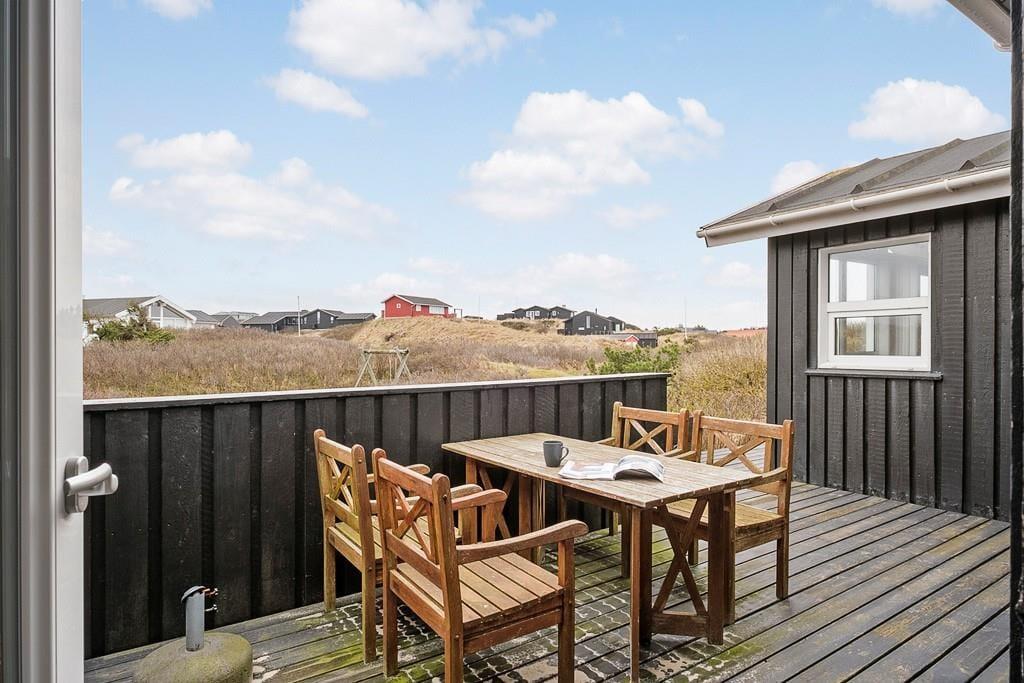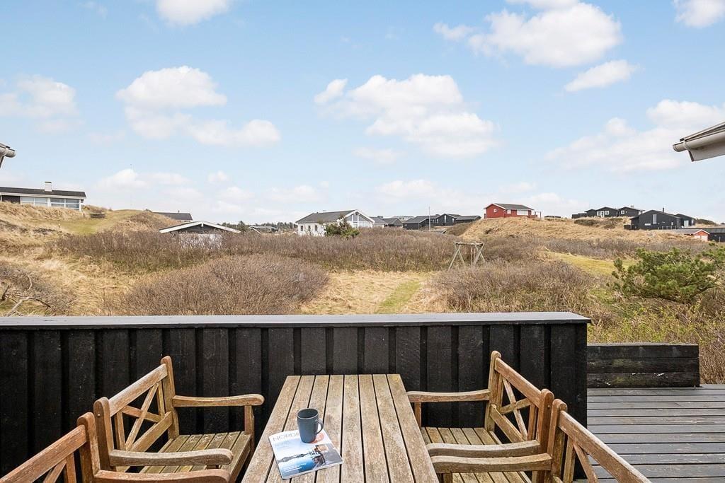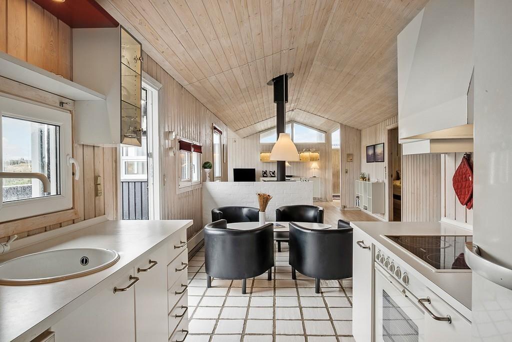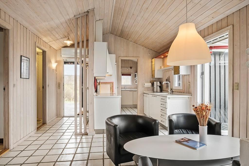 Sommerhus i Blokhus Strand og By, Nordjylland, med plads til 4 voksne, 6 børn og 1 husdyr. Der er en hyggelig indretning med bl.a. brændeovn, og du finder desuden vaskemaskine, opvaskemaskine og tørretumbler i boligen.
