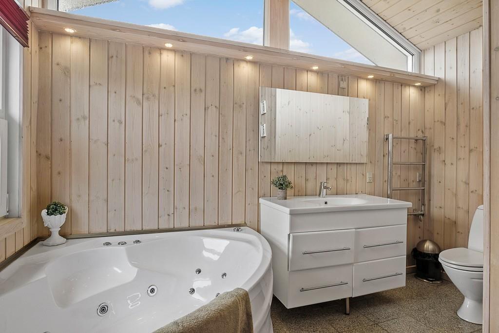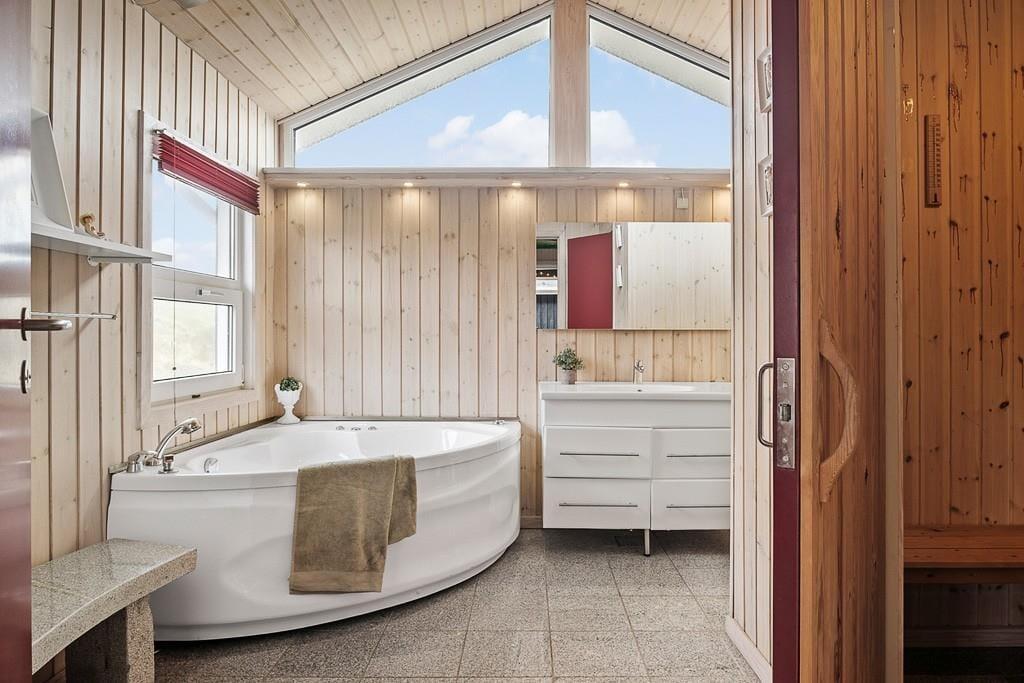 Hyggeligt sommerhus i Blokhus med sauna, spabad, brændeovn og tæt på strand og indkøb.