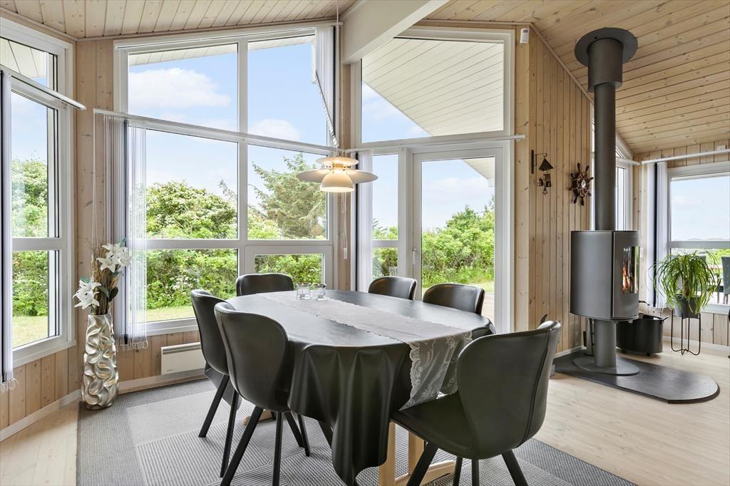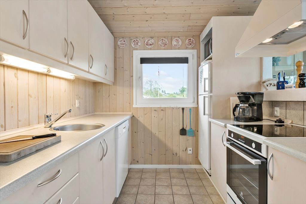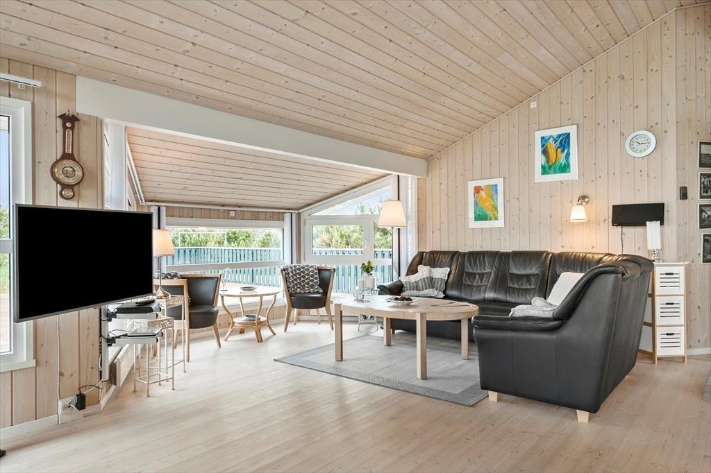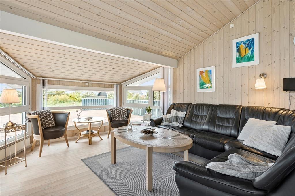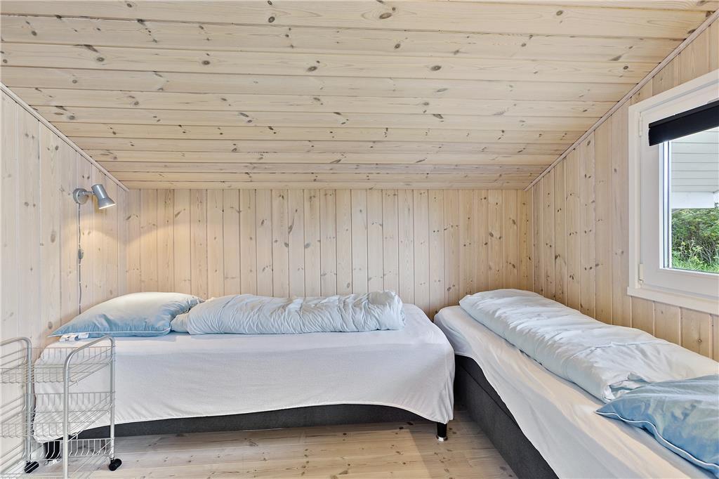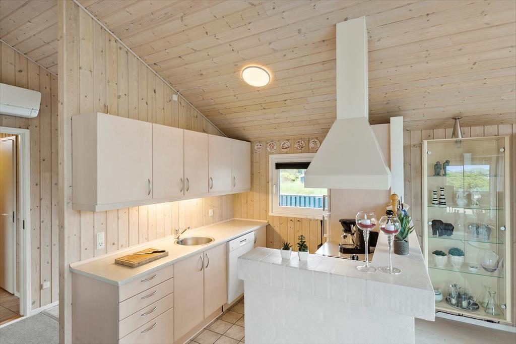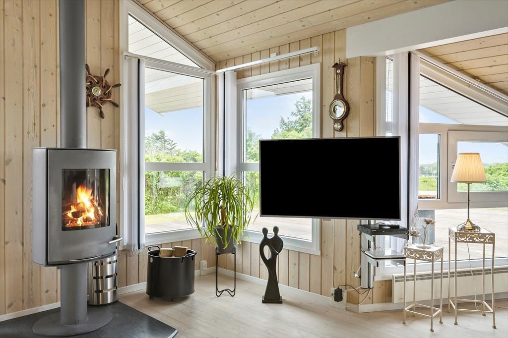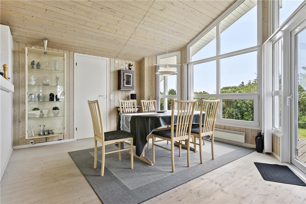 Dette sommerhus er det perfekte valg for en afslappende og romantisk parferie. Her er en hyggelig og varm stemning, mange smukke detaljer i indretningen, og med ild i den smukke brændeovn er der lagt op til mange gode timer i hinandens selskab. Det åbne opholdsrum består af køkken, spisestue og stue. Derudover råder huset over tre soveværelser og et badeværelse med spabad, sauna, bruser og toilet. Det andet badeværelse er med toilet og bruser. I stuen er et godt lys fra de store vinduer og gode sofaer og stole til en læsestund. De helt ideelle rammer for en ferie hvor samvær, hygge og god tid er i højsædet.