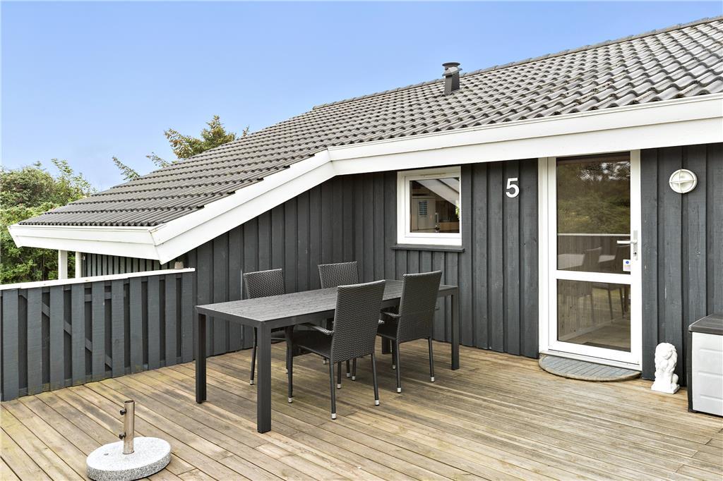 Sommerhuset ligger på en dejlig grund med græsplæne. Der er terrasser hele vejen rundt om huset, så man altid kan finde en god plads i solen. En del af terrassen er afskærmet med hegn ud til vejen; her er skønt at sidde om aftenen med et glas vin eller en kop kaffe.