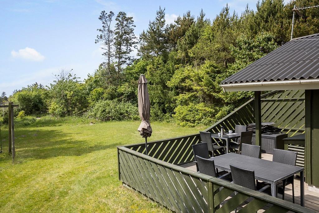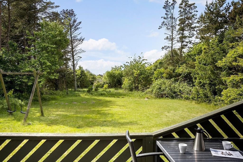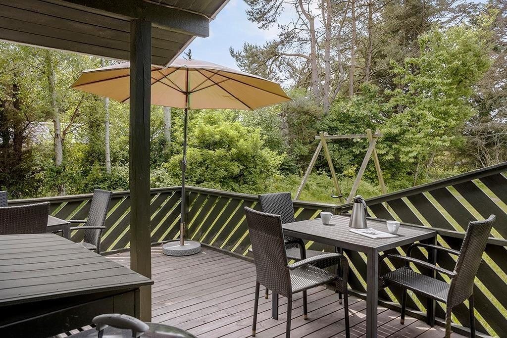 Når solen skinner, er der ingen grund til at blive inde. Sommerhusets store terrasse er det perfekte sted at tilbringe tid sammen, uanset om du vil tage en pause med en kold drink, spille spil med familien eller nyde et lækkert måltid på grillen. Den dejlige grund omkring huset giver også masser af plads til leg og udendørs aktiviteter, og du kan frit nyde den friske luft i en af de mange hyggekroge i haven.