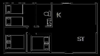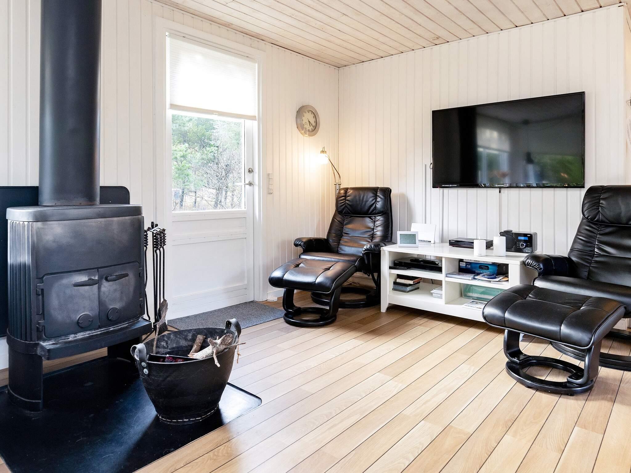 1 Opholdsstue: Brændeovn, radio, dvd-afspiller, tv, parabol, høj stol