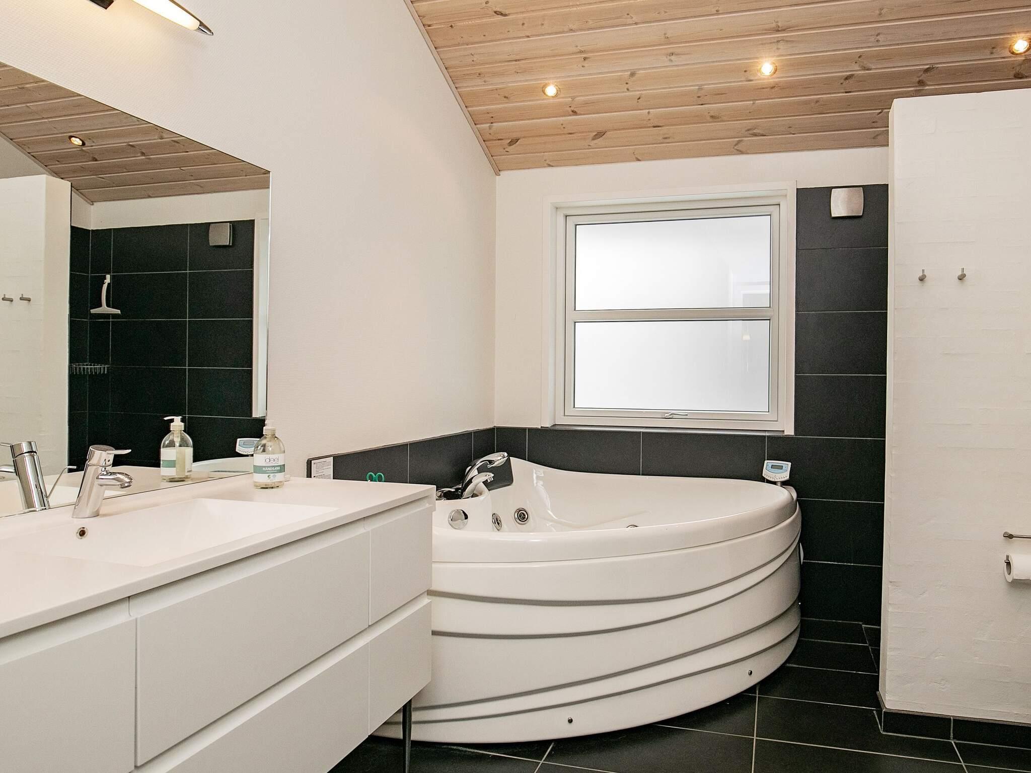 Skønt sommerhus ved Blokhus. Overalt udstråler sommerhuset god smag. Møblerne passer godt sammen, og rummene er lyse og med masser af luft. Køkken og stue ligger i åben forbindelse med hinanden, hvilket gør, at du ikke går glip af noget, selvom du står og tilbereder aftensmaden. Fra den hyggelige stue er der udgang til en dejlig terrasse, der går rundt om sommerhuset. Brændeovnen er placeret midt i rummet, så den kan nydes fra flere vinkler. Alle soverum er med dobbeltsenge og er ligeledes lyse og med god plads. Dette dejlige sommerhus har to badeværelser, hvoraf det ene er med en 2-personers spa samt adgang til sauna. Endvidere findes der en hyggelig hems, der kan være til stor glæde for børnene.Der findes ikke legeredskaber Bolde mv. er der men ikke gynger mv. Sommerhuset er beliggende i gåafstand til Fårup Sommerland, så skal du af sted med børn, er det helt sikkert en oplevelse værd. Alt i alt et skønt sommerhus med spa i Blokhus ved Vestkysten i Nordjylland. Udlejes ikke til ungdomsgrupper.