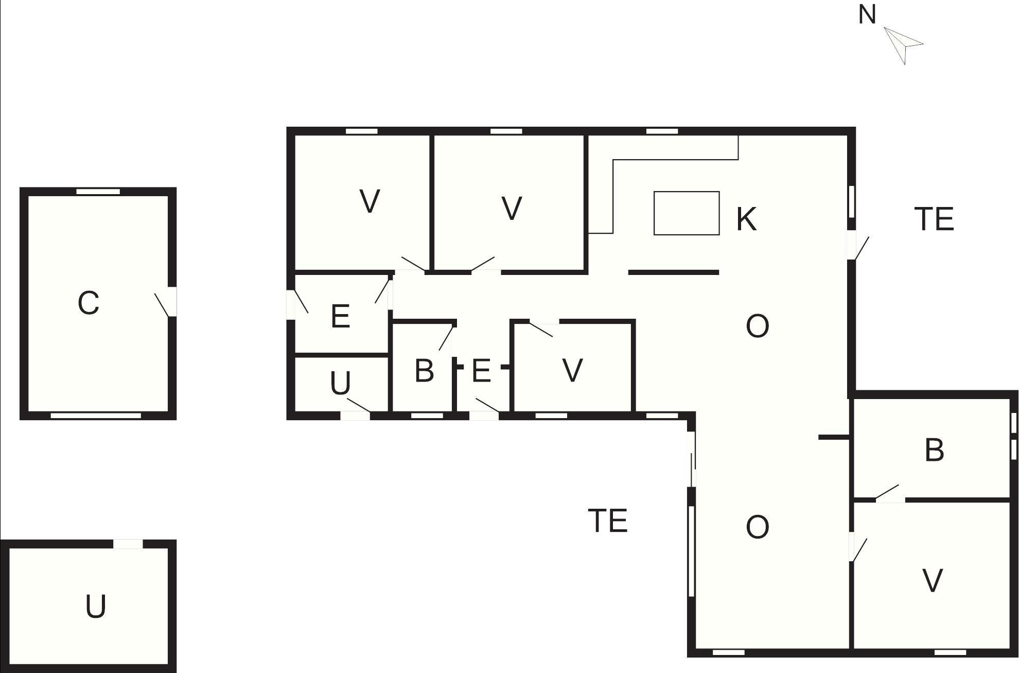 4 Soveværelser: (1DS+2K)+(1DS)+(1DS)+(1DS)