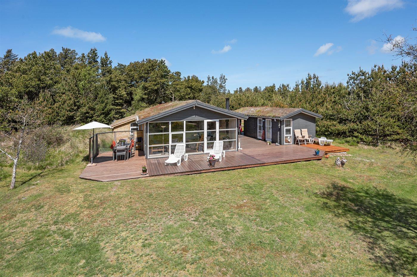 På en pragtfuld, kuperet naturgrund ligger dette velholdte sommerhus på en blind vej i et roligt og særdeles naturskønt skov- og klitområde med god plads mellem husene. Huset har flere terrasser med gode læforhold, samt et tilhørende anneks med 2 sovepladser og eget badeværelse.