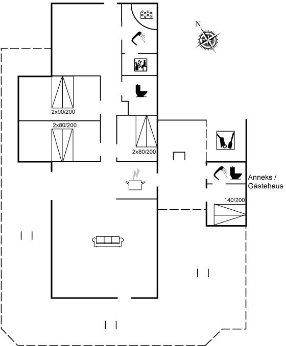 Der er i alt 4 soveværelser. Sovepladserne fordeler sig på: 8 sovepladser i dobbeltsenge. 2 af disse sovepladser befinder sig i et anneks. Derudover er der 1 stk. barneseng.