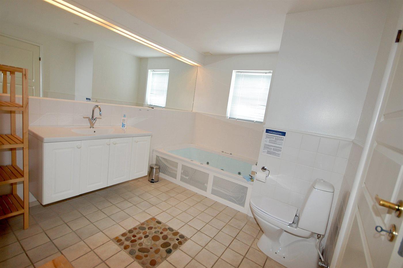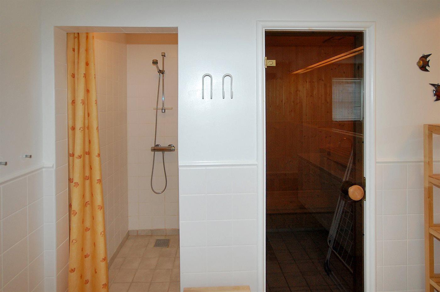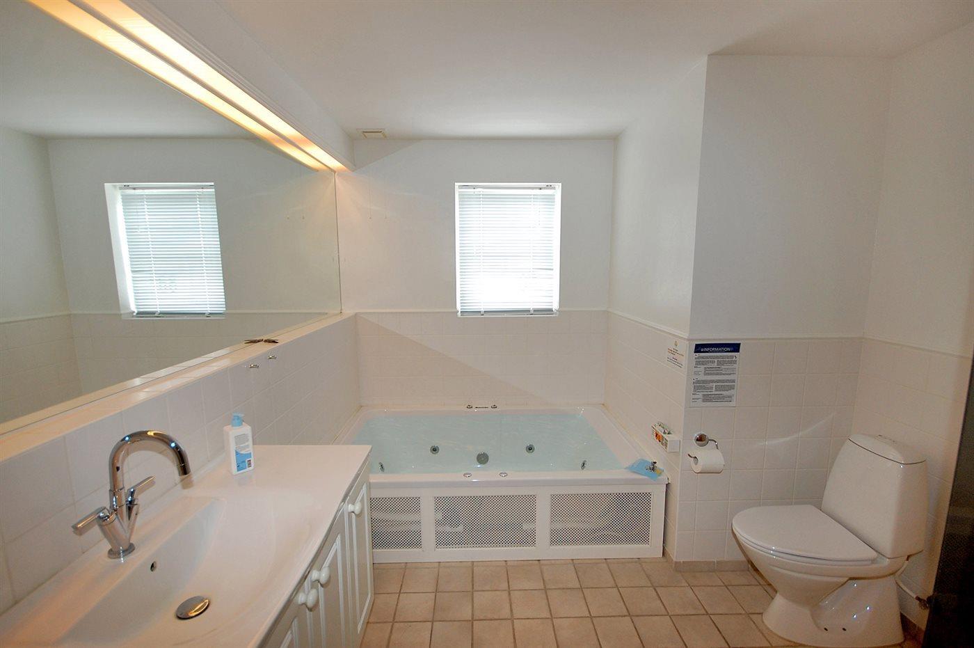 Der er 2 badeværelser med bruseniche og 2 toiletter. Der er gulvvarme på 1 badeværelse. I saunaen er der mulighed for afslapning.