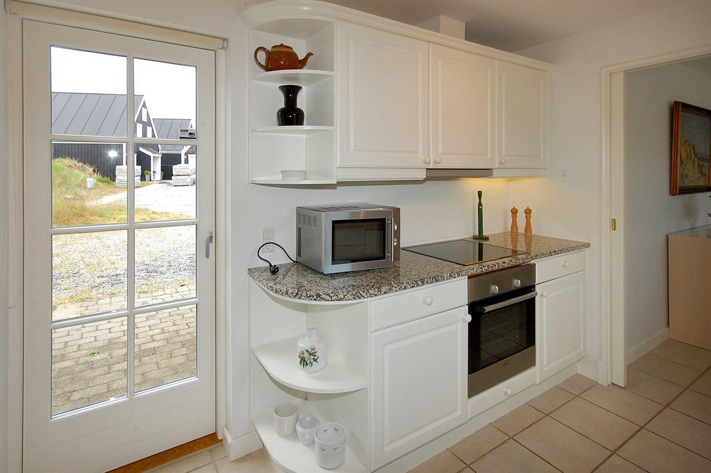 Køkkenet er udstyret med 1 køleskab. Der er 4 keramiske kogeplader, varmluftovn, mikrobølgeovn samt opvaskemaskine.