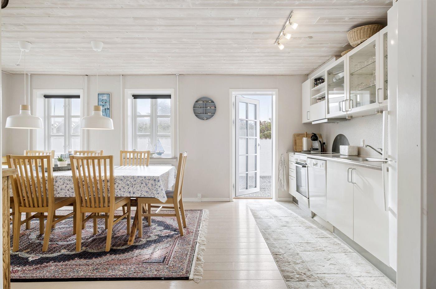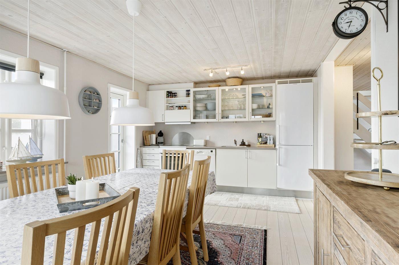 Køkkenet er udstyret med 1 køleskab. Der er 4 keramiske kogeplader, varmluftovn samt opvaskemaskine.